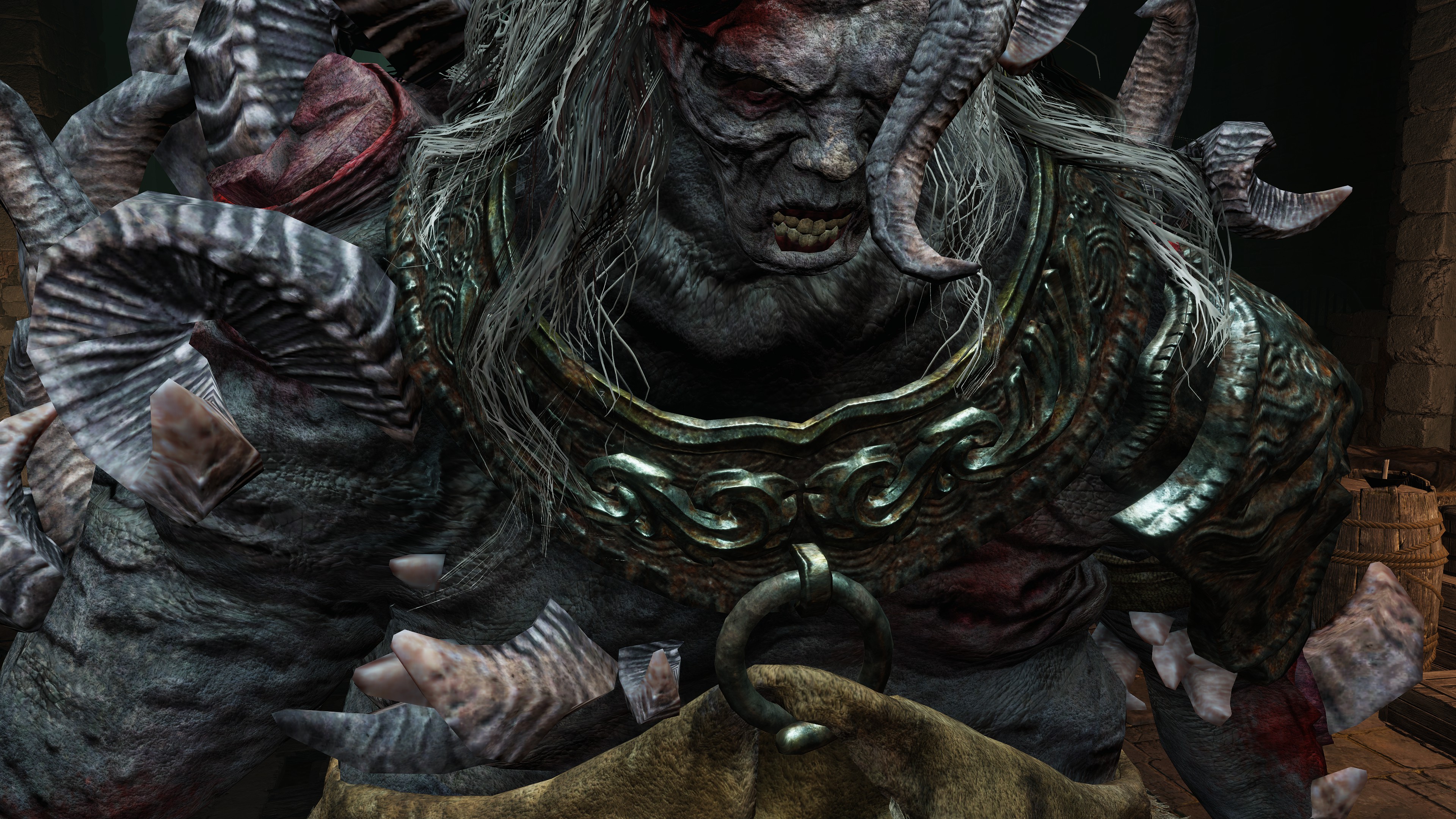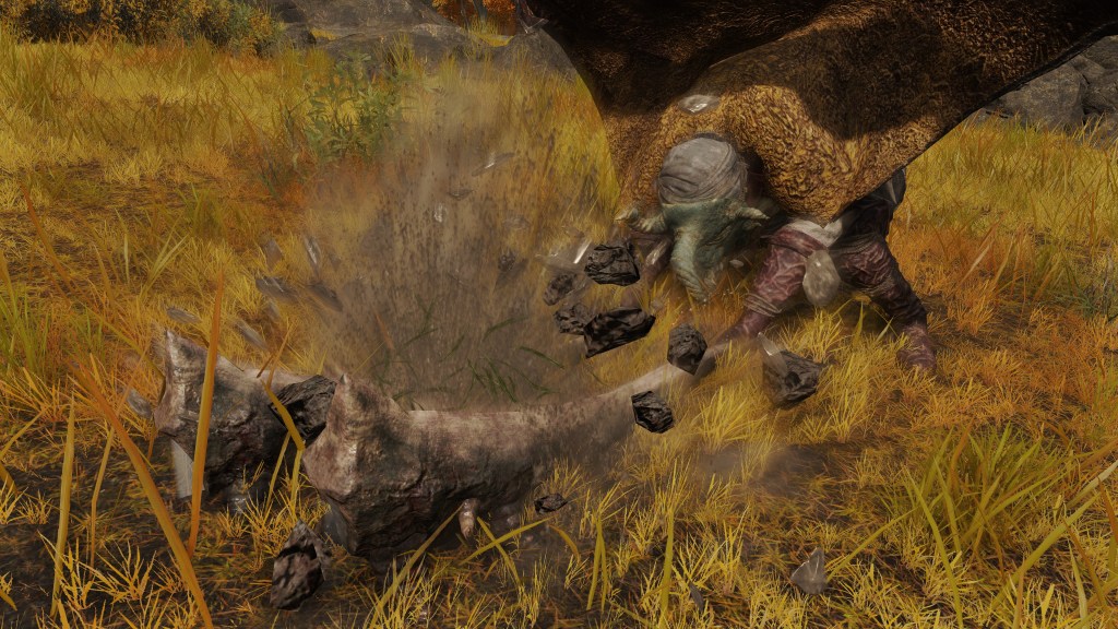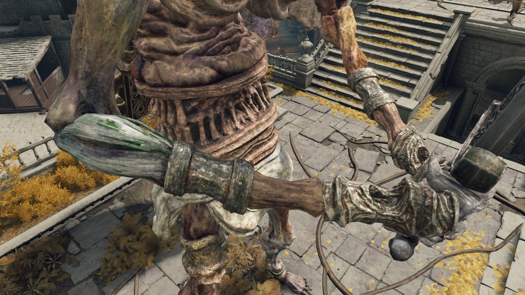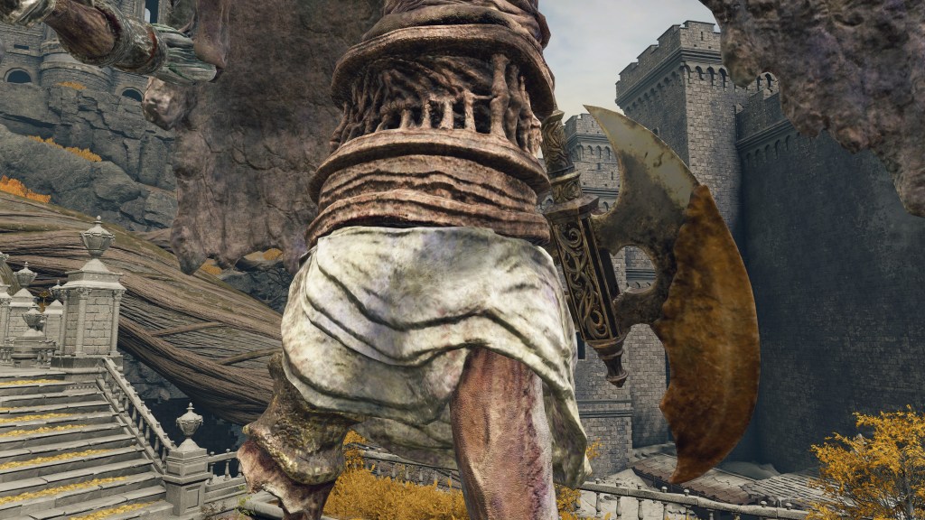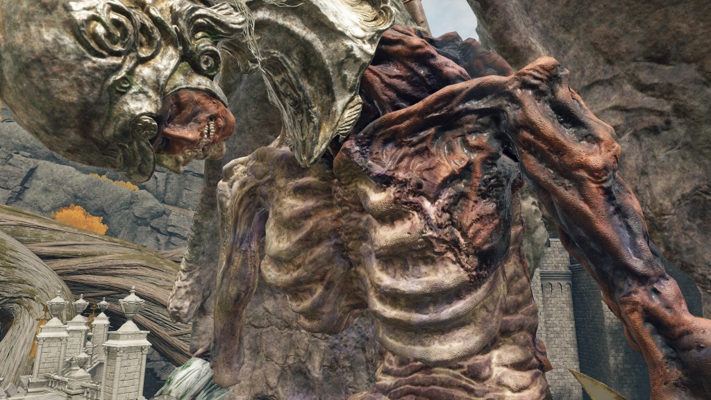 Overall, this notion of “corruption” remained limited to the excesses of Order brought about by the Crucible rather than things strictly agnostic to it. The misbegotten were made slaves because there was no reversing their transformation and no converting their paganism. The trolls, by contrast, were free of their Fell God and happy to be of service to Gold. It is for that reason that they have allowed themselves to degenerate to dumb labor, likely replacing golems in pulling coffin carriages for the Erdtree’s people by this point. Admittedly, this may be more due to Marika’s bias — impaling them with harpoons through their hollow belly certainly seems needlessly cruel when a more conventional yoke would suffice. Without Godfrey there to remember their valor, Marika had gained free reign to exploit the giants as she saw fit. There was no need to educate them so that they could be inducted into Fundamentalism. Like the demi-humans, they just needed to act for the benefit of the system.