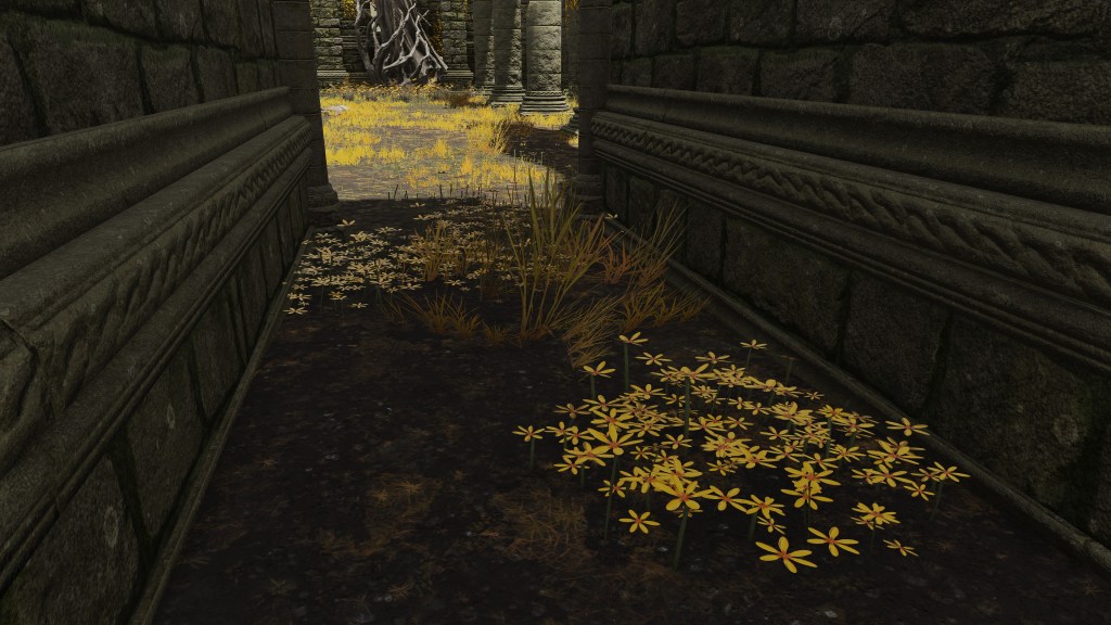This set up finds further support in the graveyard exclusive to the Church of Pilgrimage. The glut of flower-top graves leaves no doubt that the churchyard buries the faithful. Why were so many dead brought to a church out in the boonies, especially when there was a Minor Erdtree down a branch in the road just a short walk away? The answer is because the deceased would want to be buried at the church. Why? Because they were pilgrims. Even if mostly on the highway, it was still a long journey. Disease, accidents, or highwaymen were sure to threaten a pilgrimage. While pilgrims commonly travel together as groups, that only mitigates the risks. And should one of them perish midway, was it not neighborly to help the brother or sister in faith complete the journey at least in body, whether the fellow be family, friend, or stranger? That love and respect for kindred is what likely brought about the Church of Pilgrimage’s extensive cemetery.