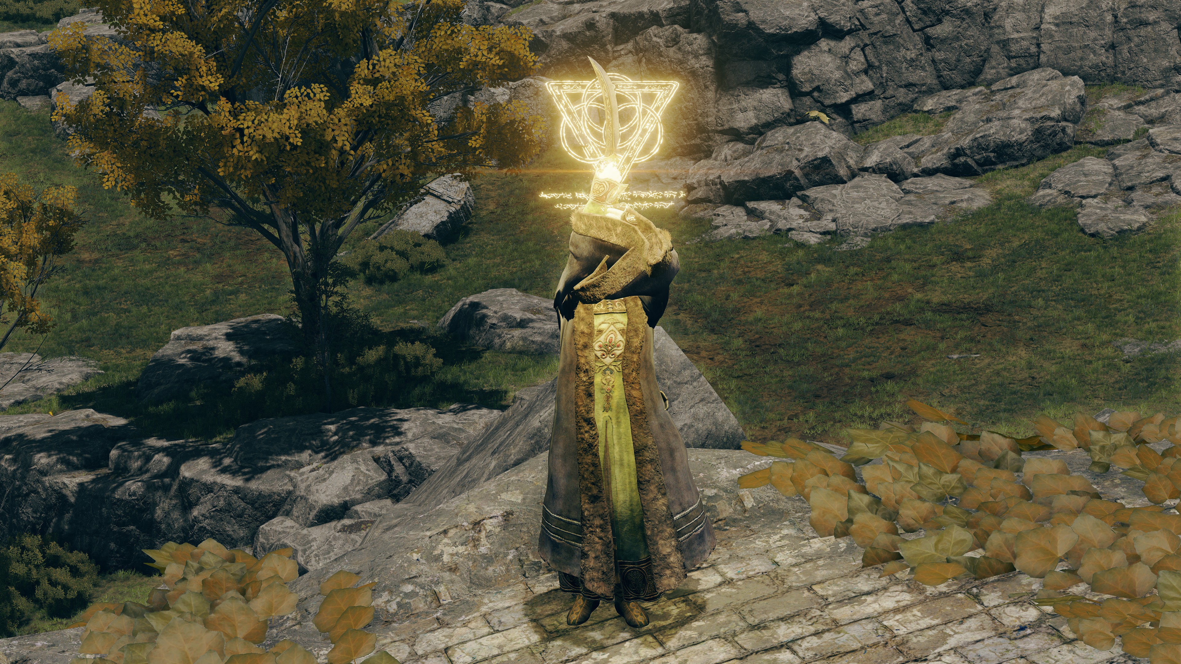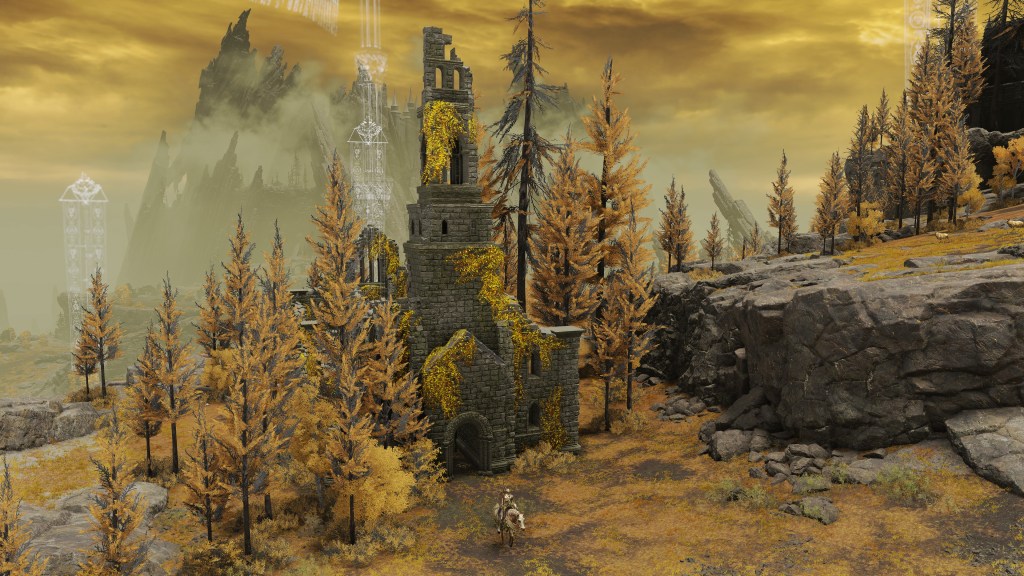 This spiritual act of devotion displays believers’ dedication to the man whose distinguished life led him to the divine revelation of the modern faith. For fundamentalists, the symbolism held great significance. As they tread from his start and end points to becoming Elden Lord, they hoped to follow his same path — not to being king, but to reaching the enlightenment which seemed to come with him ascending the throne. If Marika was their god, Radagon was their patron saint, their prophet, their messiah. Only through him could they fully interpret the divine law. He revealed the proper way, so they need only trace his steps to uncover the truth for themselves. These simple yet profound layers of meaning gave form to the abstract process that budding students of Fundamentalism were surely working through. Add the gravity to standing in the place where Radagon once did, and it is no wonder the pilgrimage came to be. With grasping both the philosophy and the history, the neophytes’ trek helped their minds along as they adapted to this religious revolution.