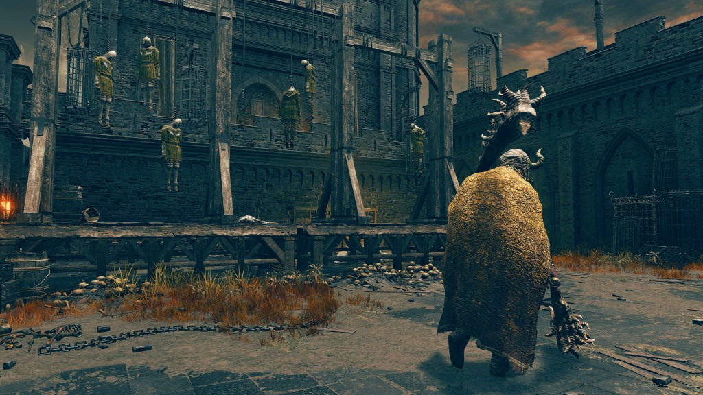 Not helping matters was the behavior at the very top. Queen Marika had always been willing to punish any who defied her orthodoxy harshly, and her other half was no different. Arguably, Radagon’s first act as “king” was to curse a Tarnished who refused to remain in the outgroup, and this wouldn’t be the last time he did so. A commoner corpse in Fort Faroth possesses Radagon’s Soreseal, the golden pupil burdened with an especially strong curse just as the person is implicitly burdened with a particularly long mission. Clearly, this person earned King Radagon’s wrath, subsequently stationed at a remote outpost in the farthest reaches of the Erdtree empire where he was left to die in obscurity. If this was how the king and queen were treating their own subjects, it is no wonder that fundamentalists from nobles on down developed such extremes on the rigid Golden Order they espoused. Staying within the law almost demands blind obedience to popular opinion, which is so often slave to baser impulses. Bloodsport? Icky. That was the simple framework for Radagon’s followers to operate within.