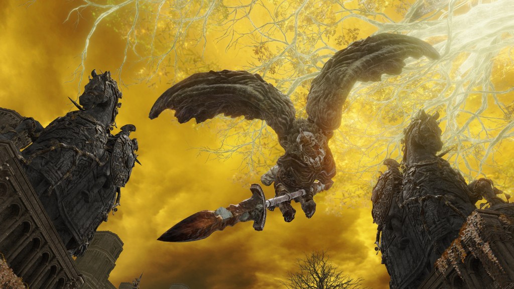 Why Radagon and Marika would be experimenting with Godfrey’s long-dead and buried men is straightforward enough. The red and gold colors to the fused corpses draw obvious parallel to the king and queen’s own shared existence. Moreover, the stone additions made the bodies resemble angels — entities who act as a midpoint between god and man. The gargoyle form thus may represent humans with divinity, like Marika. The symbolism would be appropriate, since the gargoyles’ design take obvious inspiration from their counterparts in Dark Souls III who bore equally angelic allusions. But more importantly, it turns each gargoyle into a faux Marika. Add to that, there is the inclusion of the shadow of gold in some of the experiments. Clearly, Marika saw a connection between the Rune of Death and herself, which produced Radagon. The goal was no doubt to reverse-engineer a proxy of themselves which they could then study.
