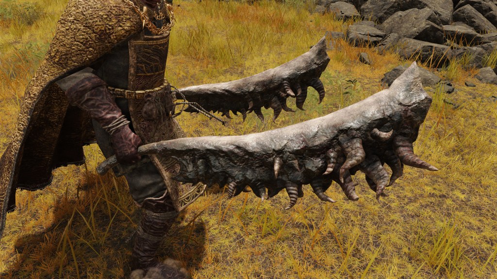 Putting such questions aside, Radagon raised them as his own in the royal capital. Miquella in particular took to fundamentalism, father and son exchanging arts as they built upon one another’s ideas — the Elden Lord’s finalized Ring of Light art even included in the Golden Order Principia. In fact, Miquella appears to have idolized his father, as evidenced by him taking part in the pilgrimage from Bellum Church. Despite their rarity, we can acquire the Bewitching Branches associated with Miquella within vicinity of the churches at both ends of the pilgrim route. The Bellum collection are sold by a nomadic merchant, while the Weeping Peninsula’s assortment hide on a corpse as his camp is being preyed upon by bats. Their inclusion signals Miquella’s past presence in both areas, well outside the safety and comfort of Leyndell. Clearly, learning more about his heroic father’s rise to Lordship was important for the demigod once upon a time. We don’t see the same for Malenia, but that may be due to her chronic condition keeping her from leaving palace life until the events of the Shattering.