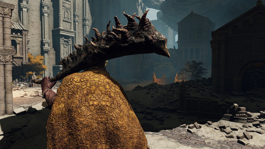 Perhaps because they had trouble adjusting to the times, the oldest Crucible Knights appear to have retreated from public life. A Siluria knight joins Ordovis as gravekeepers in the Auriza Hero’s Grave, ensuring the clan his Lord Godfrey led during their glory days remain honored. Meanwhile, we can encounter Siluria in the Deeproot Depths, no doubt attending to the nameless Eternal City because it brought her that much closer to the tree which she cherished. Devonia departed the Lands Between entirely. Perhaps the founding king’s longest-serving knight claimed intent to help the crusade in order to gain access, but once inside the Realm of Shadow, the old hero left everyone behind to pursue the origins of the Crucible — this solitary journey ultimately leading to Rauh where we may cross paths. The Erdtree was no longer the one which Devonia or the others had sworn to protect.