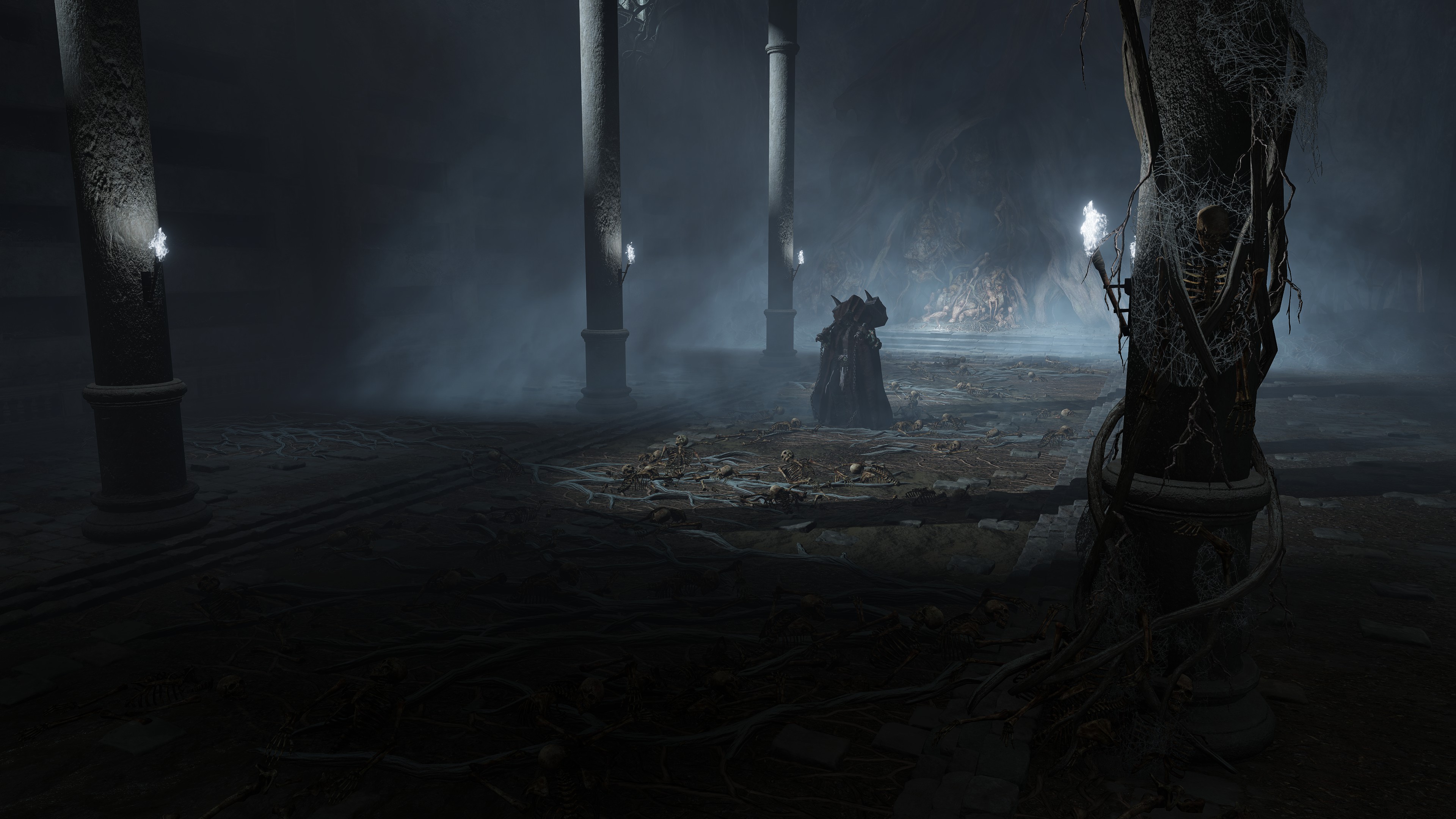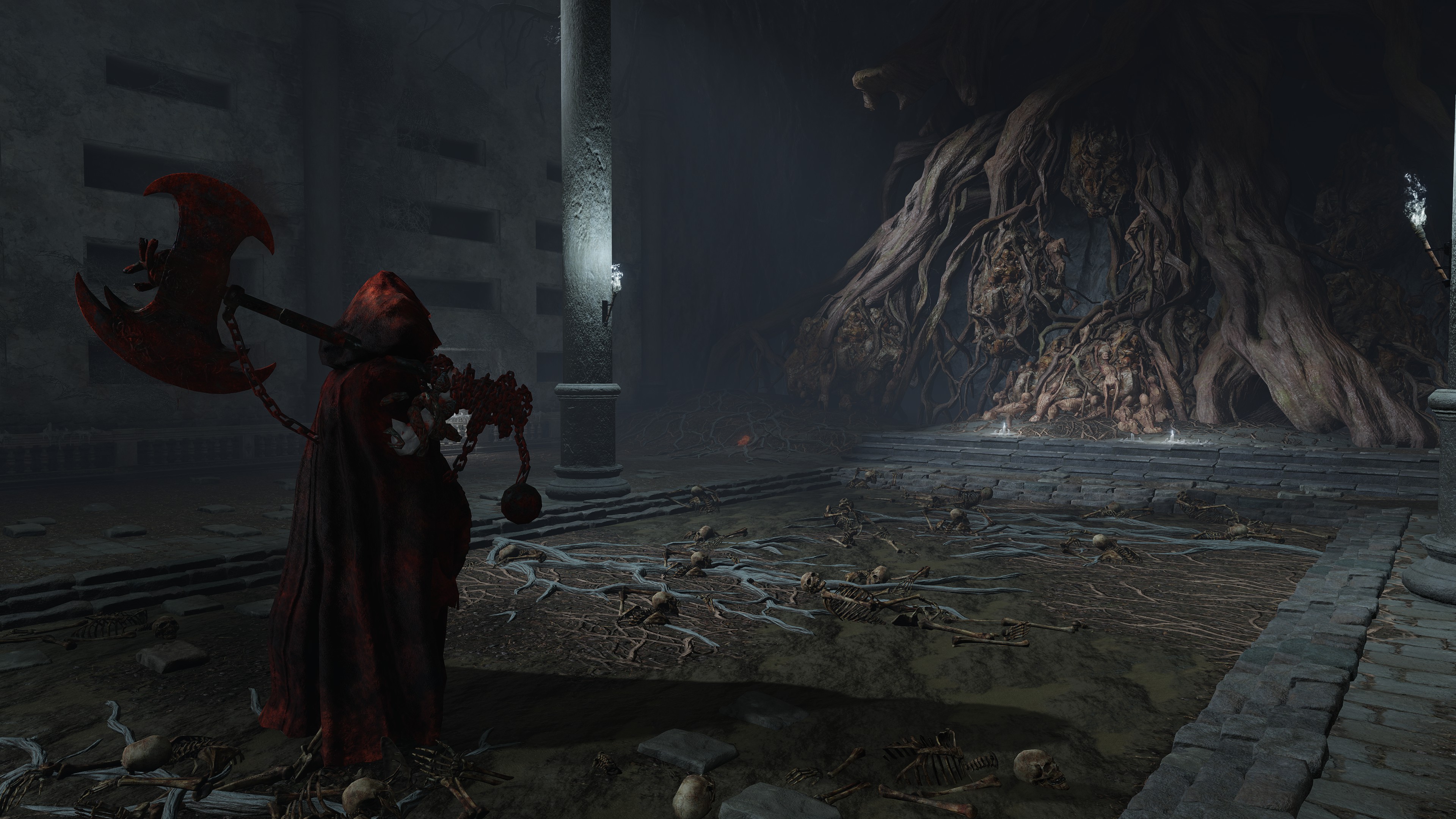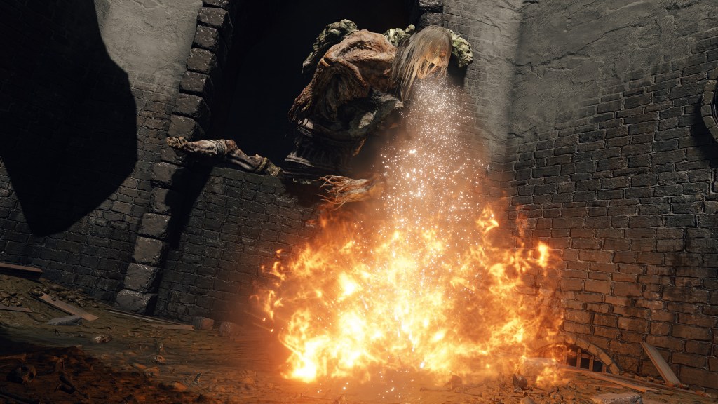 Overall, the gargoyles look like the two halves’ blatant attempt at new insight into their peculiar situation, the resulting failures still serving to augment the military or Maliketh. Once again, Marika and Radagon were collaborating after reuniting in marriage, only to see themselves cleaning up after their mess with a new catacomb. Perhaps they felt it disgraceful to return mere pieces of the heroes to the existing grave complex, so reburied the leftover flesh in a separate facility nearby. It would explain some of the living jars’ daredevil willingness to throw themselves at the enemy, that fiery spirit exploding the flesh upon their valiant deaths. Such behavior is otherwise only exhibited by jars in the Giants’ Mountaintop Catacombs — victims of a war which that heroic generation had also fought and died in — and Volcano Manor — which can be blamed on the lava flooding the village graveyard. But whatever the case, the couple continued to show little regard for Godfrey and his tribe’s contributions to their empire. If something proved potentially useful, it would be put to use, no matter the past glory or familial ties.