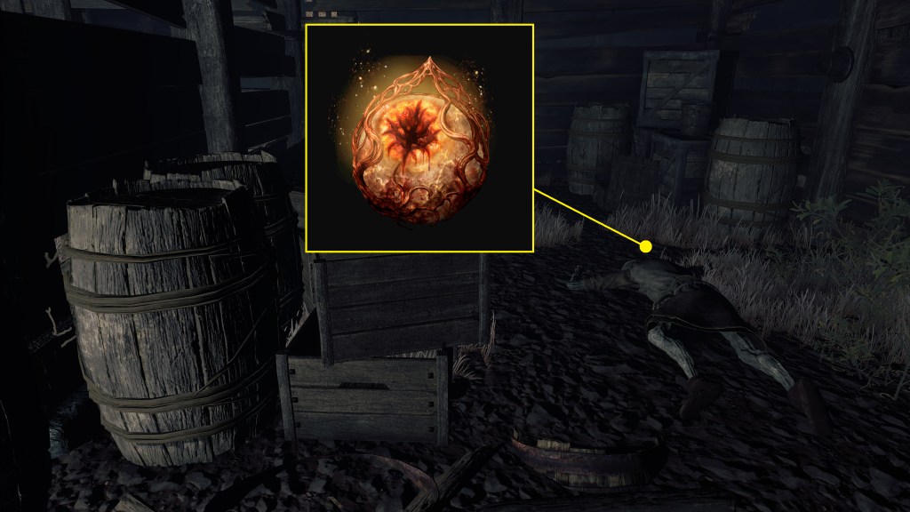 We can come across a lone Omen kneeling before a tiny grave among the heaps of dead bodies in the Shunning-Grounds. Looting the grave awards us with a few golden centipedes, implying that the deceased was a fundamentalist concerned with corruption. Evidently, that concern didn’t preempt establishing a connection with that Omen who now clearly mourns the person’s passing. This confirms that there are strict adherents of Fundamentalism who nevertheless make friendly relations with Omen in the wild. Who would these fundamentalists be except the priests who are clearly aware of the royalty’s hidden progeny? What better way to hinder an Omenkiller’s slaughter than to give his victims the means to defend themselves? And since arming a population who might resent you has its risks, they used their magic or connections to prepare a fail-safe — the perfumer giveth, and the perfumer taketh away. No Omen can build up an arsenal, and this leverage can even explain the outcasts wearing jougs despite growing up in isolation, not captivity; if they want the keep the arms flowing, they best behave.