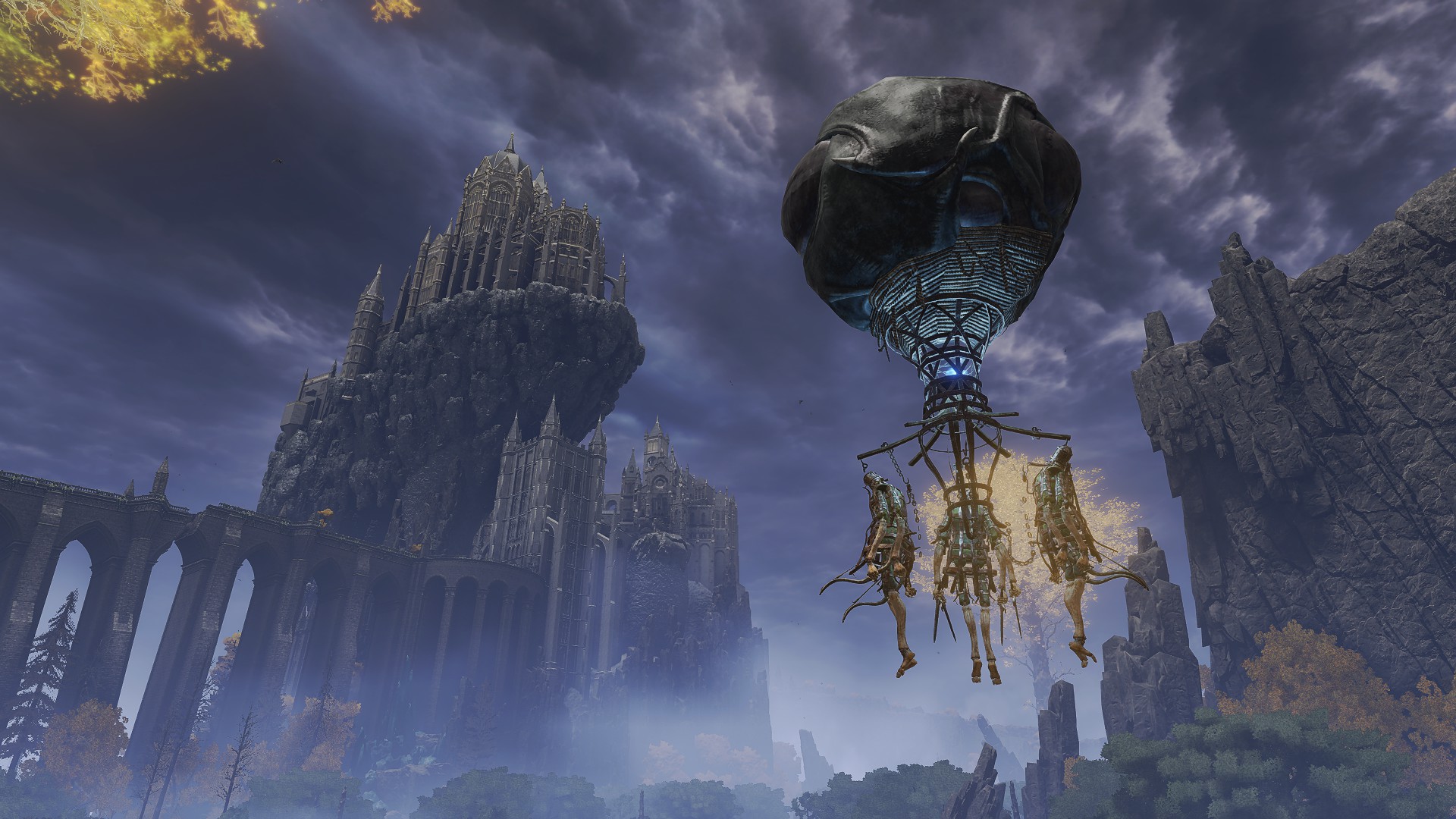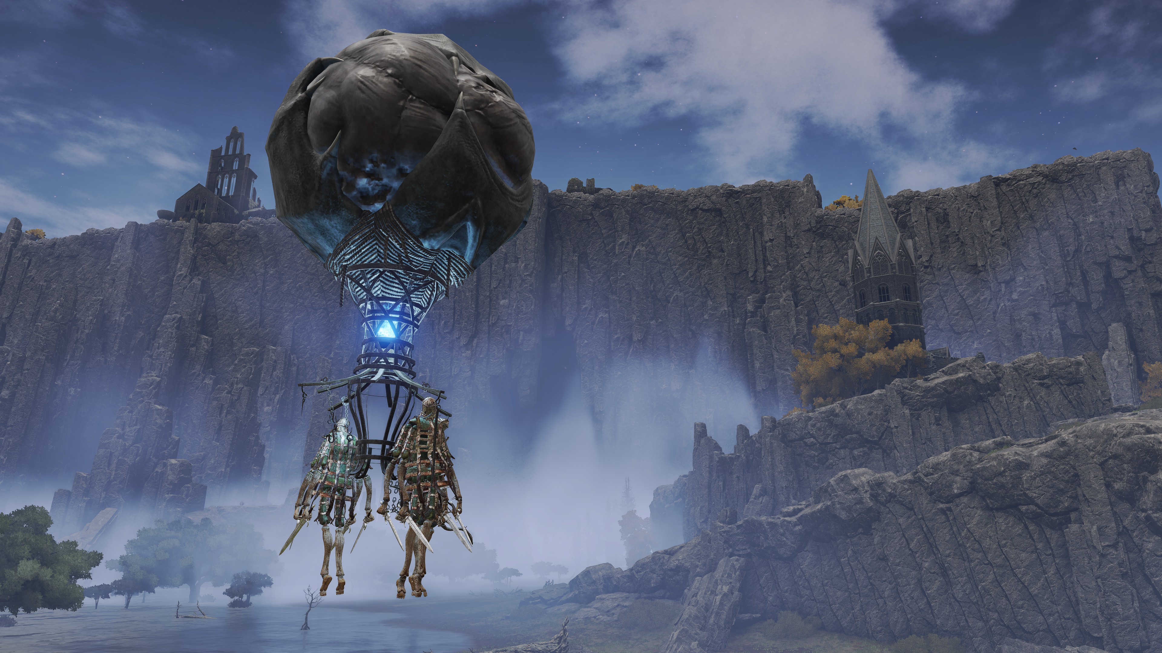Naturally, the feebler scholars hold a different stance. These sorcerers have instead chosen to craft an army of marionettes to help secure the academy grounds as well as the various fronts; in cases of the latter, deployed from the safety of their schoolrooms via hot-air balloon. To name a few examples, we find a line of these deployment platforms set up south of Site K to stand between Raya Lucaria and Caria Manor. One more balloon hovers around the southern bridge’s approach outside Gate Town, clearly more concerned with foreign invasion than the internal threat — even as it rapidly encroaches. The inflatables are seemingly powered by the Altus citizens killed in the rebellion, their golden rune awarded with each platform destroyed. This leaves little doubt that the balloons belong to the academy, with possible exception of the one hovering in the Converted Tower’s vicinity. Granted, the marionettes patrolling the premises may not be there to protect the tower’s owner.