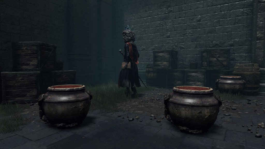 Without a doubt, anyone who wasn’t fully committed to debasing the Carians would be purged from the ranks, forcing heterodox views behind closed doors. This was also true for the other end of the extreme. Recall the shadowy classroom where certain academics are trying to recreate a graven school. Where was the flesh collected into living jars sourced from, and when? For the latter, it is worth noting how the academy’s jars are unique — they are missing handles, lack the intricate design, and show more cracks. This makes them appear more “homemade” than the standard jar supplied across the lands, which is fitting for an academy sealing itself off from the outside. Moreover, we see the empty pots are filled outside in the gardens, where the rebels and Altus citizens clashed. In short, these graven school researchers are positively taking full advantage of the junior sorcerers’ deaths. They don’t want to flaunt what they are using it for, naturally. But even if peers would find their research horrific, these rebels still feel empowered to carry out extra brutality, now free of Caria’s watch.