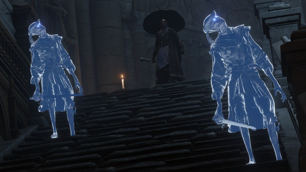 The extra caution should come as no surprise. The sword monument at Caria Manor describes the Cuckoos as contemptible, and the description to the Raya Lucaria Soldier Ashes makes it clear that these also-rans are willing to commit atrocities at will. Their selfishness extends to each other, even. Compared to most other soldier ashes for different factions, the Raya Lucaria type are unique. Instead of summoning the spirits of just two standard soldiers, the ash summons one soldier with two lesser foot soldiers for backup. The reason given is that the two infantry serve as “disposable pawns” to the trooper outranking them. Rather than fighting together as a cohesive unit for a shared cause, it is every soldier for himself, using the units under his command as fodder to save his own skin whenever possible. If these sellswords couldn’t be bothered to take care of their own, then there was no way for an employer to expect unqualified loyalty. There was no low they wouldn’t steep to for the right price, or opportunity. And so, the school kept the Cuckoos at an arm’s length.