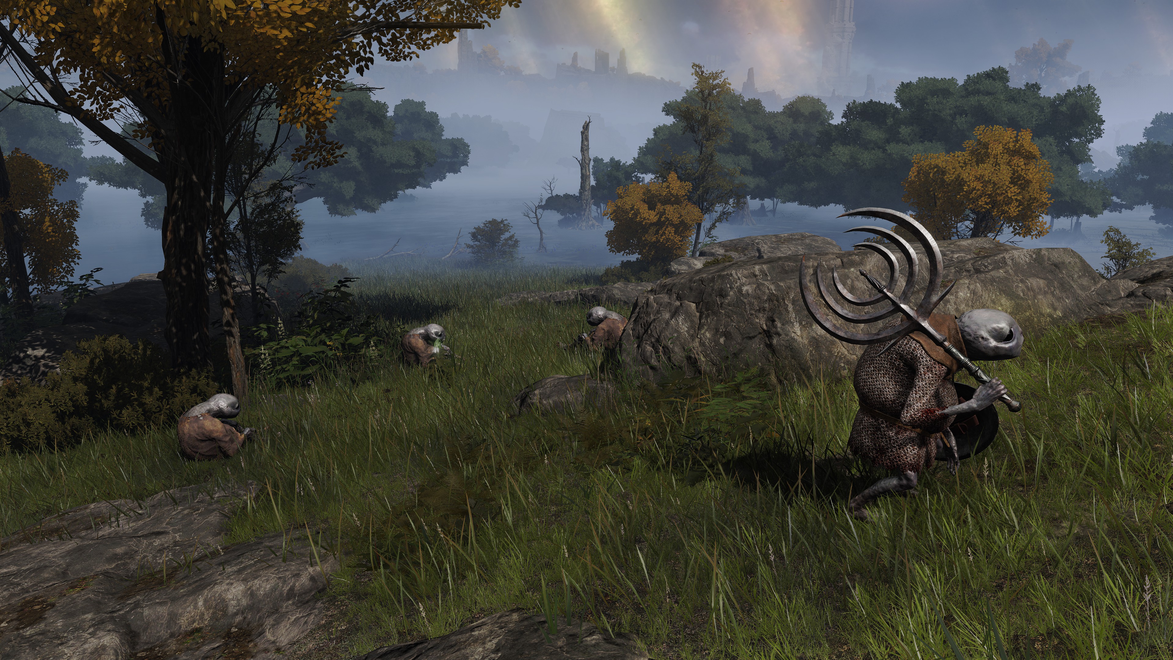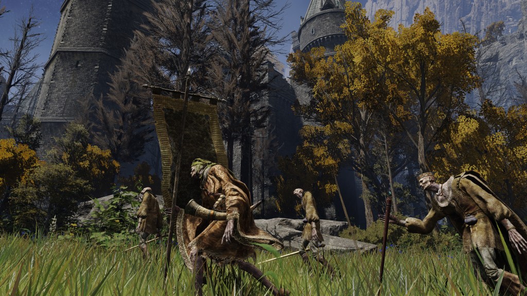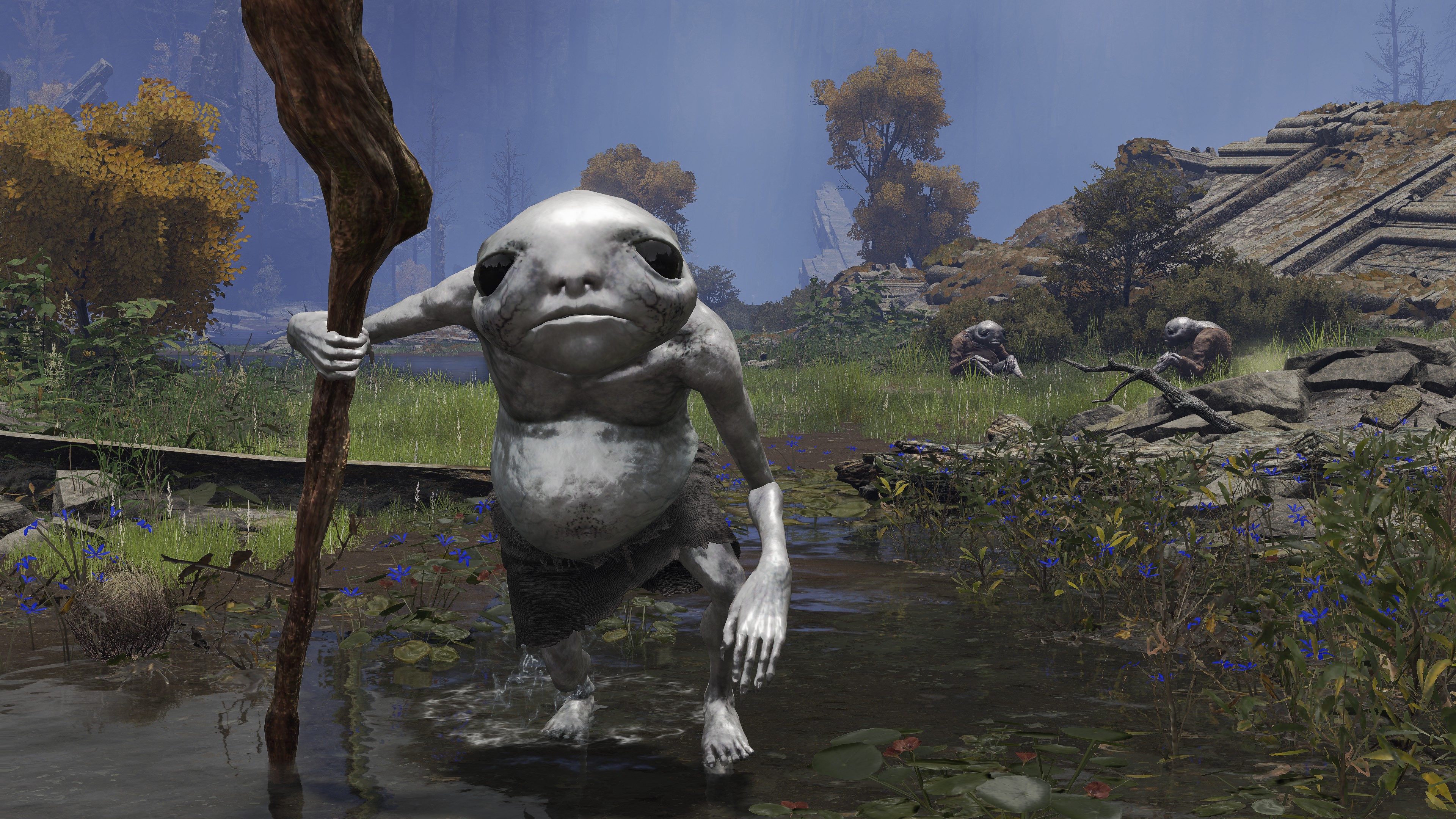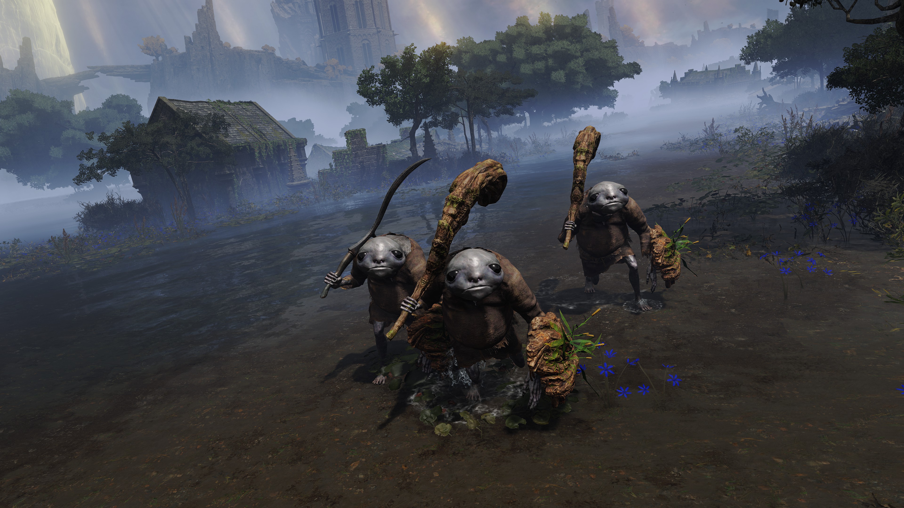 Saving the Cuckoos is the fact that the Albinaurics don’t appear to be in any rush to finish them off. Portions of the silver militia have spread to far corners of the new Liurnia Lake. One small unit waits on a random crystal basin to form Dexterity-Knot Crystal Tears, fitting for this cartwheeling generation. Another appears to have taken interest in one of the large Mirandas. More hold a funeral for the Albinauric woman seemingly murdered upon her return to the Temple Quarter from the Mountaintops. Even more have marched all the way north toward the river valley, killing campers and similar travelers from islands of Farum Azula’s fallen ruins. Even as some of this second generation’s weapons degrade over time, the frog-heads are happy to use overgrown tree branches and bramble of the lake as replacements for their spears and shields. The silver-men are clearly enjoying the freedom to roam the earth under the golden sun without fear of discrimination. Because of that, the civil war is technically at a stalemate. But any sober observer can see the writing on the wall.
