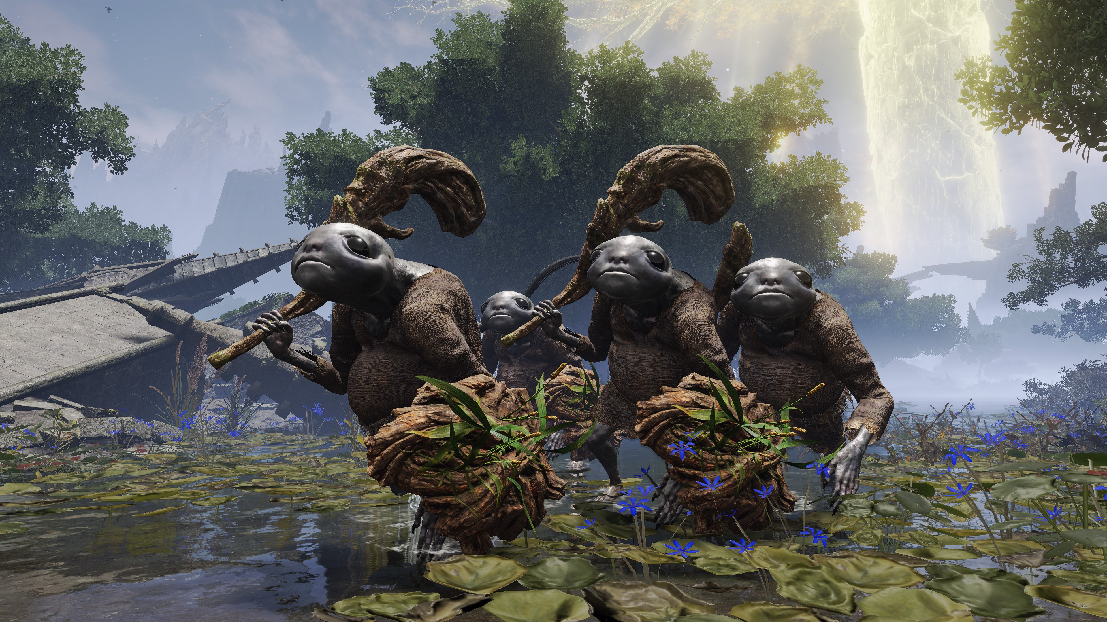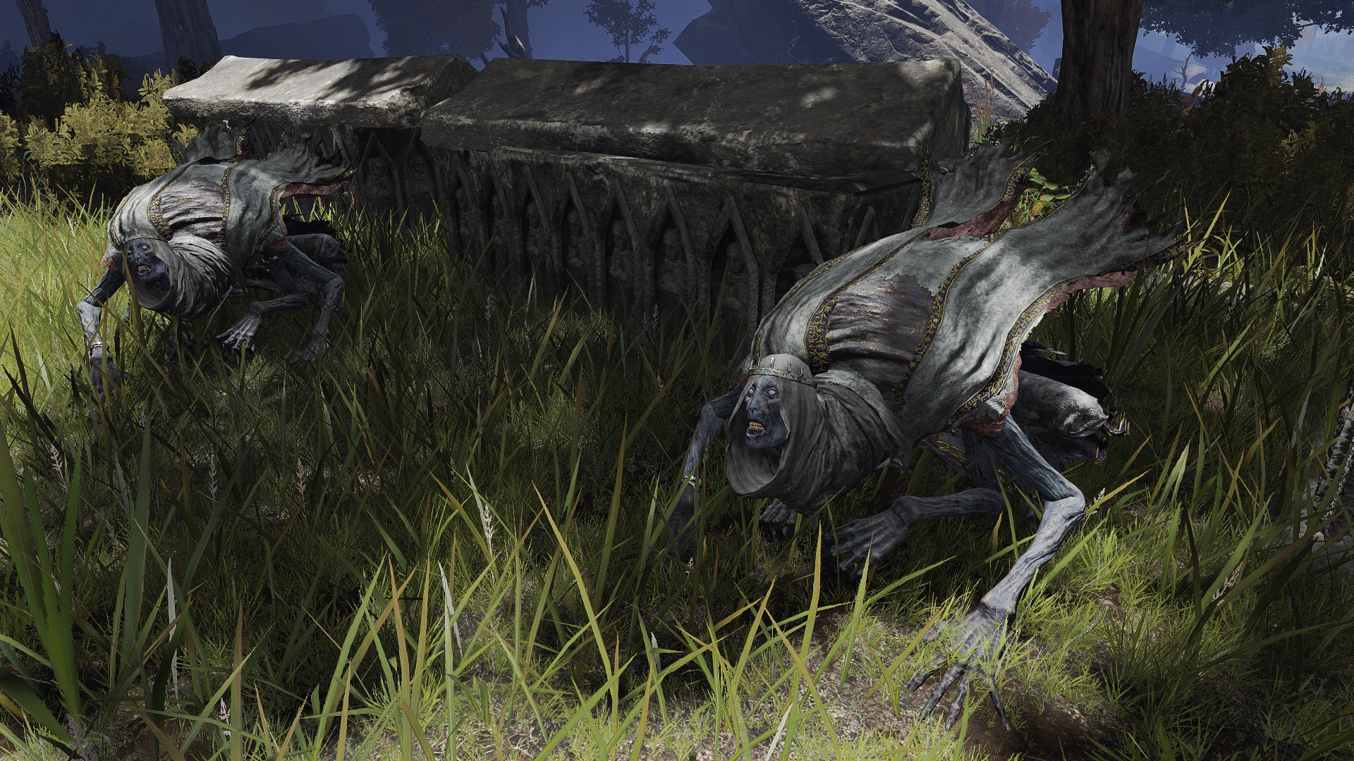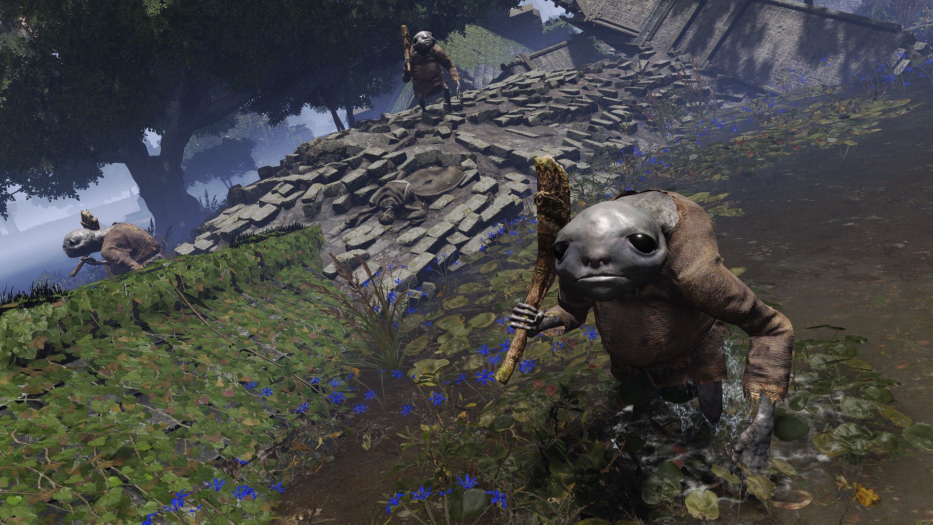 Saving the Cuckoos is the fact that the Albinaurics don’t appear to be in any rush to finish them off. Portions of the silver militia have spread to far corners of the new Liurnia Lake. One small unit waits on a random crystal basin to form Dexterity-Knot Crystal Tears, fitting for this cartwheeling generation. Another appears to have taken interest in one of the large Mirandas. More hold a funeral for the Albinauric woman seemingly murdered upon her return to the Temple Quarter from the Mountaintops. Even more have marched all the way north toward the river valley, killing campers and similar travelers from islands of Farum Azula’s fallen ruins. Even as some of this second generation’s weapons degrade over time, the frog-heads are happy to use overgrown tree branches and bramble of the lake as replacements for their spears and shields. The silver-men are clearly enjoying the freedom to roam the earth under the golden sun without fear of discrimination. Because of that, the civil war is technically at a stalemate. But any sober observer can see the writing on the wall.