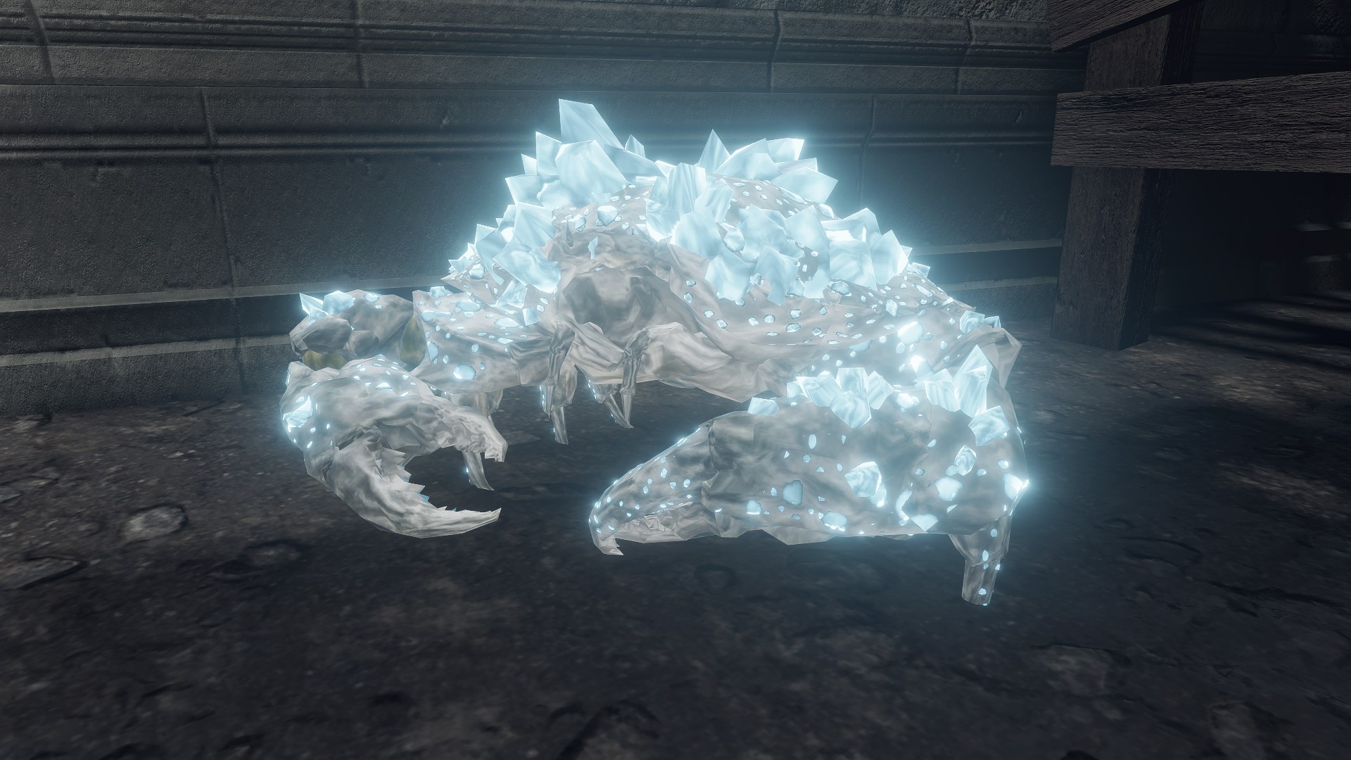 To the witch’s credit, her arrival revitalized Caria to some extent. The Glintstone Craftsman’s Cookbooks are notable for the description claiming that they “served” the academy, thereby not necessarily still in service to it. Some may have simply died whilst on the campaign, explaining why we find so many recipes left stored at the Cuckoos’ various encampments. Others might have been killed by their ostensible allies, such as the craftsman formulating freezing grease in Laskyar. But the rest might have defected to Caria. For sure, we collect two of the artisans’ cookbooks from the castle manor. A corpse holds onto the recipe for freezing pots — emblazoned the Carian crest and expressly derived from Ranni’s Darkmoon in their text — whereas Pidia sells the secrets to coldbone ammunition. It may well be that a few, dissatisfied with Raya Lucaria’s prospects, joined up with the royal house after the witch reentered the scene, giving renewed inspiration to investigate the power of cold.