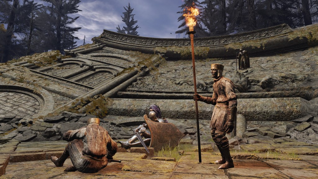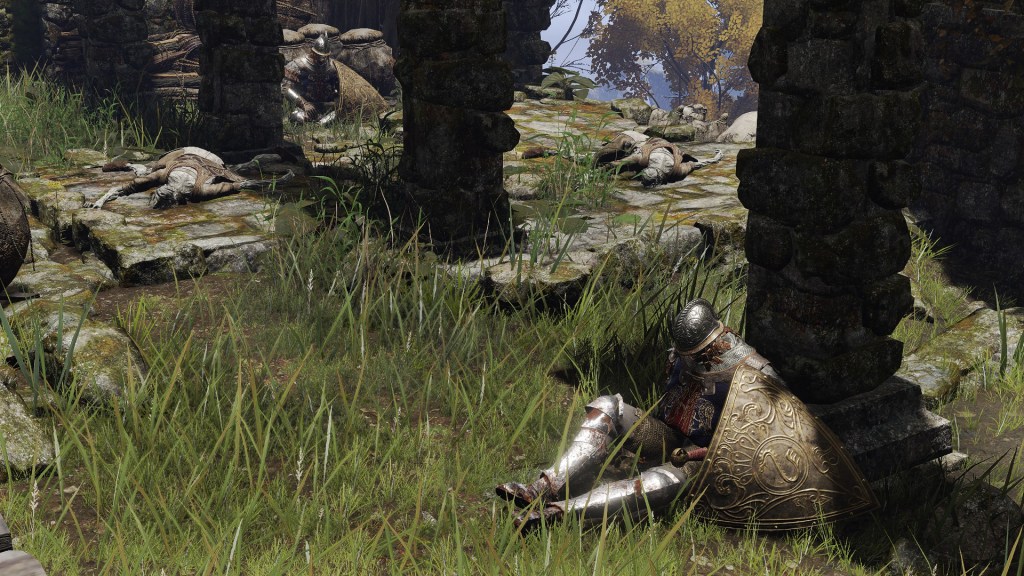 This scenario explains why we encounter an enchanted knight’s spirit well behind the walls of the castle manor. More than likely, the knight was mortally wounded in attempting to stop Adula. Forced to retreat, he sat down under the chapel, preparing for death, when Ranni showed up at last, the cure for everyone’s despair. Before the Carian-devourer moved onto the manor and finished off the last of the household, the witch arrived to tame the wyvern with her cold magic. By that point, only the Three Sisters towers themselves remained intact, everything else since left to fall apart. The losses in life were just as devastating — the only survivors were some Erdtree and moon nobles, who continue to serve their savior, as well as the vassals and servants remaining in the castle. But Caria now had a leader, who was already knighting new warriors. The knight who endured for so long finally embraced death believing that she would restore the royal family as the next Full Moon Queen.