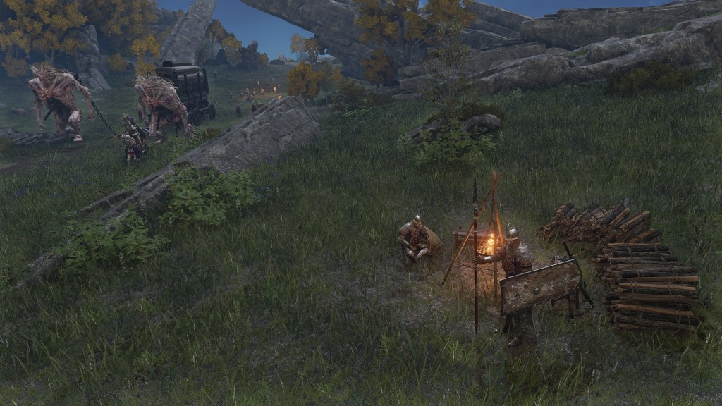 The Cuckoos of Bellum Highway don’t appear to be serving the academy. Despite the symbols still displayed, their robust defenses are set up to block traffic to the Grand Lift of Dectus, not Raya Lucaria. Moreover, they use the same trebuchets that Leyndell employs to protect its outer walls. This portion of the sorcerers’ army appears to have defected to Morgott, the Grace King using them to stop the other factions and Tarnished from invading his realm. The situation at the Frenzied Flame Village (Site F) reinforces the notion. There, behind Bellum’s defensive position, the occupying Cuckoos have allowed the fiery disease to spread to even themselves. Why not “purify” the village like at Site P? Because their master is Morgott, who hasn’t given them the same permission slip as the academy — and certainly wouldn’t look kindly on massacring faithful innocents. Opportunistic as ever, this detachment of the academy’s army defected when presented the offer. There is no glory in remaining with Raya Lucaria, and they have learned enough secrets of sorcery. Besides, work for the king of Leyndell is a reward of its own.