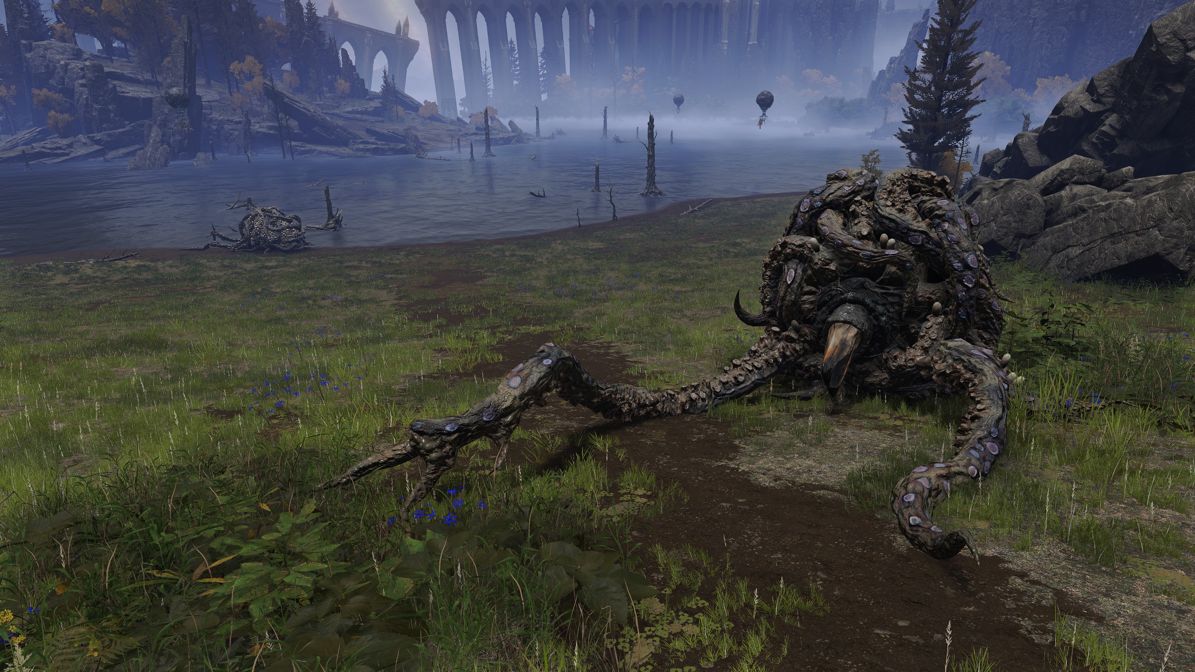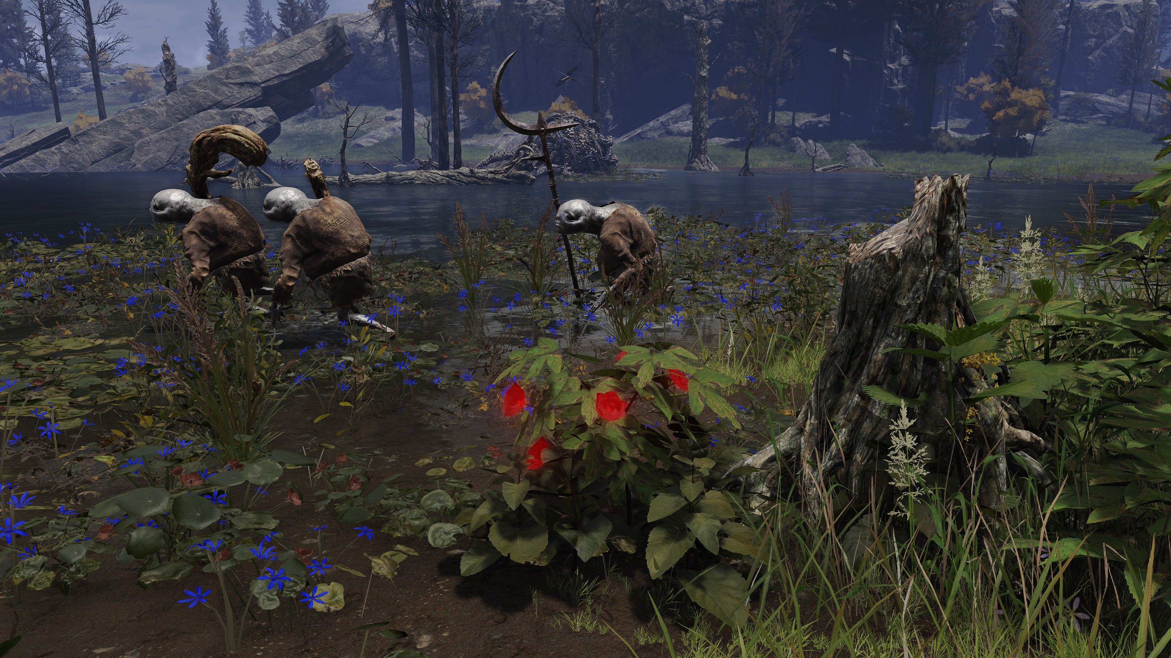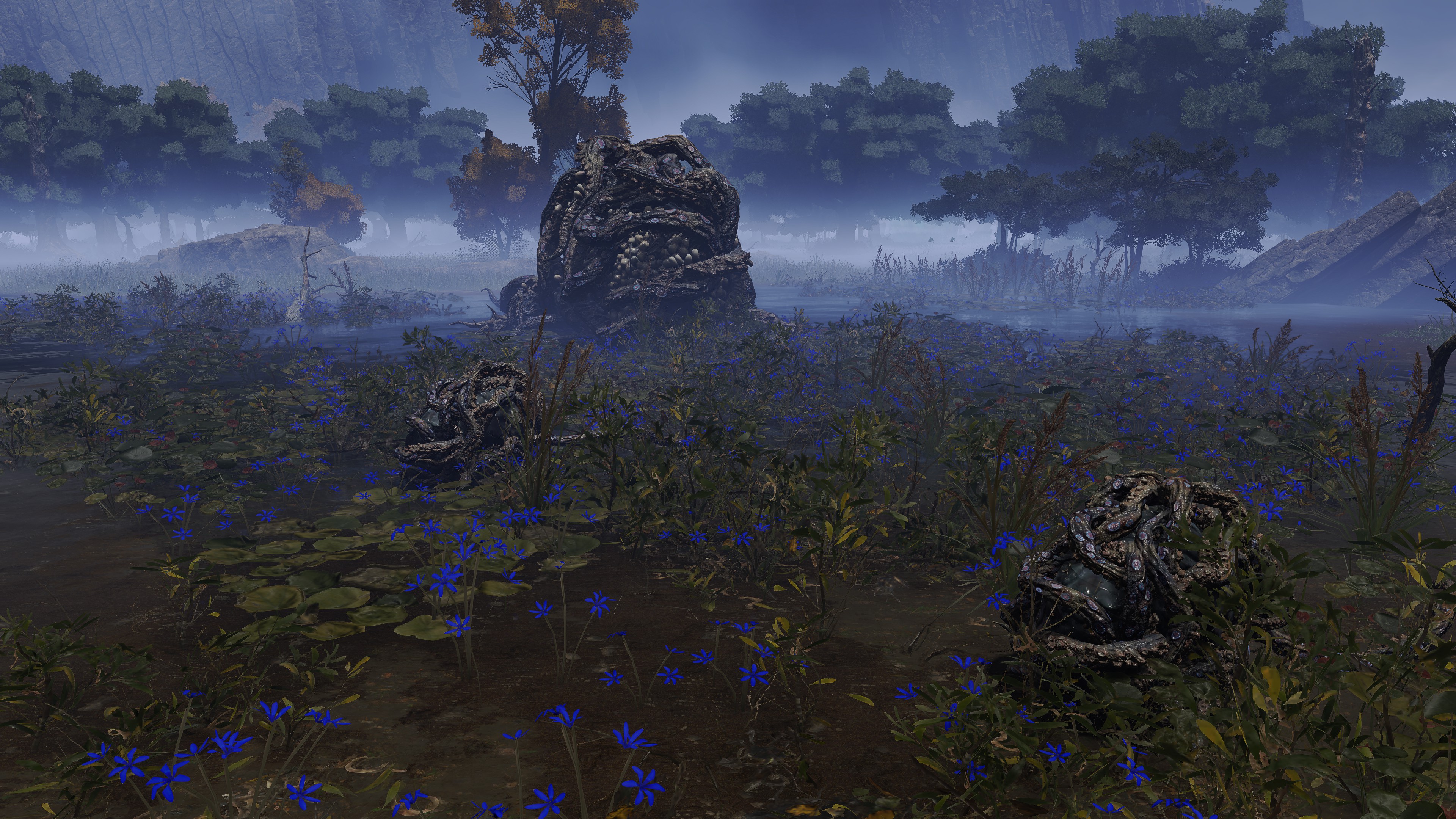 But while incidents like this doesn’t help Raya Lucaria with the war effort, the underlying problem is the Cuckoos’ incompetence. Even allowing the flooding has worked more to the enemy’s advantage. A collection of Scenic Isles resulting from the lake, between the Albinauric Village and Laskyar, are a natural draw for anyone hoping to a establish a foothold in the area. But becoming kings of the hills brought only more death. In one case, it is to the Albinaurics. In most others, it is to the resident demi-human tribe competing for space or land octopuses looking for fresh blood. There is a reason that every one of these islands is lined with bloodroses. The one exception is, suitably, the isles where a land octopus roves already with a brood. Clearly, if the Cuckoos had plans to launch another assault on the silver village, this time from the east, it would face another layer of resistance. What strategy do they have which isn’t hampered by their gross mismanagement of the war?