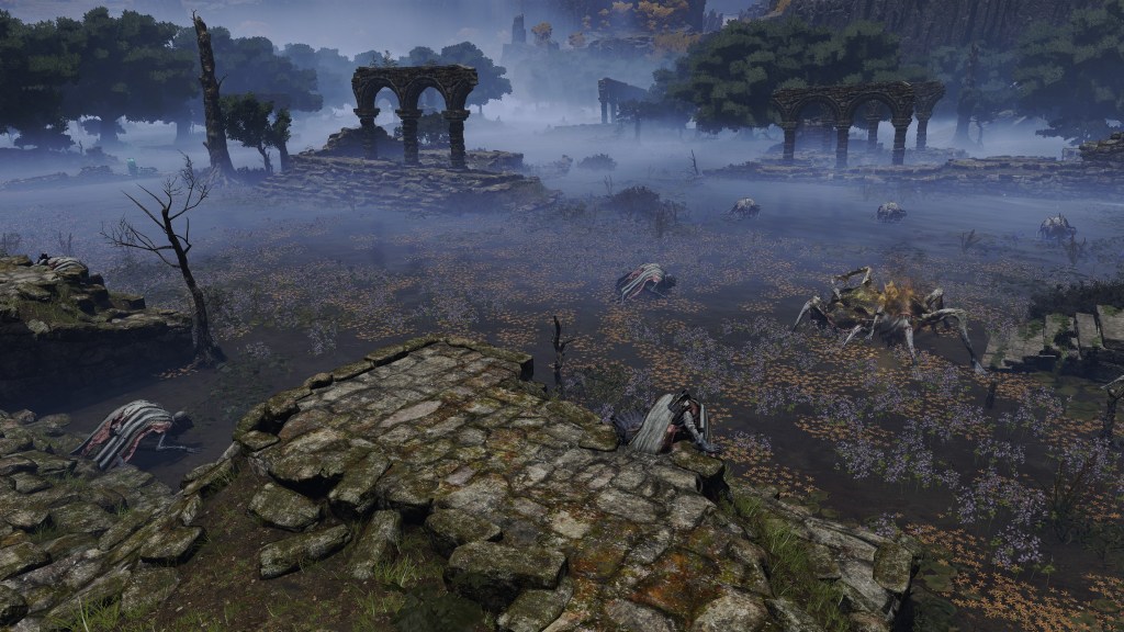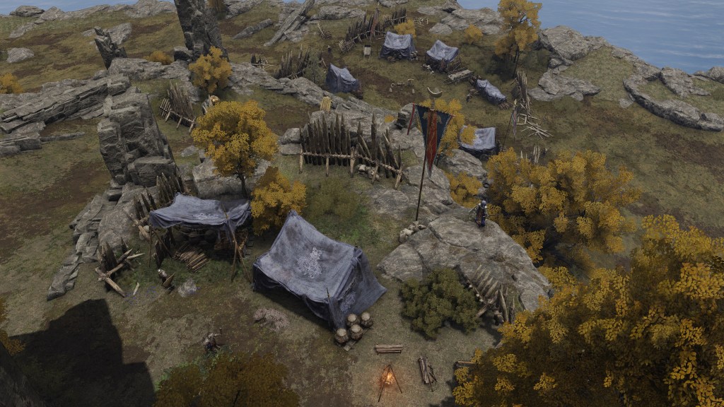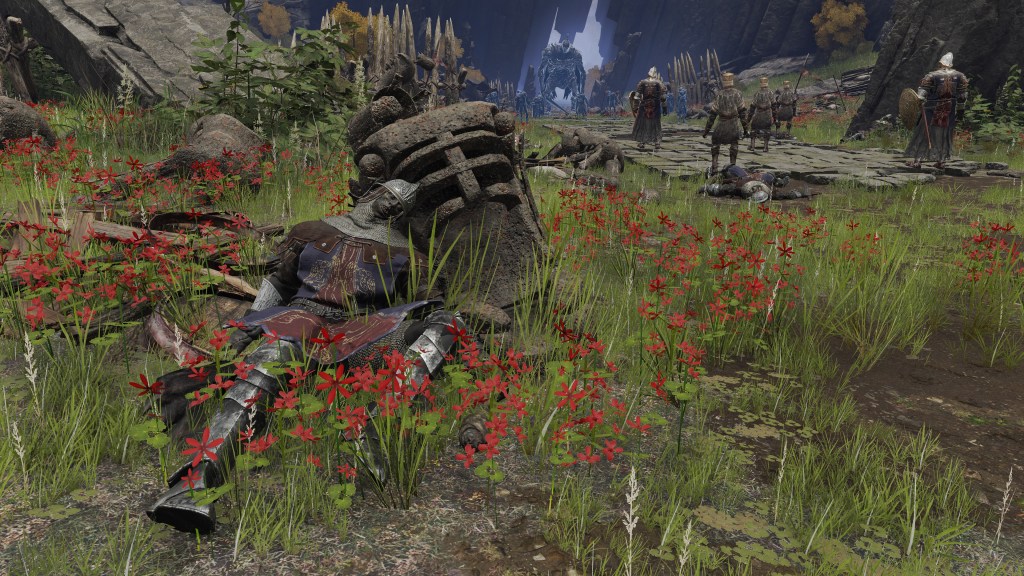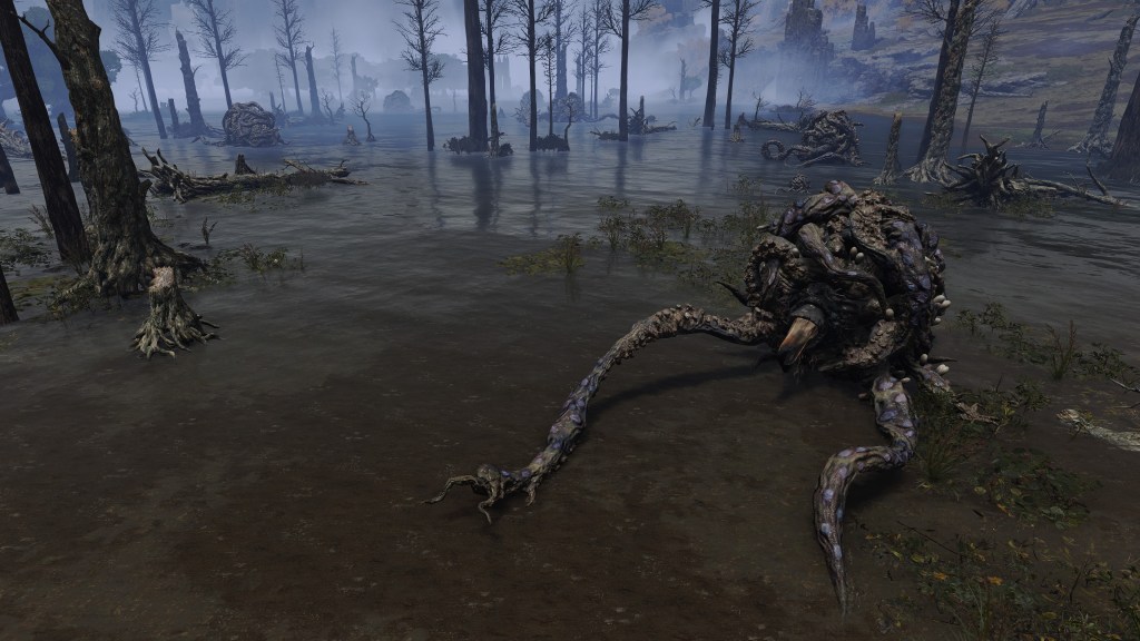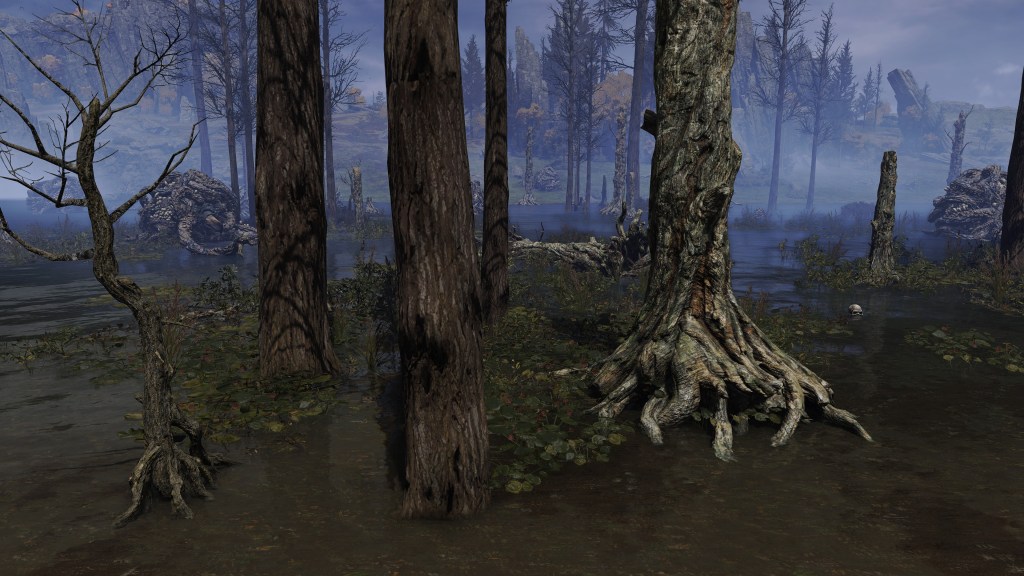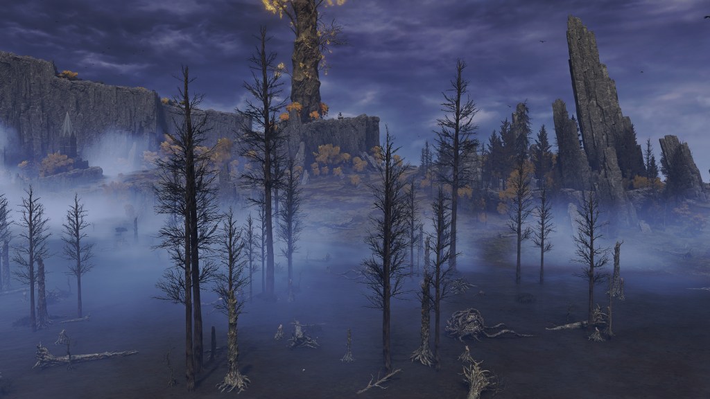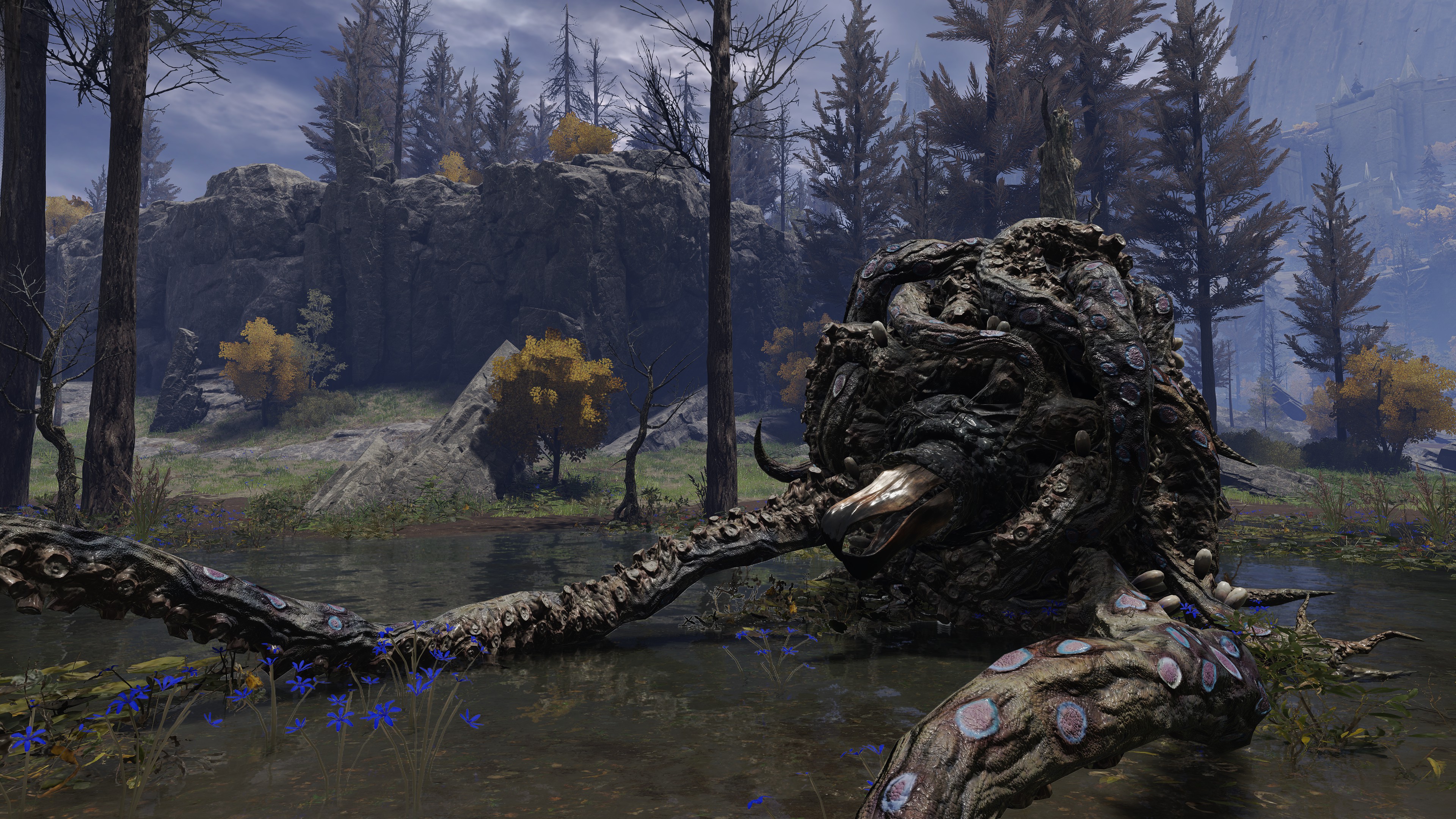 But while incidents like this doesn’t help Raya Lucaria with the war effort, the underlying problem is the Cuckoos’ incompetence. Even allowing the flooding has worked more to the enemy’s advantage. A collection of Scenic Isles resulting from the lake, between the Albinauric Village and Laskyar, are a natural draw for anyone hoping to a establish a foothold in the area. But becoming kings of the hills brought only more death. In one case, it is to the Albinaurics. In most others, it is to the resident demi-human tribe competing for space or land octopuses looking for fresh blood. There is a reason that every one of these islands is lined with bloodroses. The one exception is, suitably, the isles where a land octopus roves already with a brood. Clearly, if the Cuckoos had plans to launch another assault on the silver village, this time from the east, it would face another layer of resistance. What strategy do they have which isn’t hampered by their gross mismanagement of the war?