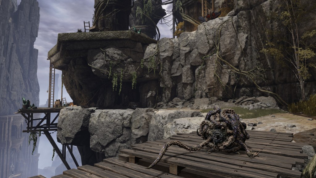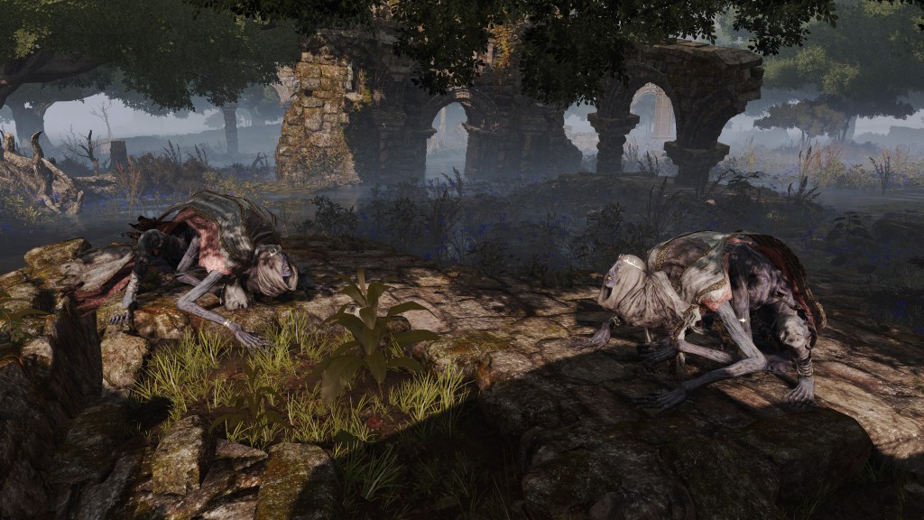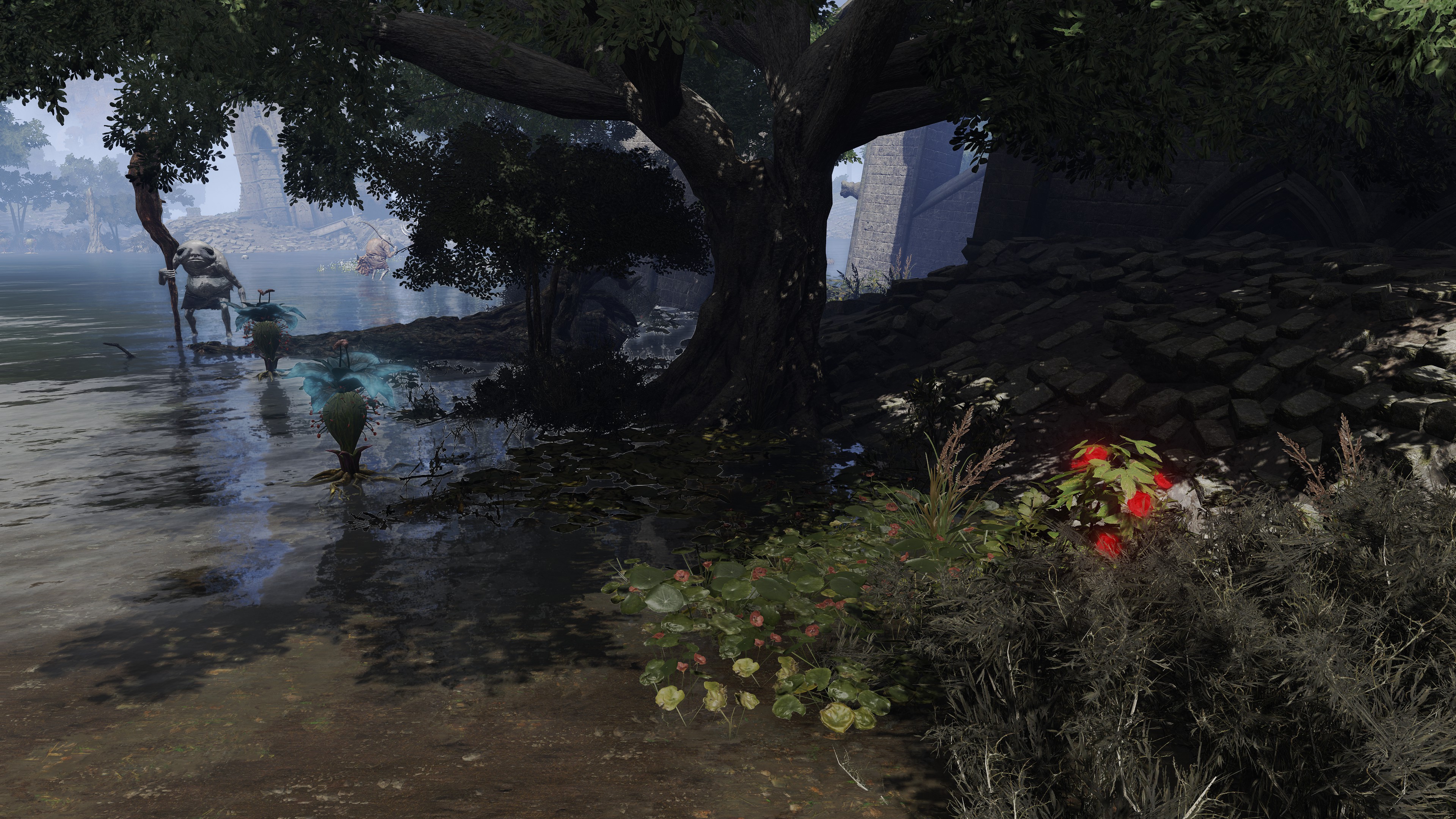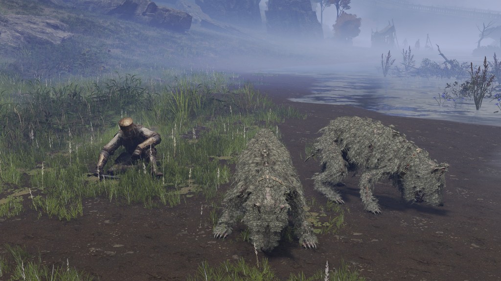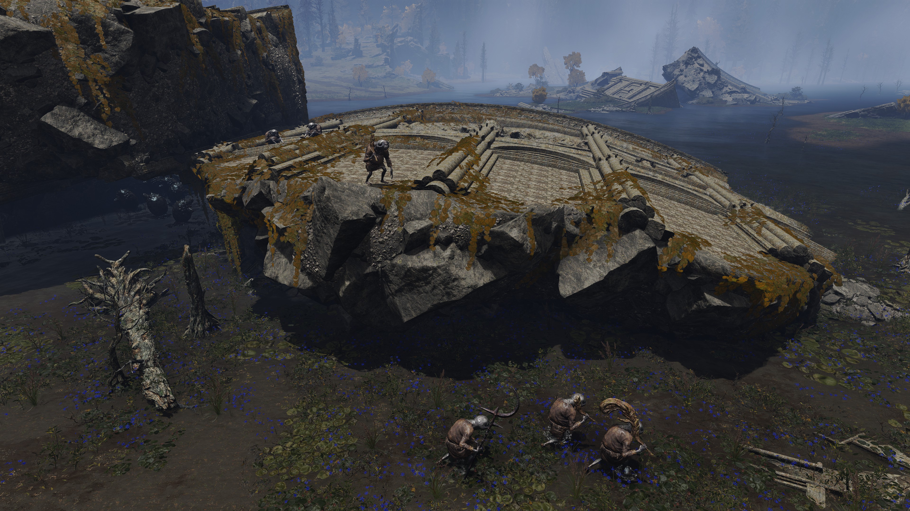 But while incidents like this doesn’t help Raya Lucaria with the war effort, the underlying problem is the Cuckoos’ incompetence. Even allowing the flooding has worked more to the enemy’s advantage. A collection of Scenic Isles resulting from the lake, between the Albinauric Village and Laskyar, are a natural draw for anyone hoping to a establish a foothold in the area. But becoming kings of the hills brought only more death. In one case, it is to the Albinaurics. In most others, it is to the resident demi-human tribe competing for space or land octopuses looking for fresh blood. There is a reason that every one of these islands is lined with bloodroses. The one exception is, suitably, the isles where a land octopus roves already with a brood. Clearly, if the Cuckoos had plans to launch another assault on the silver village, this time from the east, it would face another layer of resistance. What strategy do they have which isn’t hampered by their gross mismanagement of the war?