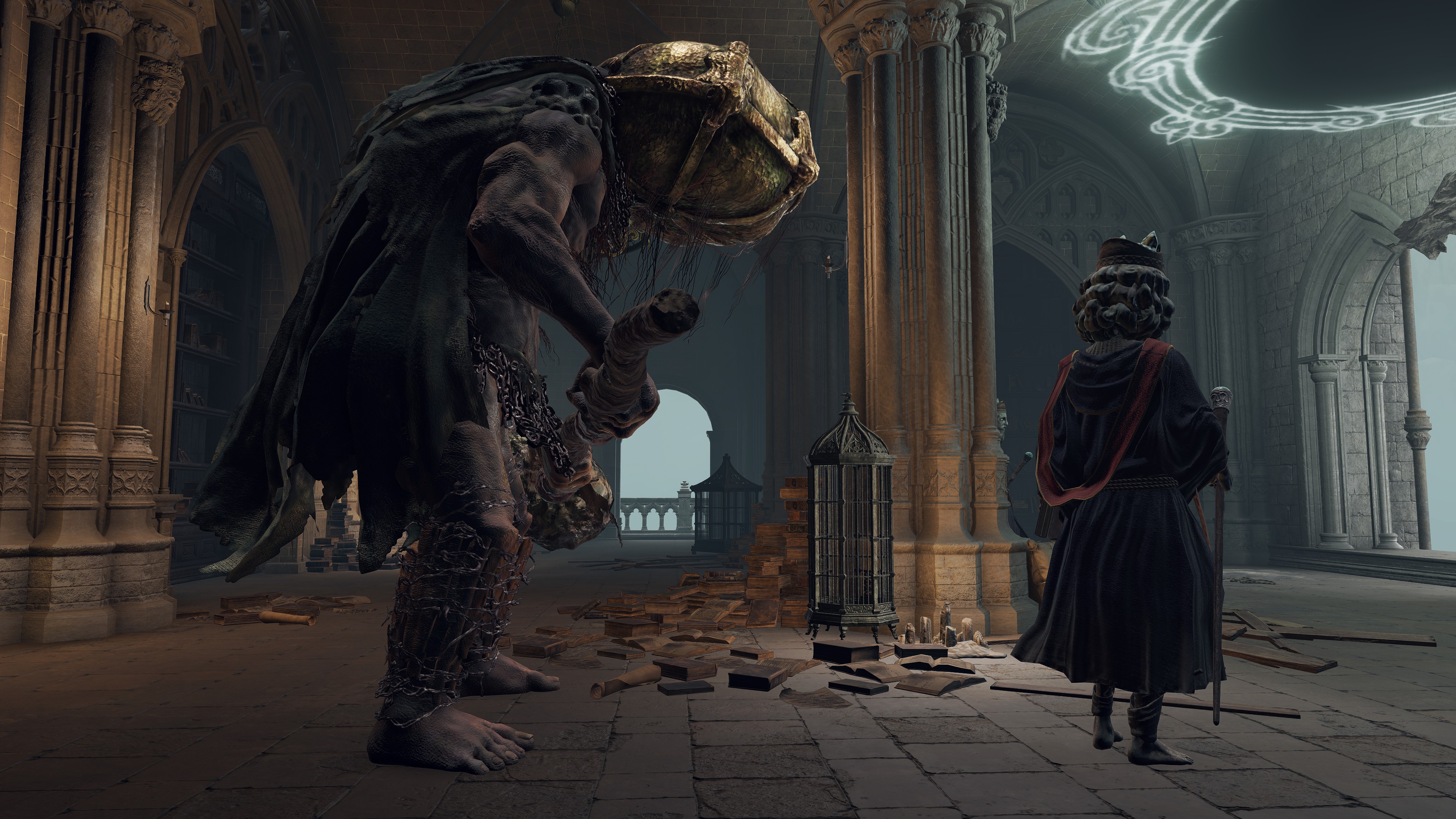 The first step in any rebellion, however, was deposing the queen. According to Miriel, Rennala became a prisoner in the Grand Library when Raya Lucaria finally revolted. However, her “imprisonment” seems to be little more than a formality. By all indications, the queen has remained in that archive of her own accord, busying herself with the amber egg as she has done since well before the Shattering. There are no barriers, magical or otherwise, preventing her from leaving. The fact that Moongrum stands idly by in the midst of this open rebellion shows that she has not expressed a single word to the contrary. He just continues to stand guard at the building’s entrance, cutting down anyone who might bring his monarch harm. Unless the Full Moon Witch has a change of heart, neither will test the academy’s ability to enforce any confinement. Conversely, the scholars need not do any more to keep her there. She was already isolated from the rest of her family, with the sealing preempting visitation even. And they knew the “hero” was no longer in a state to contest their treason.