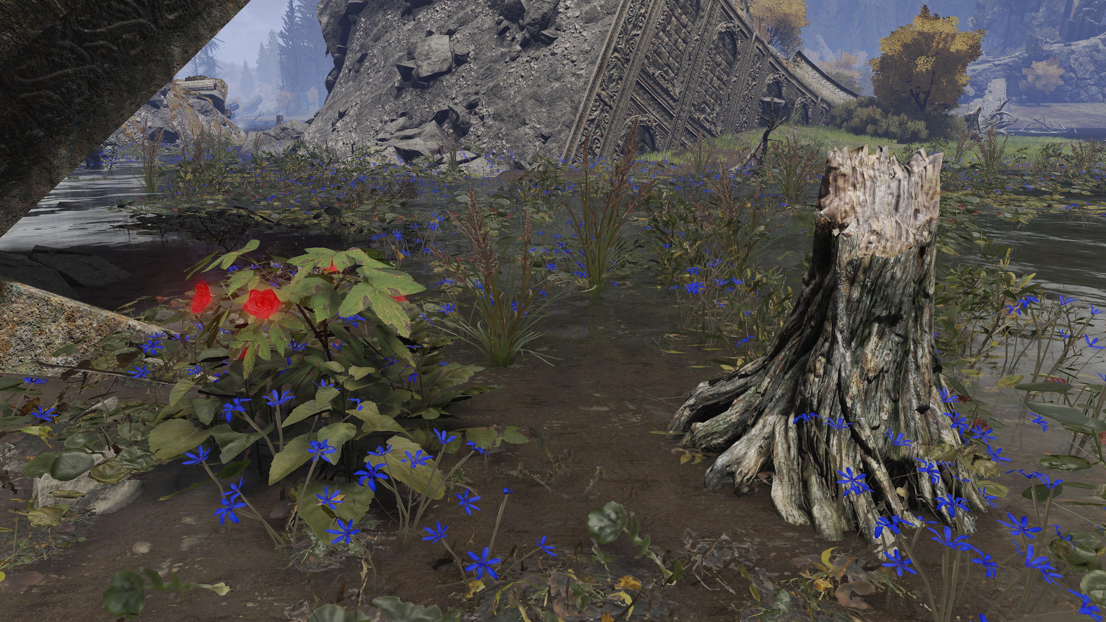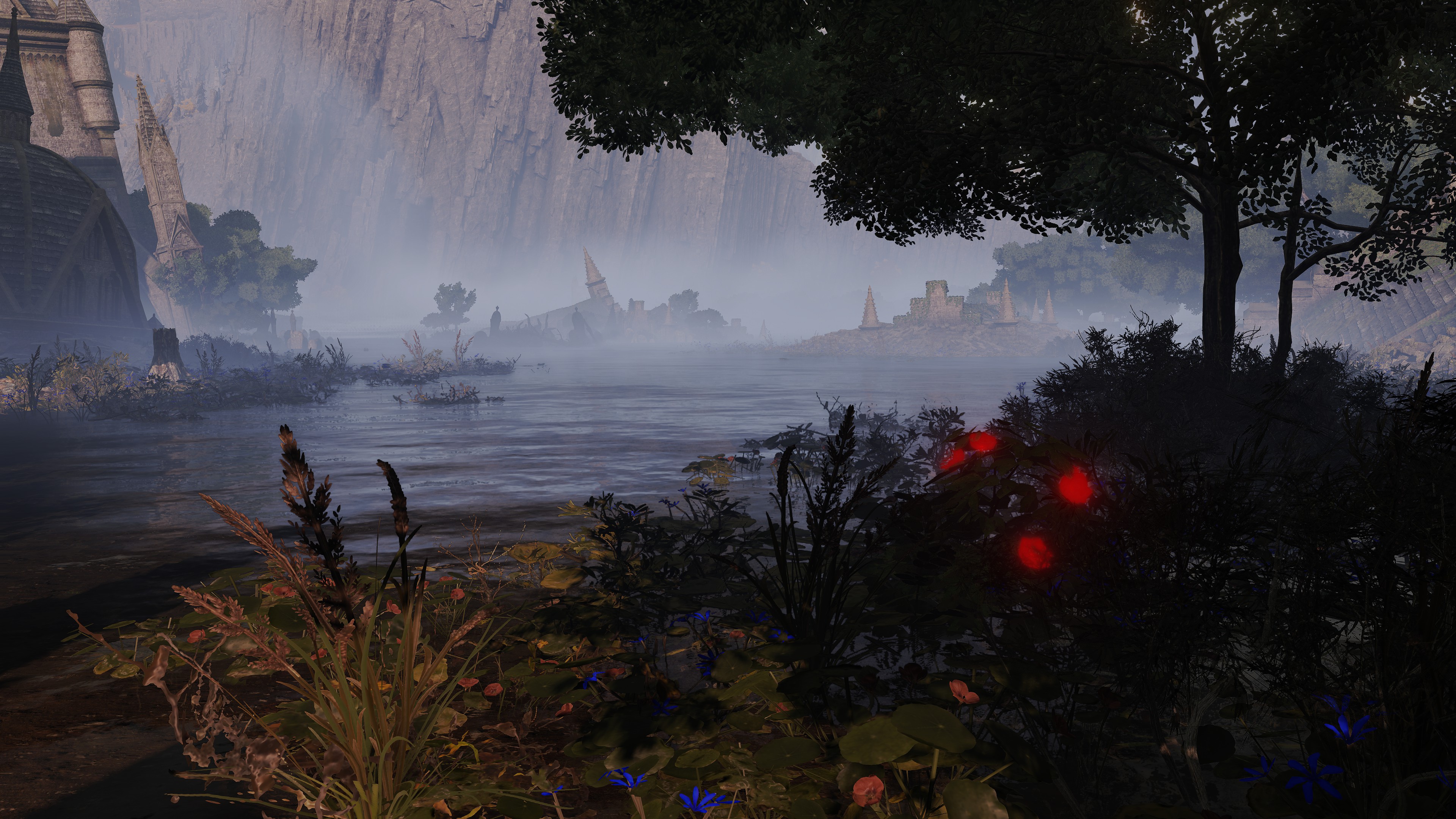 In the northern part towers the Academy of Raya Lucaria and stretches the Pre-Gate Town submerged at its foot. Also, this place is a stopover for the two highways.