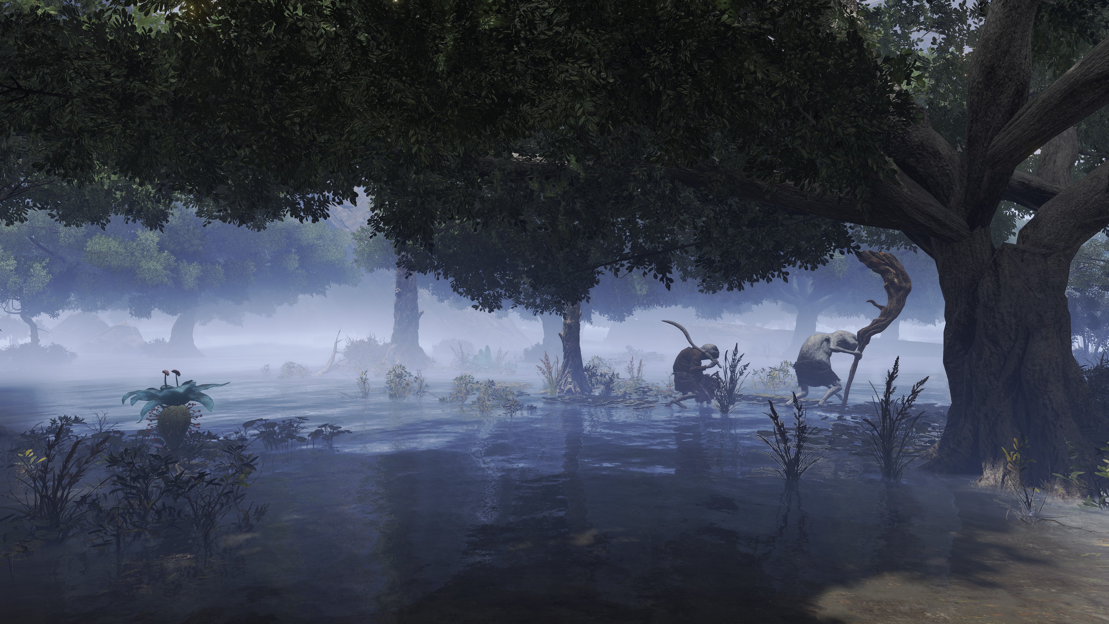 Without anyone to control the currents, water from the river valley up north has overflowed, submerging the Gate Town in a giant lake. Houses sank, many simply collapsing under their own weight atop soggy foundations. The two highway bridges similarly destabilized and broke apart, cutting off the Cuckoos’ only chance of escape from Gate Town. Beyond it, the Laskyar Ruins have fallen to a similar fate. And everywhere in between, most large trees have died to become driftwood while mangrove oaks and Miranda flowers flourish into new forests, to say nothing of the crystal formations. The years have not been kind to the soldiers embroiled in conflict with silver. But none of that matters to the Albinaurics, who enjoy their vantage upon the sinking ruins as they continue patrolling the wetlands below. Slowly but surely, the second generation have turned the tides of battle to their favor and are arguably on the cusp of total victory. But for all these years of no traffic, a forest with wildlife has emerged on the bridge behind the defenses. So long as the seal holds, this war is far from over.