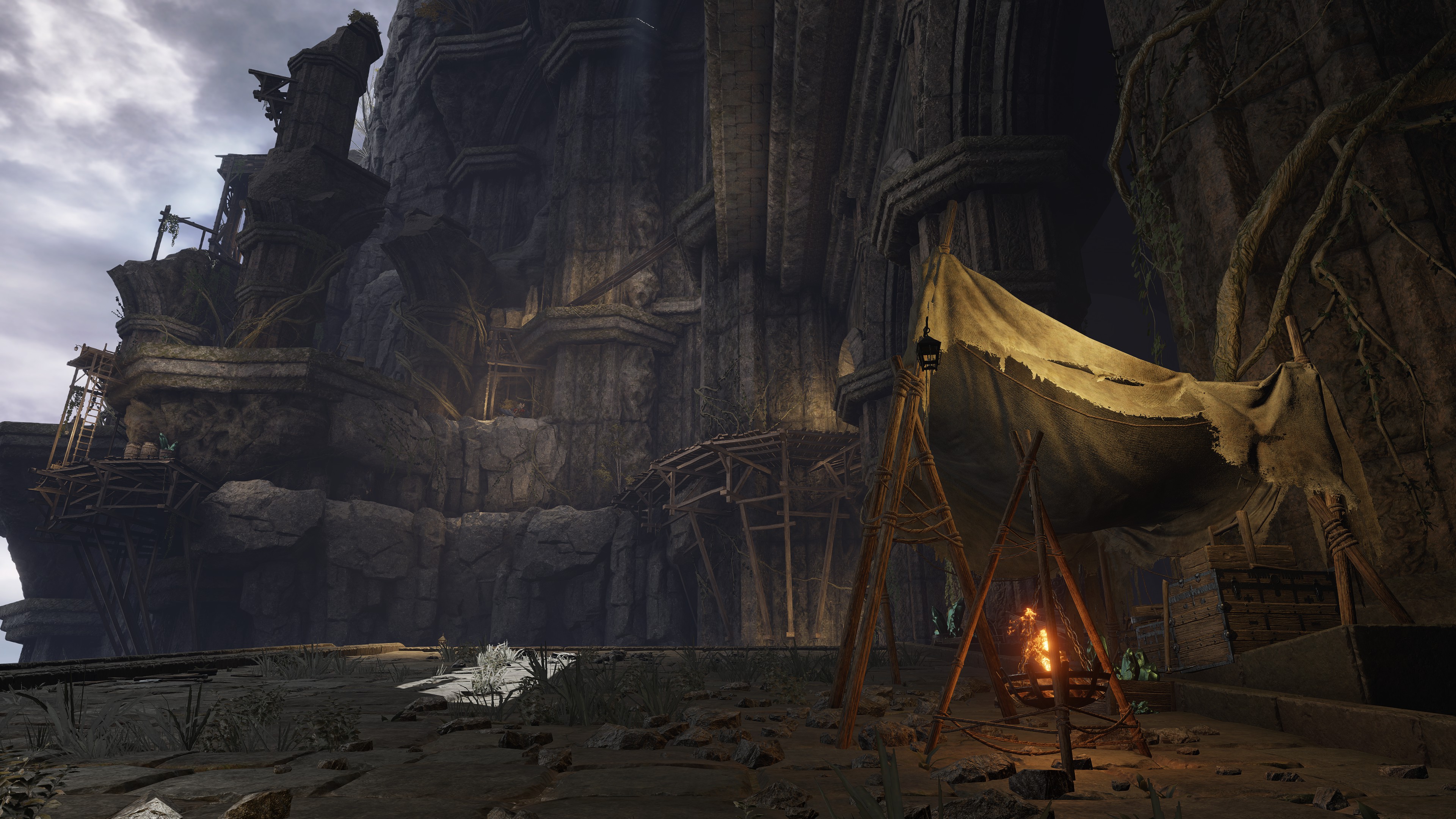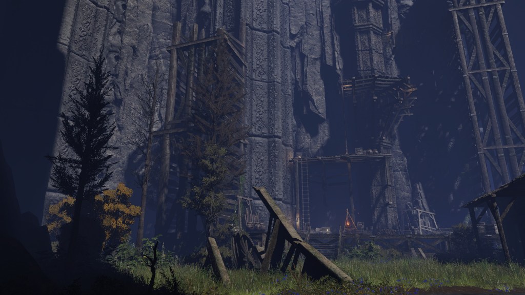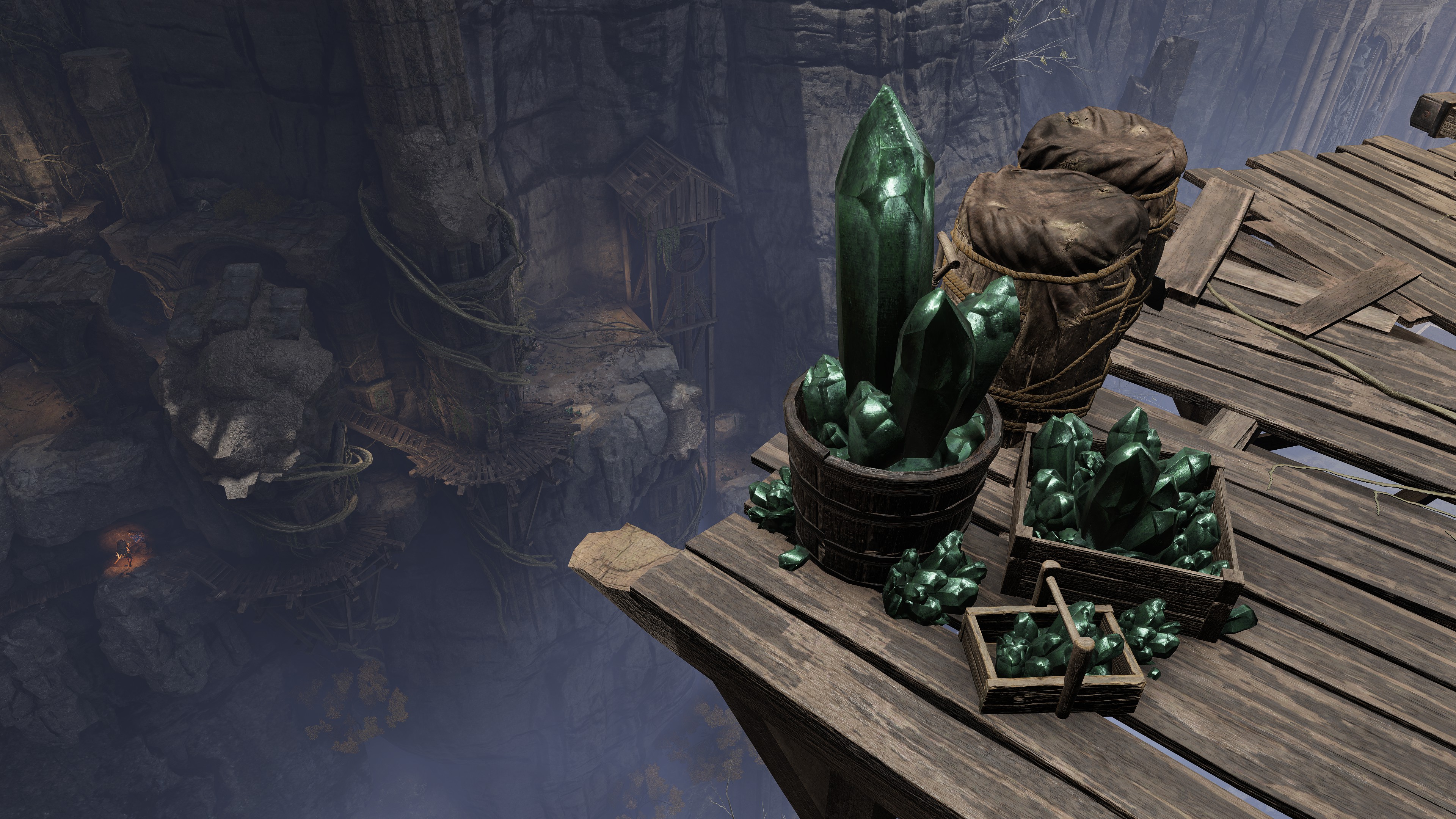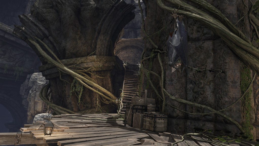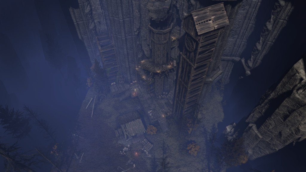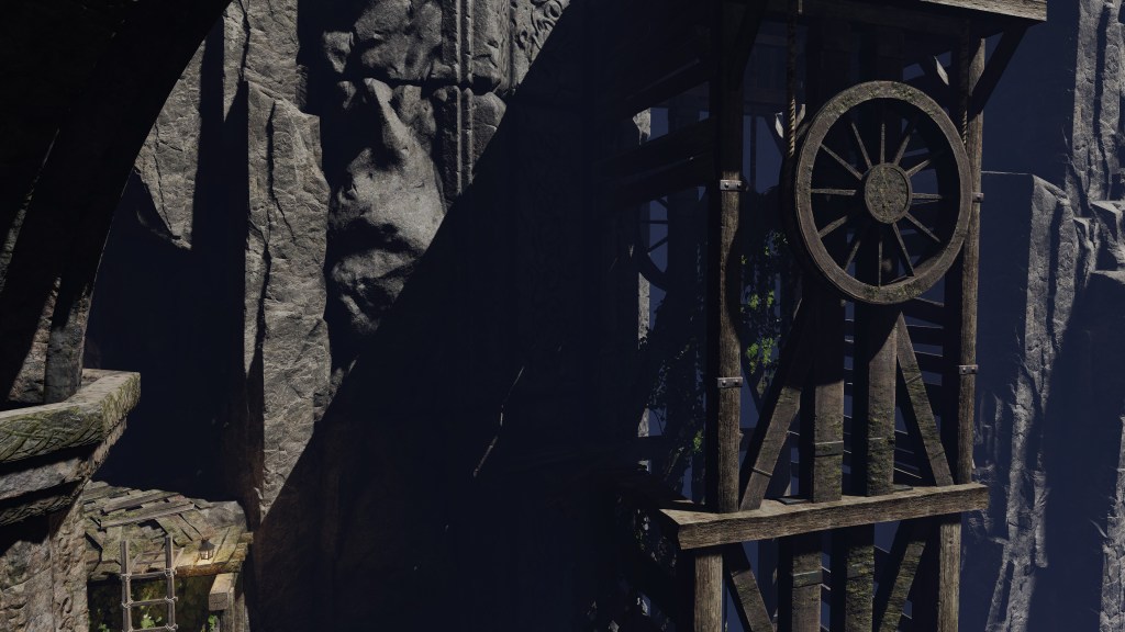 At the foot of the Precipice mine is supposed to be a village. However, it is a Ravine-Veiled “Village” with only one derelict building. It isn’t the only part left dilapidated. We must ascend ladders and platforms to head inside the mine, but there was originally a lift, whose infrastructure has since collapsed. This led to construction of a second lift, which we also see in pieces. But this lift was never completed past the shaft frame before its destruction. Combined with the derelict shack, and the scenario at hand is obvious. The village was established but never finished construction; the builders left before they had proper homes. It is no mystery why. The ravine holds little space, even ignoring the river’s flooding, and priority went to constructing the mine infrastructure across the Precipice. On top of that, the shadowy valley is rife with hungry bats and octopuses, who will climb the sheer cliff for a bite. Even Makar, hiding in the ruins, is leaving a litter of bones. Creating a settlement to support the mine was almost as hazardous as the mining itself. Eventually, the settlers gave up.