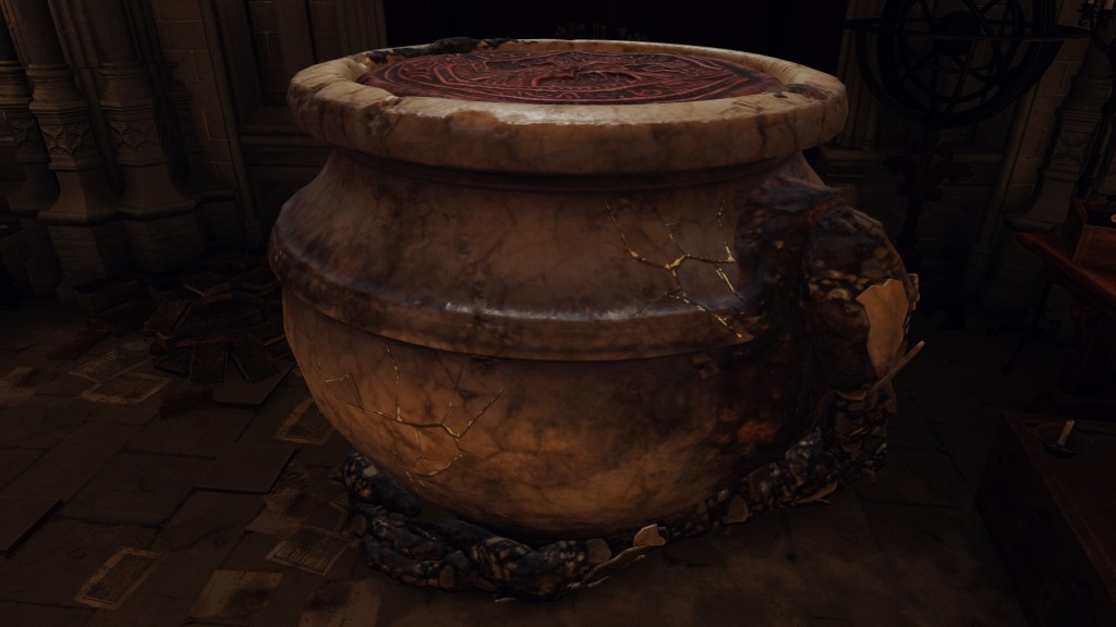 But then, the Shattering broke out. Time and again, the academy would see armies cross their highway as the Erdtree kingdom slowly fell apart. According to Thops, Raya Lucaria’s official position was noninterference in the war, seeing it as an internal matter for the royal capital to resolve and not relevant to them all the way out west. Perhaps a number of Erdtree nobles attending the academy or soldiers stationed in Liurnia left to join a faction’s cause as they were passing through, but the Liurnians themselves remained steadfast in their stance — at least, initially. Yet as it became clear to the sorcerers that this wasn’t just a minor dispute but full-blown civil war, they needed to ask themselves the question: what stopped one of these factions from remaining as an occupying force? With their valuable sorcery there for the taking, it was possible. If the academy wanted to retain autonomy and avoid getting caught in the crossfire, it needed a deterrent. But how would they accomplish that without an army? Feeble scholars like them couldn’t take on knights. The answer was, of course, bribery.