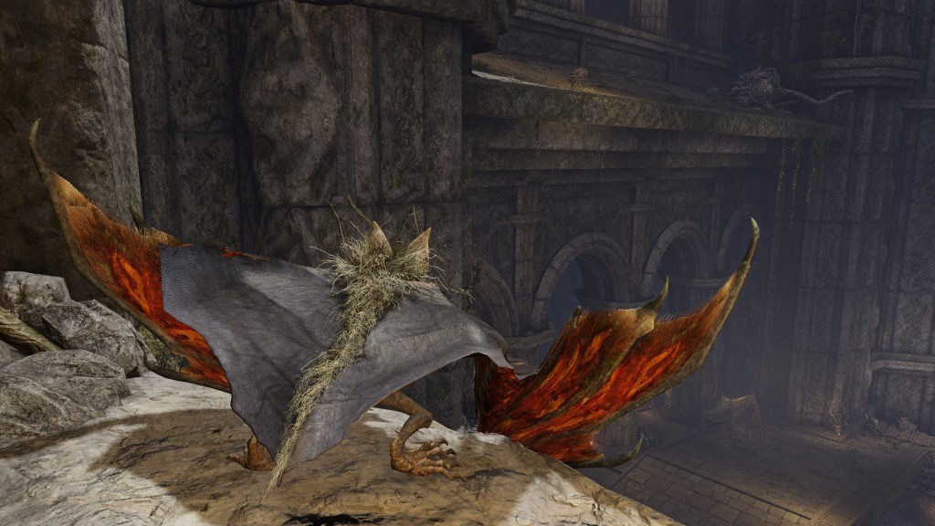 Much of the ire therefore seems to not be directed at Raya Lucaria but rather the Carian hierarchy, which isn’t surprising if dragon wings are being harvested for war balloons. Part of the pact with Rennala was implicitly for the dragons’ continued protection. But the academy is no longer listening; dragon-kind is being butchered, and the Carian clan has done nothing to stop it. Those living on the Moonlight Altar have remained safe on their island high above the conflict, too cowardly to provide even token support to any of their allies. If Caria is too helpless or negligent to protect lesser dragons, then what reason do those beasts have to abide by their oath? The moon nobles may feel that this abrupt massacre came as a massive betrayal, but their devourers would argue that they betrayed their oath-bound friends first. Smarag continues to insert himself in this civil war, but most want nothing more to do with humans, preferring peace and quiet cultivating crystal patches on their mountain.