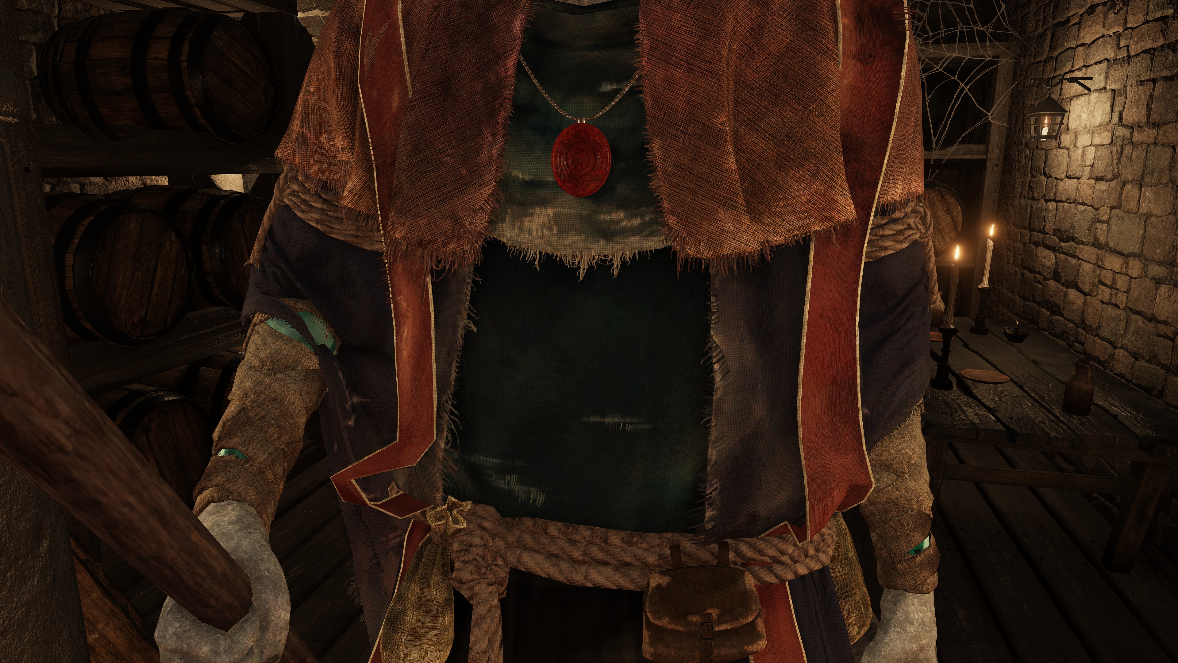 Brightstone prosperity and the cuckoos peering at it are depicted on the surcoat. For the Cuckoos alone know that the flesh is no more than transient to a brightstone sorcerer and watch over it.