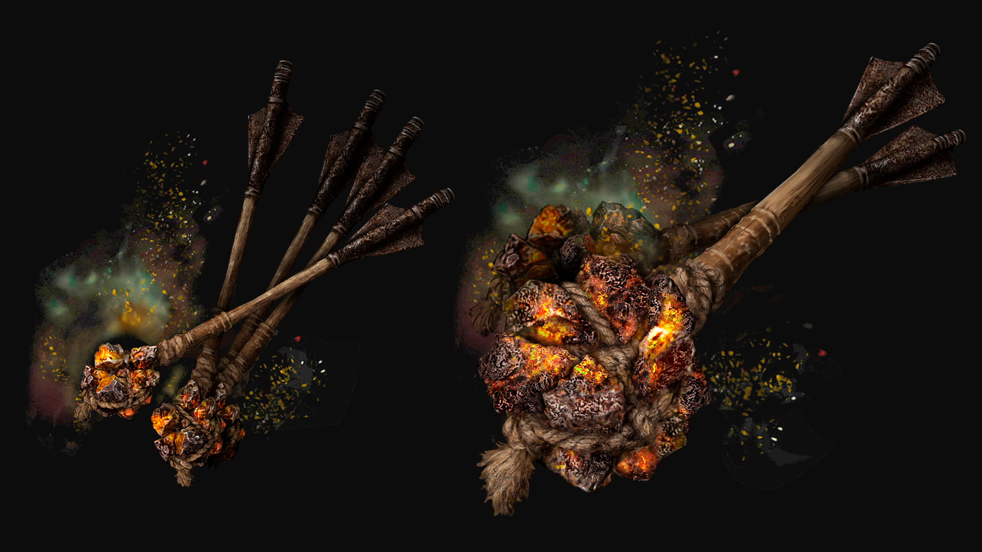 Streams out fire and furiously burns ahead. Can be used without stopping movement and it continues while holding.