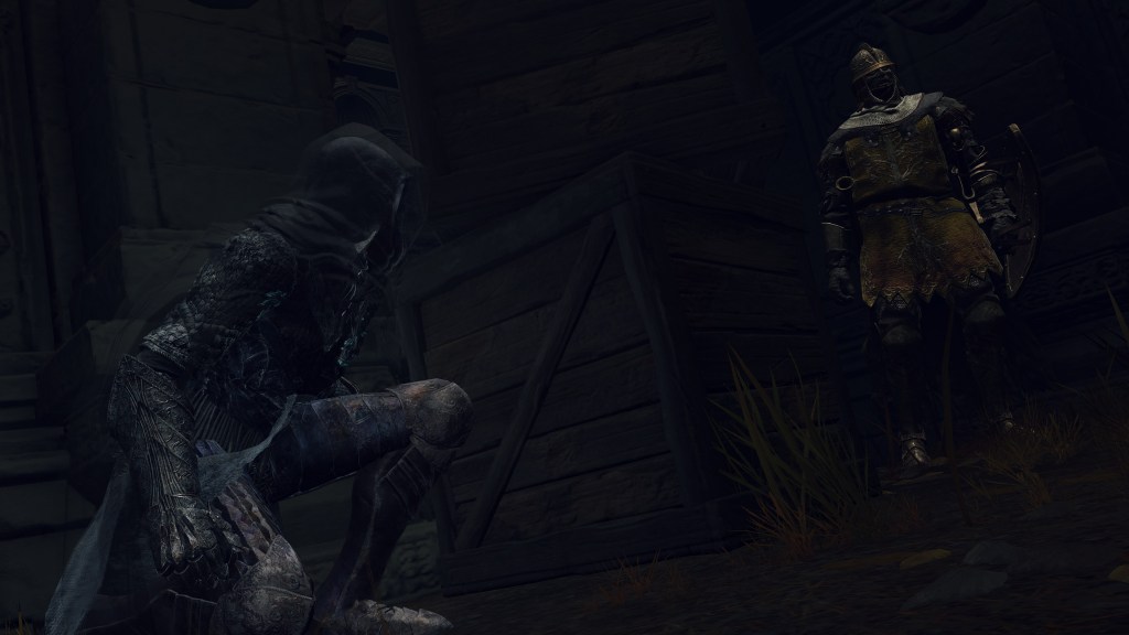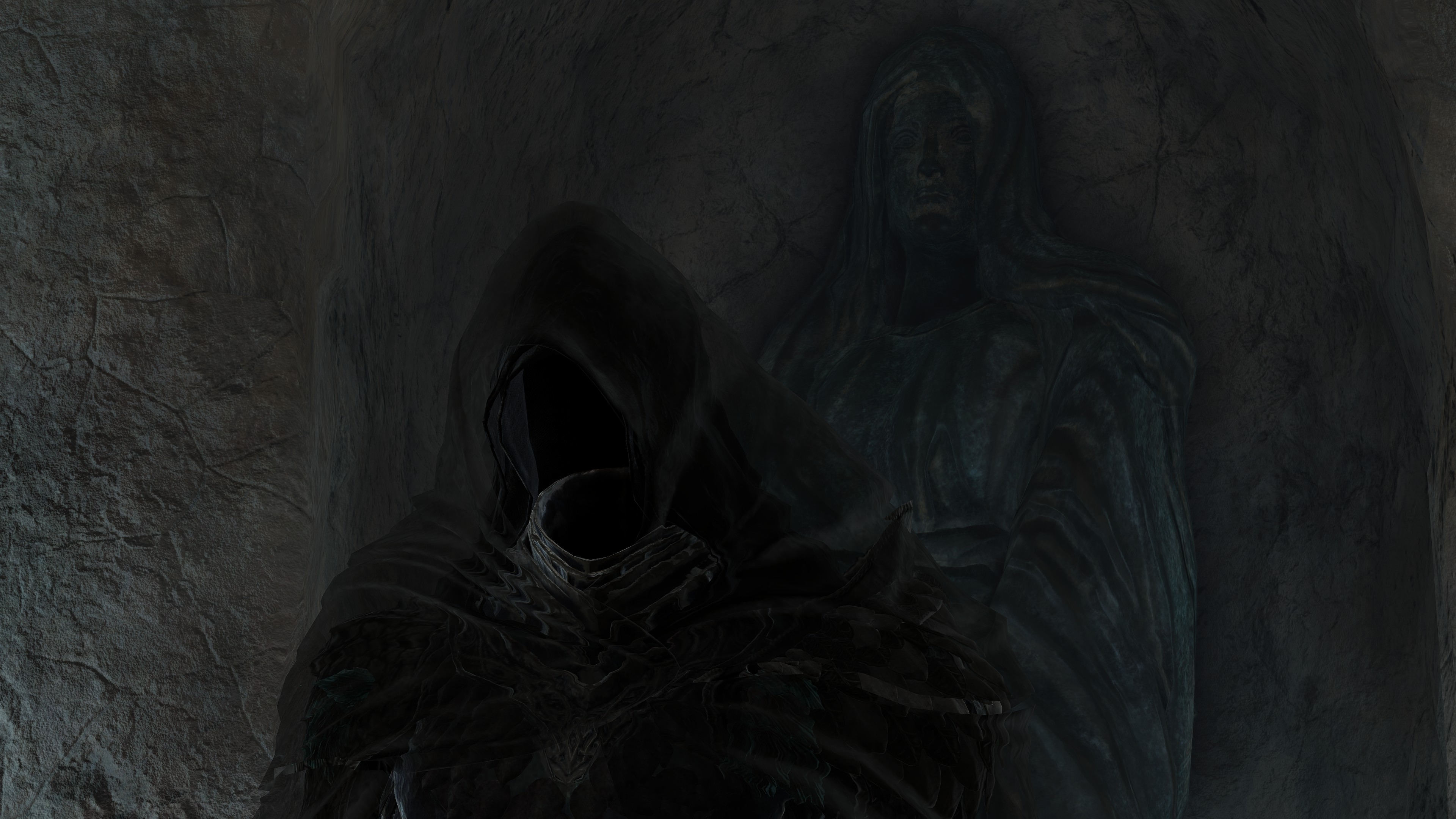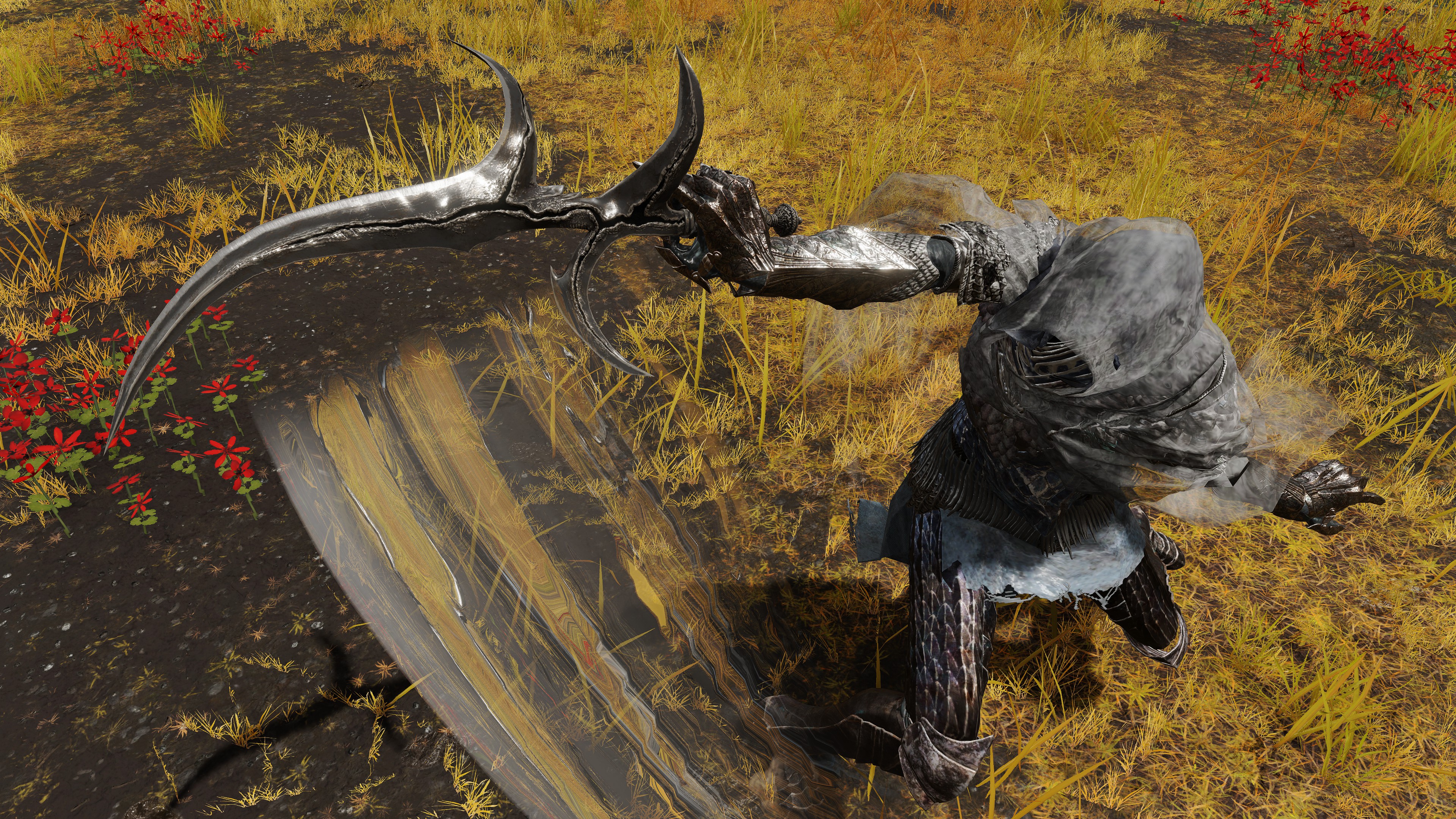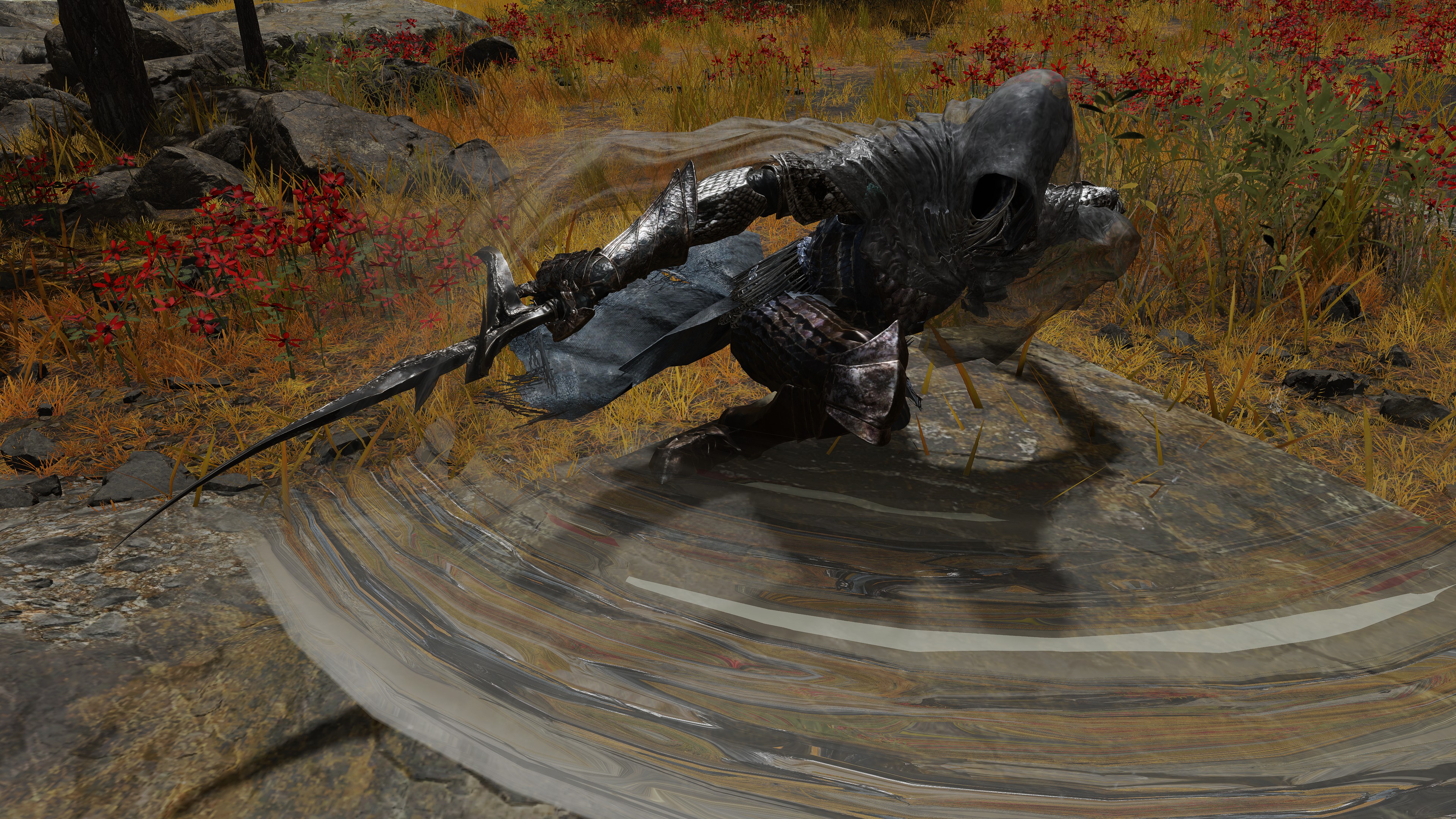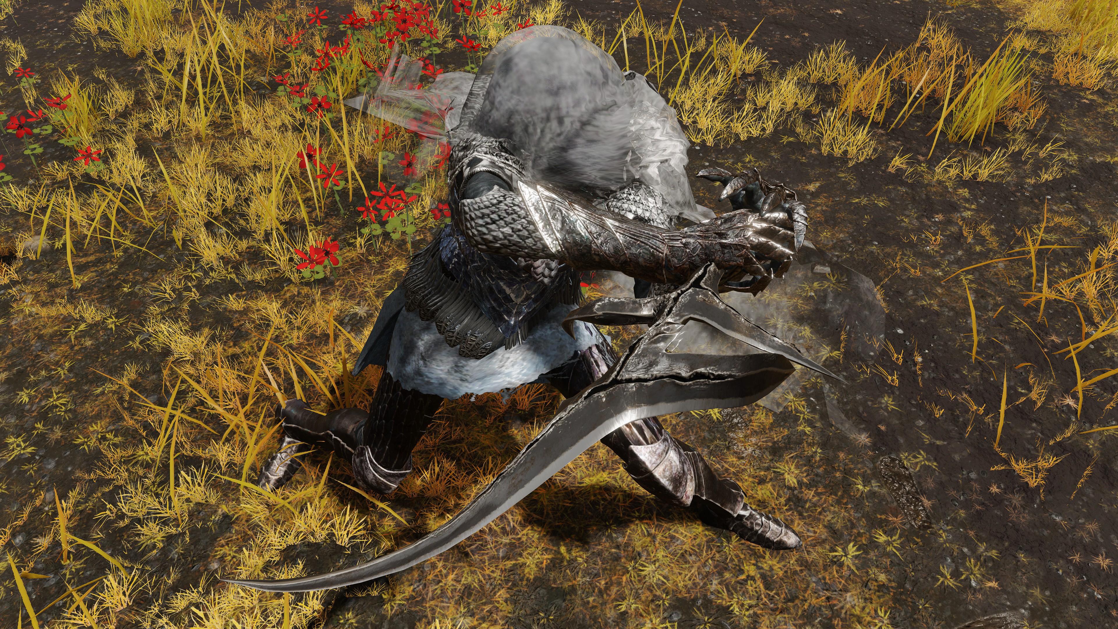 Whatever the exact circumstances which led to their meeting, the moon princess made contact with the future Black Knife leader and together concocted a plot to undermine Marika. For her part, Alecto gathered likeminded women to train as assassins. True to their Nox heritage, the group armored themselves in silver and overlayed it with a lustrous dark veil enchanted to hide their bodies and silence their every movement — the best Sellian sorcery could offer. Even if the target somehow detected them, the incorporation of scale armor made them especially robust against hemorrhaging slashes and the freezing cold. So long as the assassins escaped, no one could even identify them. Even now that most veils lack the power to hide their complete forms, it has had a lasting effect, with cuts through the armor spraying black shadow instead of red blood. This must come from the veil’s power based on the story trailer, where it is depicted as a thick, opaque cloak billowing similar dark smoke at the ends. Black Knives leave no sign of who or what they are, the perfect infiltrators.