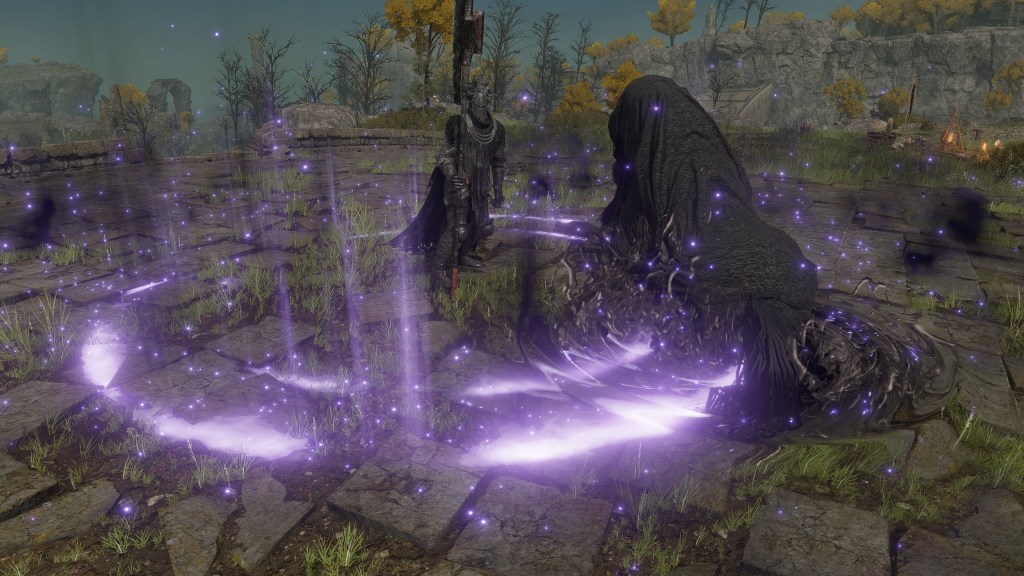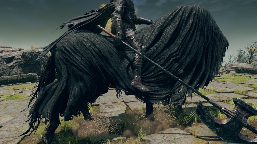 Shrouded in a thick black cloak like their masters in the trailer, the text for the Night’s Cavalry set describes these horses as funeral steeds. Their bony yet hairy legs bring to mind Torrent, and they may well be a kind of spirit steed. Much like our mount, funeral horses demonstrate a degree of immortality; if slain, the rider is able to summon them back, steed rising out of the magic circle at their feet good as new. The game files likewise reference them as Nazgul, wraiths of J.R.R. Tolkien’s The Lord of the Rings who are obscured beneath similar black cloaks and straddled atop similar black steeds. If they are spirits brought there with magic, then it is possible to be an art devised in Caelid. And if they are creatures from the spirit realm, then it is possible that they, like Torrent, can traverse special pathways that would dramatically shorten journeys across the Lands Between. However the conspiracy came to acquire them, they are the limiting factor on coordinating the entire plot within a tight time frame.