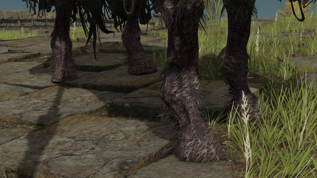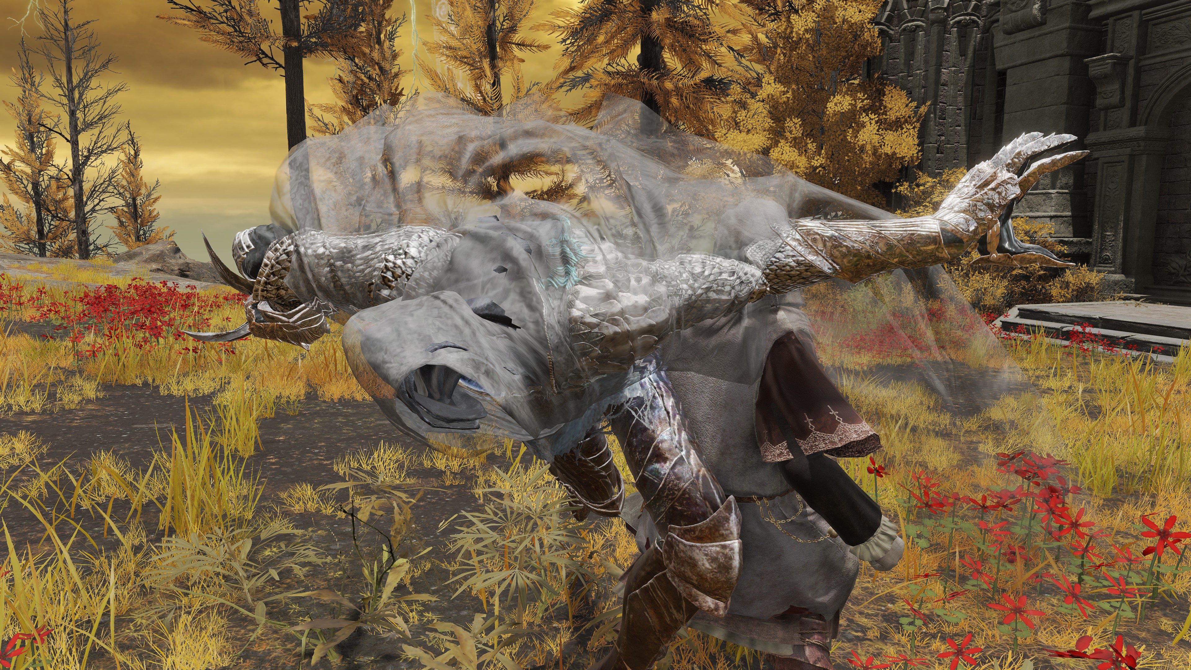 With all that foundation laid, there comes one final question of the logistics. Various dialogue and item descriptions affirm that stealing the Rune of Death, creating the black knives, and the assassination all took place on the same night. Even with the most generous interpretation of “night” as the roughly twelve hours between sundown to sunrise, the idea that the conspirators traveled back and forth across the Lands Between to accomplish all this beggars belief. While we can certainly travel from one end to the other on Torrent in less than an hour, the map we explore is much smaller than the world the game represents. The very existence of public overnight rest stops along the highways implies that crossing regions takes several days at minimum, even on horseback. Planning alone cannot overcome distance — how then was it possible for the assassins to make these trips in a single night? Assuming that it isn’t an oversight, the best explanation is that their mode of transport allowed for faster travel than would otherwise be possible. And looking at the story trailer, we do see the assassins riding unconventional mounts.