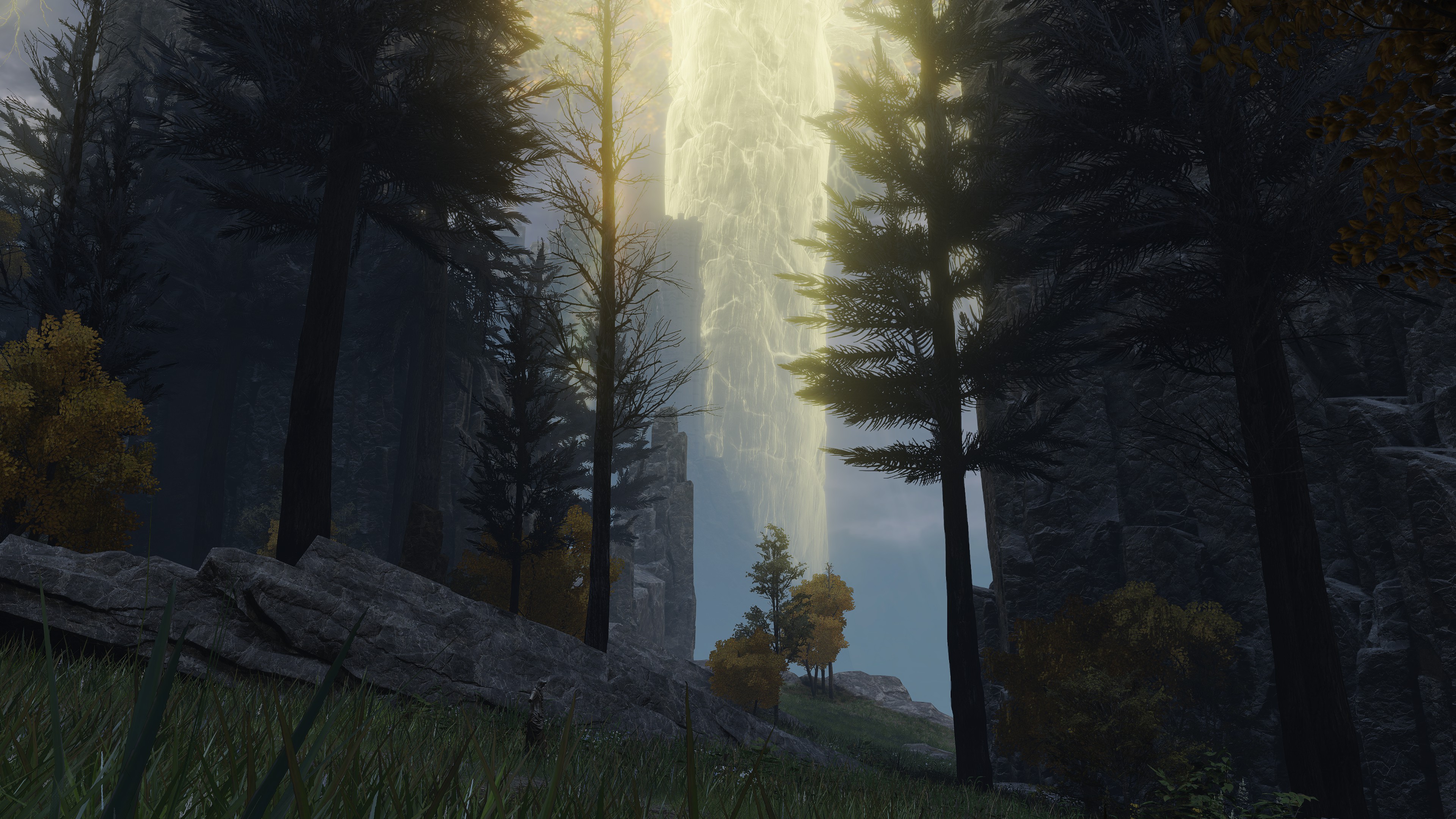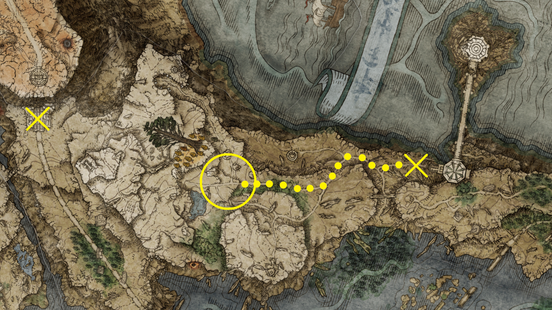 All of this was performed from the privacy of Liurnia’s Divine Tower. It is there where we find Ranni’s body abandoned along with the Cursemark. The story trailer likewise shows a group of Black Knives riding across the land from seemingly the tower’s direction. Although there are discrepancies in the depiction of their veils, the assassins are still discreetly moving through a forest in the middle of the night, the Erdtree in the background. From the framing, they appear to be heading to the base of the tree where they would assassinate Godwyn in the very next scene. And based on the golden tree’s orientation, the surrounding greenery, and the presence of large conifers, this should be part of the woods in northeastern Liurnia, between the Divine Tower and the Grand Lift of Dectus. That only makes sense if they set out somewhere around the tower area, heading up from the south. Above all, the tower was the liable staging ground for all the rituals, a meeting point for the plotters.
