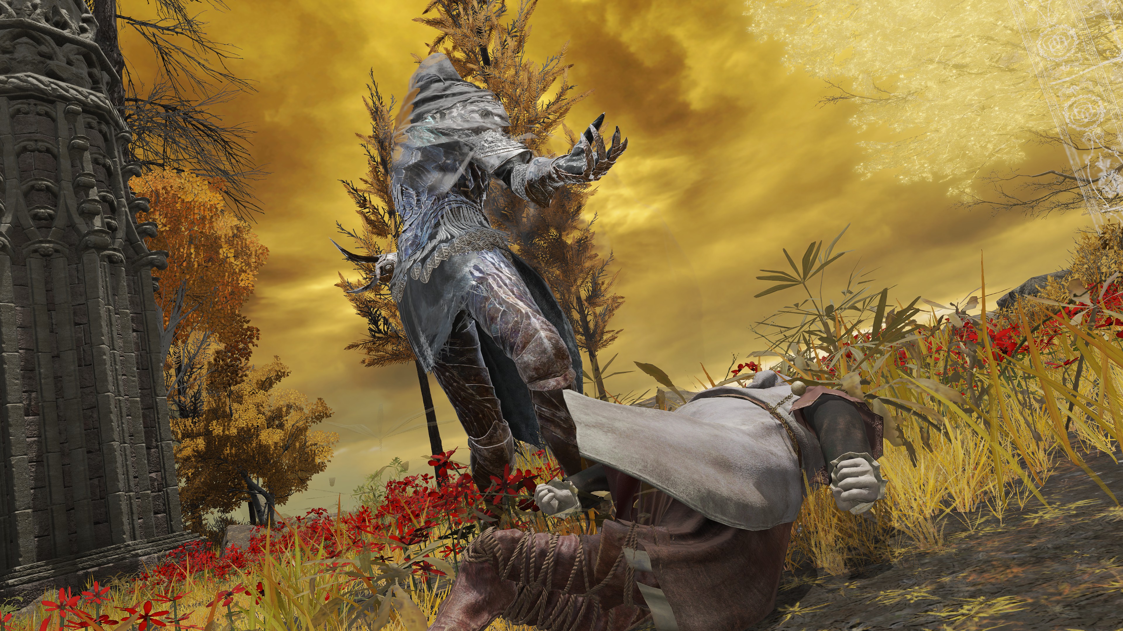 Only, something went wrong, at least for the Leyndell party. The manner of Tiche’s death suggests that they were unexpectedly discovered, with the daughter taking a blow meant for her mother before the latter could react herself. In other words, the Black Knives’ leader survived by pure chance — “Tyche” (ティシー) is the name of the Greek goddess of fortune. Alecto or someone else might have dispatched the attacker afterward, but it was too late for the daughter. With no time to mourn, the best Alecto could do was take her precious little girl’s remains, which she carries to the present day as ashes, and escape. For this to come about was perhaps happenstance. After all, the shadows in the story trailer indicate that the assassins were visible even as they left Godwyn’s body; it may be that they crossed paths with a guard before thinking to return to stealth. But after all that planning, this seems too egregious a blunder at the very end. Alternatively, something occurred which wasn’t part of the plan: a double-cross.