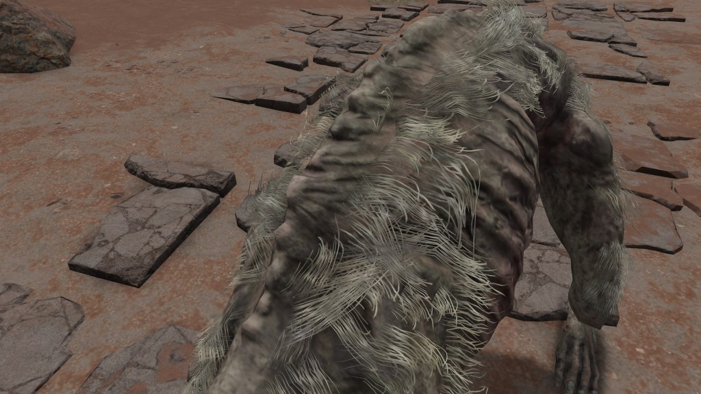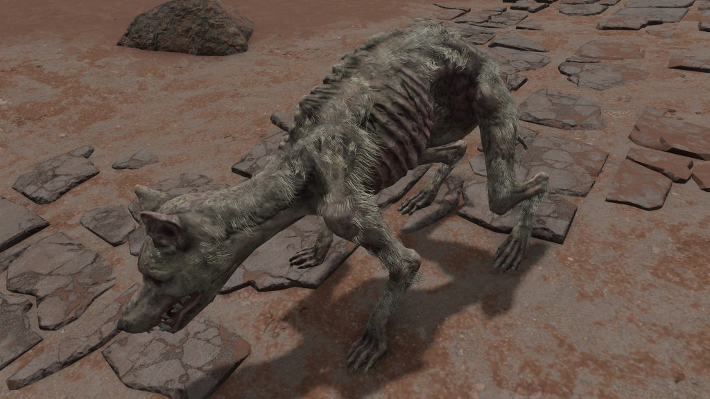 The same holds true for domesticated creatures. The various dogs we encounter throughout our journey all look deathly thin, with the ribcage partially exposed. Inconsistent as this is with wild beasts, their overall unnatural state isn’t so odd, considering their circumstances. We do often find strays feasting on human bodies, with pet canines brought to military camps and the like as obvious war hounds. Both examples are liable to have enjoyed a steady diet of Hollows, inheriting the hollowing in turn. If nothing else, this confirms that the zombified appearance isn’t limited to life of white flesh and blood. The only animals implicitly immune to this phenomenon, in fact, seem to be the land octopuses, who channel all the humans they eat into their ovaries for the birth of their brood. But that is a quirk of their peculiar evolution, most beasts not adapted to a human diet specifically. If more regularly resorted to man-eating, they too would probably suffer the same fate as the dogs and crabs.