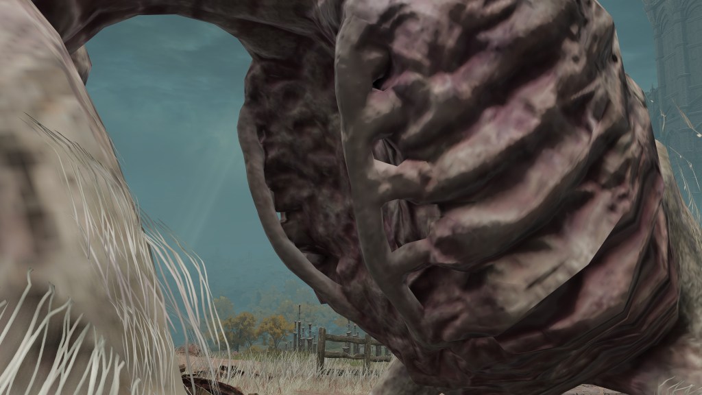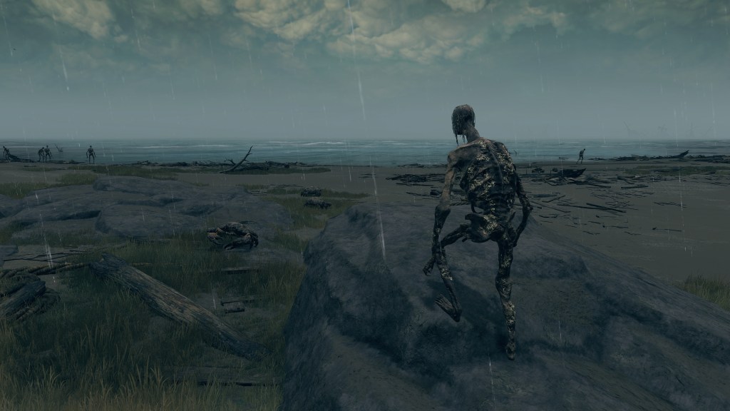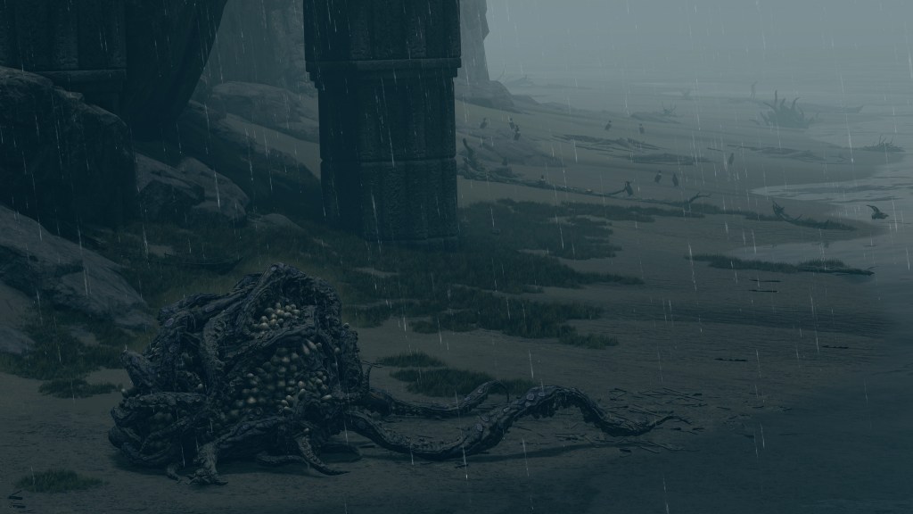 Not even humans from outside the Lands Between are safe for consumption. The fact that sailors who wash ashore and don’t get gobbled up by octopuses first are Hollow proves that any who make landfall will immediately receive the curse of life, dead or alive. And what buoys their ended lives save for the golden runes universal to all the enemies we may defeat? Just like said enemies, those rotten sailors can sometimes retain profuse gold in their eyes, providing fivefold the typical number of runes. Cut text for the commoner set likewise describes the Hollows as cursed by runes. Even weakened, the Erdtree continues to shine and spread runes to the inhabitants of every corner of the lands. It doesn’t matter if you are a half-rotten corpse brought in with the tides like flotsam, you are still worthy of the grace of gold. The result is that every person who touches ground is subject to an unending life, warped as it has become. The sailors desperate to reach the Lands Between now never know rest as they meander the beaches with maggoty insides. Gold’s blessing has truly become a curse.