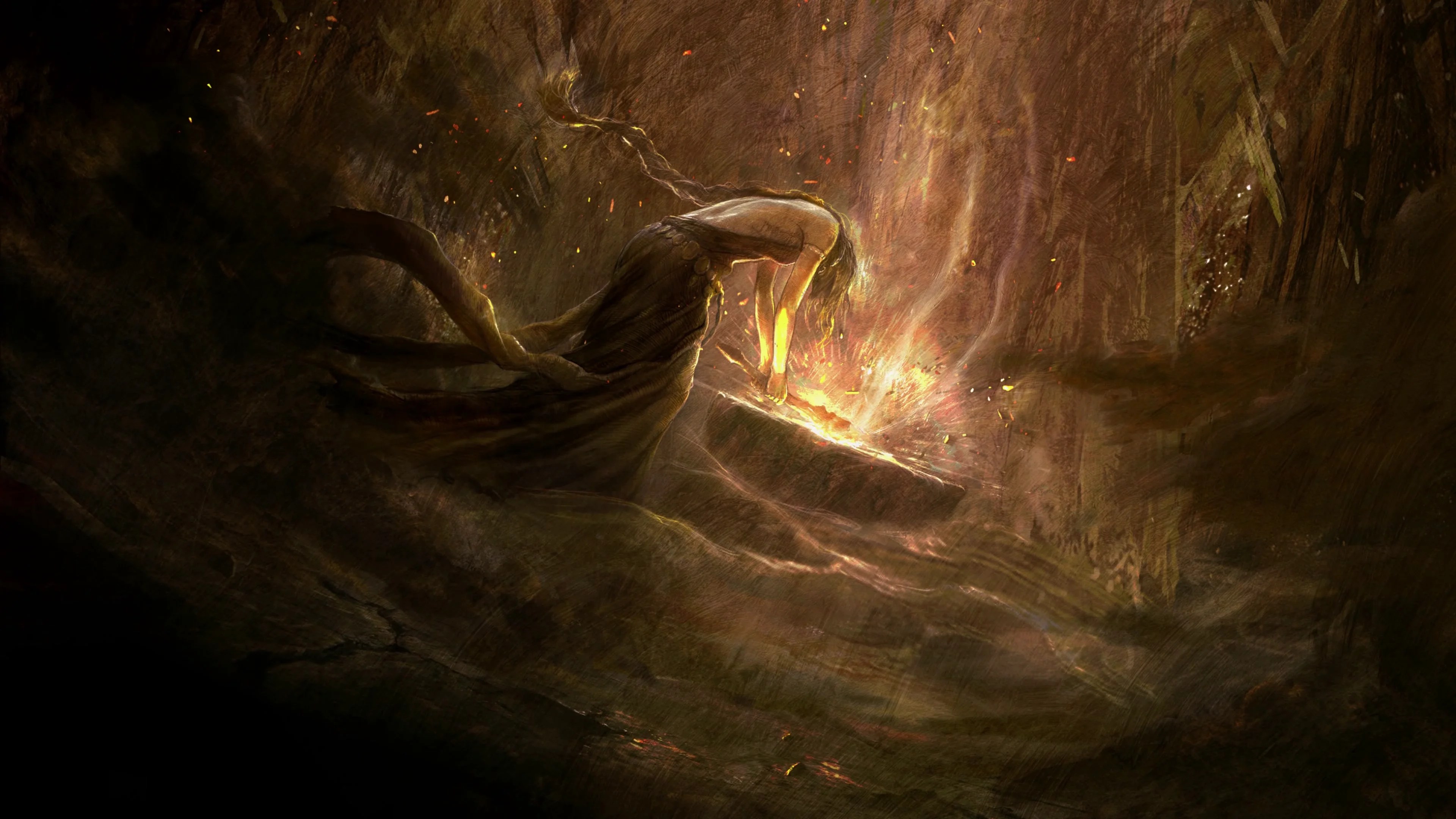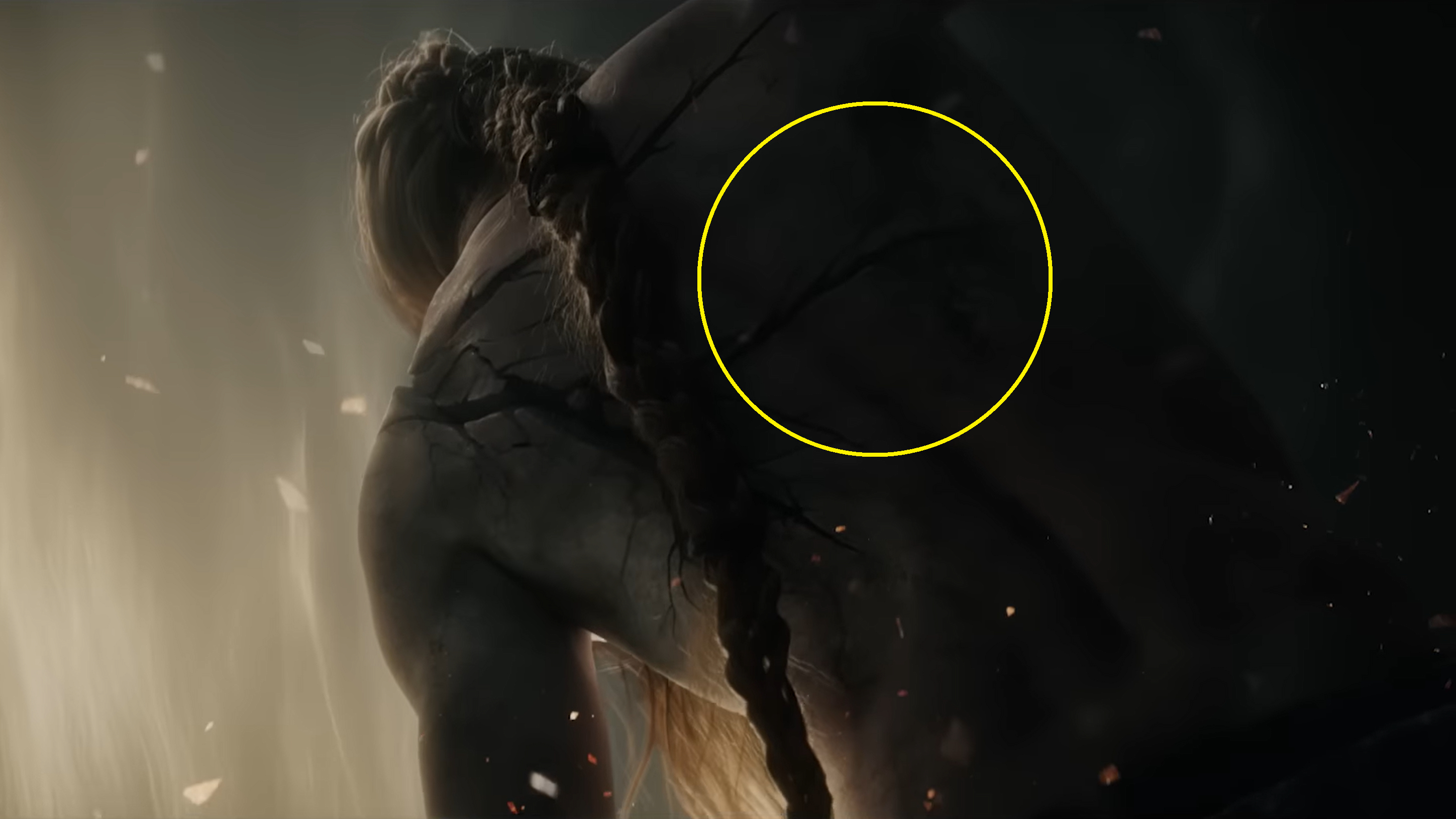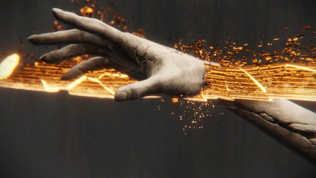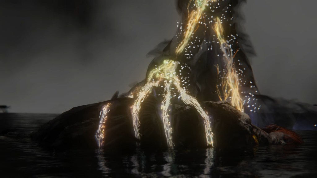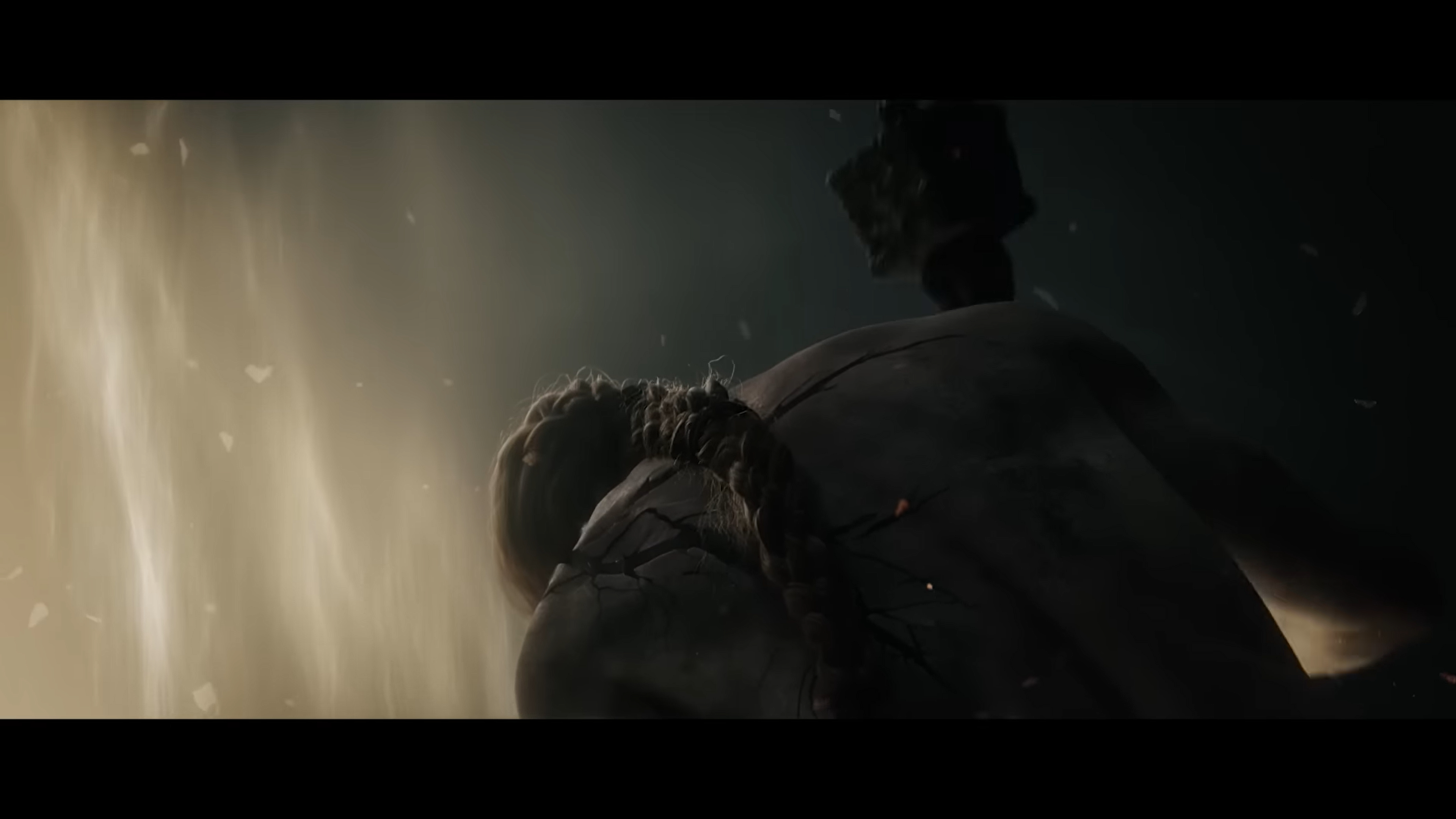 As seen in the introductory cutscene, this resulting back and forth between them continued at almost rhythmic pace. However, the announcement trailer indicates that Radagon’s efforts were futile. Even as he slammed the hammer to mend the Ring falling to pieces on its pedestal, some of those strikes weren’t weaving runes back into place, their body cracking more and more with the gold instead. It is clear that Radagon wasn’t consistently in control even when managing to switch their bodily form. Marika was still directing a number of his own strikes into smashing their Elden Ring, so any mending on the Elden Lord’s part was far outnumbered by the damage they both were doing. Looking at the trailer, the Great Runes cracked and cracked until finally they shattered apart, one after the other. At the same time, the fissures in Marika and Radagon’s own body were widening with each malicious strike.