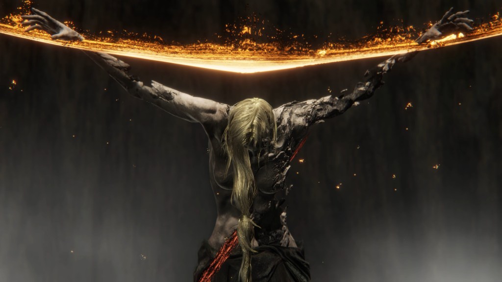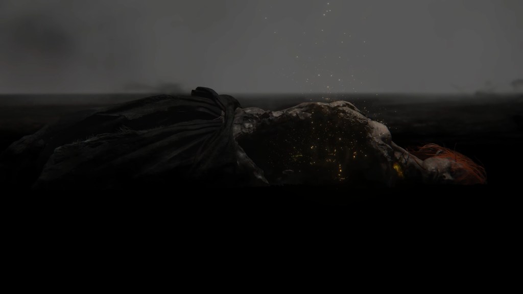 Marika’s answer came with Godwyn and the others’ deaths. Melina recounts the queen’s words at the Erdtree, calling Radagon a “dog” of the Golden Order before determining they break something — obviously, the Elden Ring she shattered. This was the madness wrought in the aftermath of Godwyn’s death. Once turned to introspection, Marika’s sadness and rage might be redirected, not at the conspirators, but at the agents behind them. It was the Fingers who kept selecting new candidates to replace her as god, dooming their family to a fate of competition for Order. It was that Greater Will who wouldn’t let her simply enjoy the kingdom she had built with her beloved children. It was this Elden Ring, with its fate of gold, that doomed her to the path of kinslaying, slowly eroding at her mind until she finally snapped. Since the queen faces interference from Radagon as well as the Two Fingers after the deed is done; there was no thought-out plan for escaping the aftermath. In her heart, she resolved to see it all destroyed — her empire, her reign, her very life.