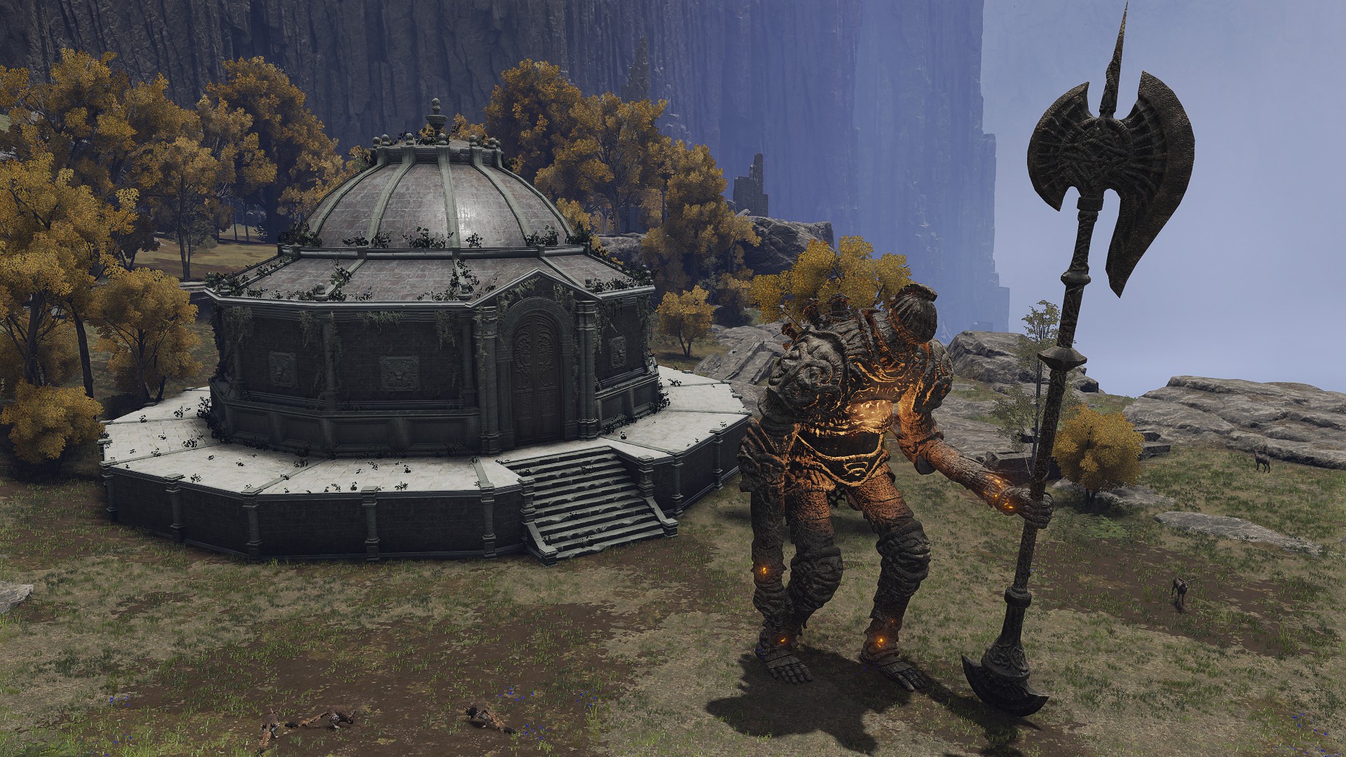 Altus Plateau, land of the Golden Tree’s base, is crowned with the royal capital of Lowdayl to the east and Gelmir Volcano to the west, and scars of the Shattering War remain apparent even now.