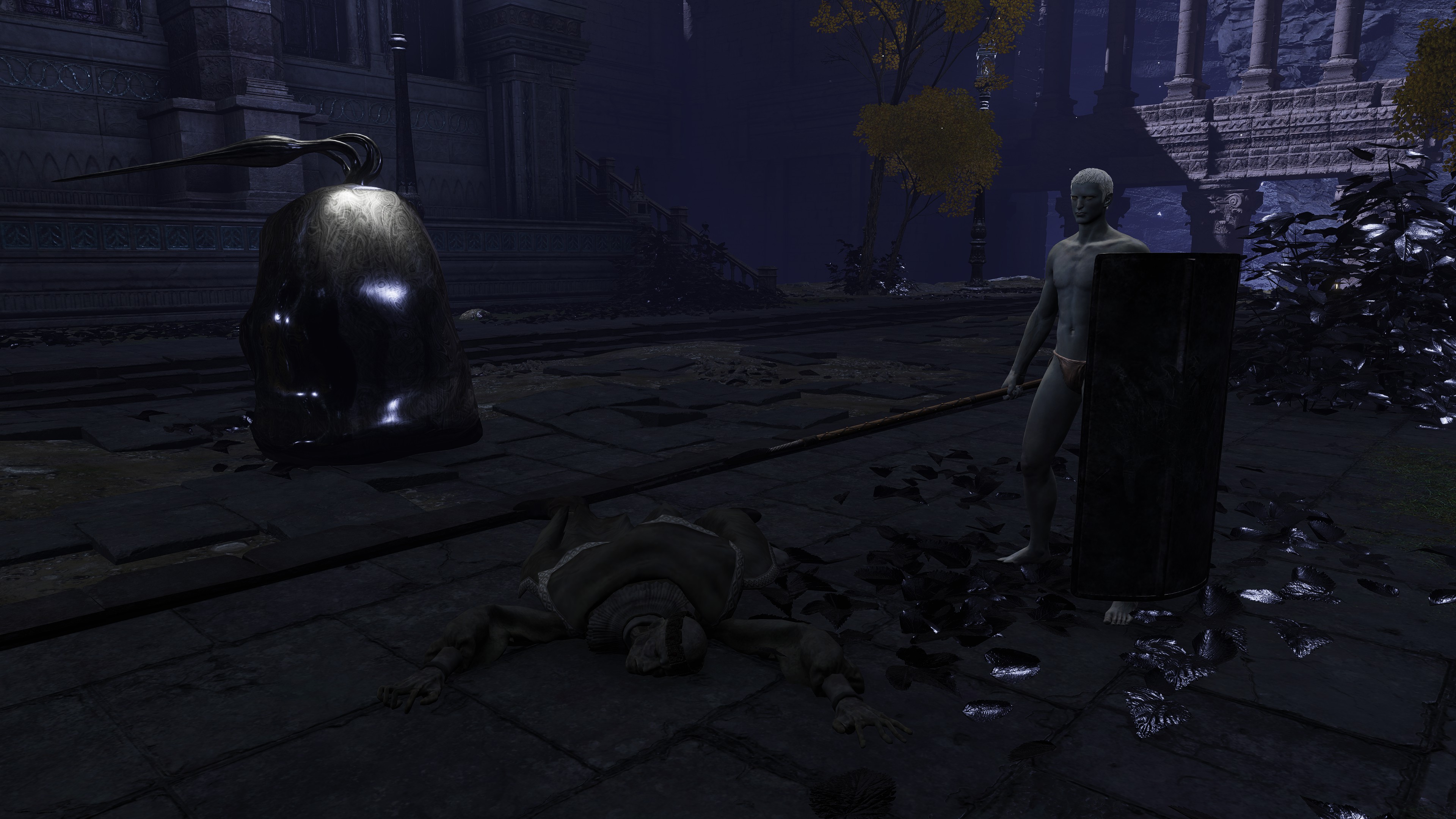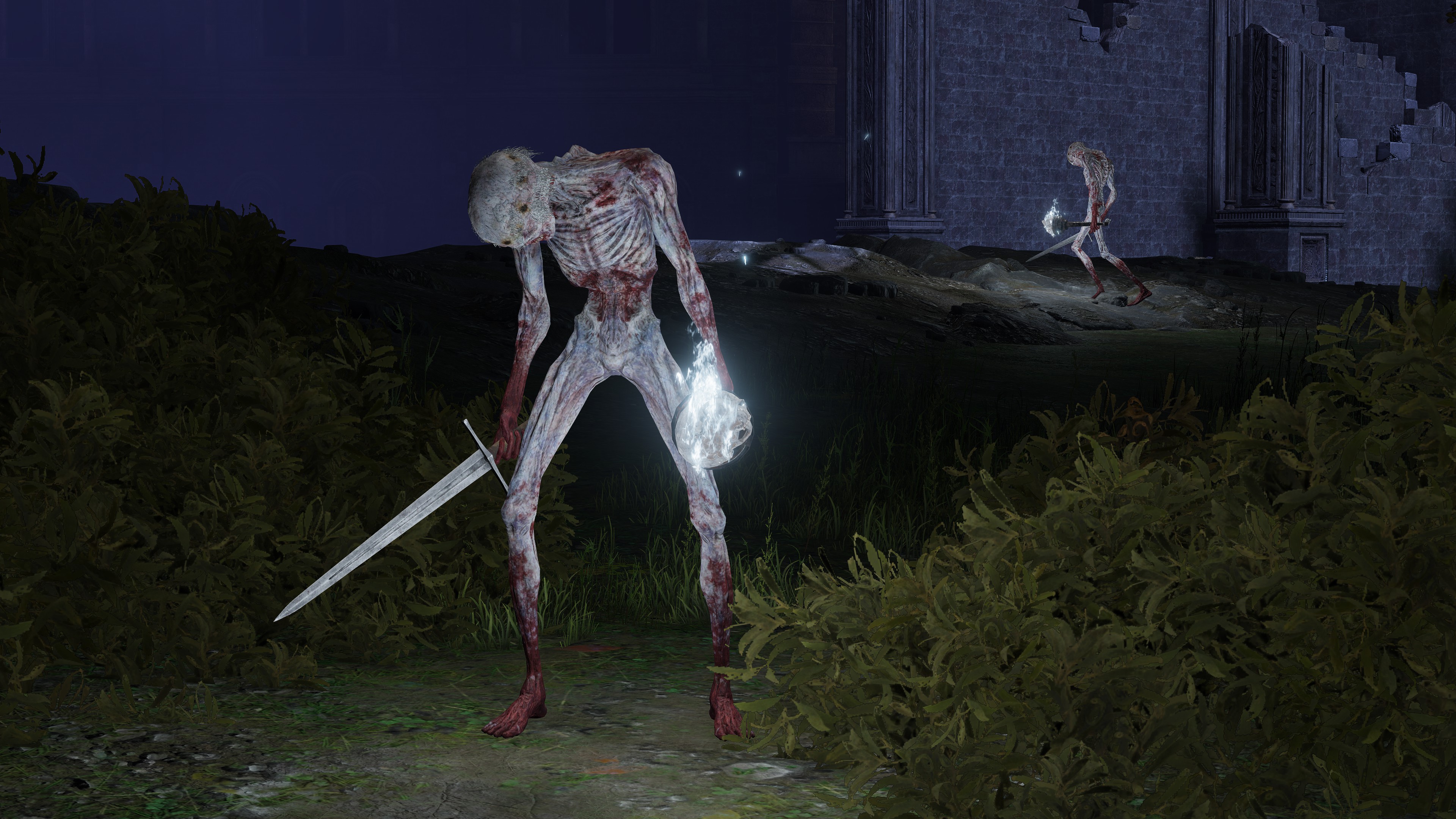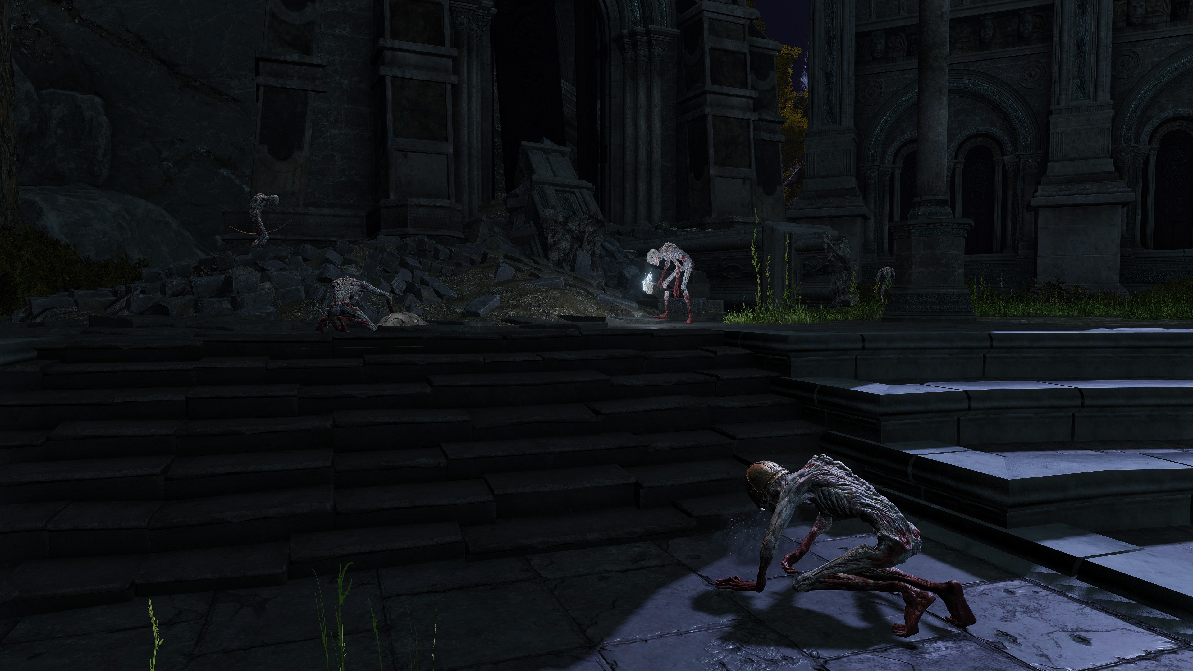 The soldier corps was last ordered to explore the Eternal Cities. Besides Nokron, where we can witness the Fallen Hawk soldiers in person, (the same for Noklateo in Elden Ring: Nightreign) they have also made their presence known in Nokstella. Just as the former has a corpse carrying the greatshield soldier ashes, the latter has their archer ashes. Both Nokron and Nokstella too have mimic tears take the form of the Fallen Hawks’ naked form and unique shields, implying personal experience — more so than with trolls, which get mimicked the once. There are also bizarre signs of destruction in the two cities. The destruction in Nokron already exists before the meteor falls on Mistwood, so we can exclude it as a cause. Visitors’ lanterns likewise lay around the rubble, leaving no doubt that outsiders swept through this destruction, which has even collapsed infrastructure connecting Night’s Sacred Ground to the rest of the capital. And there, searching the rubble, collecting dewkissed herba among other things, are the Fallen Hawks. The Nox have come into conflict with these underground explorers, suffering serious damage as a result.