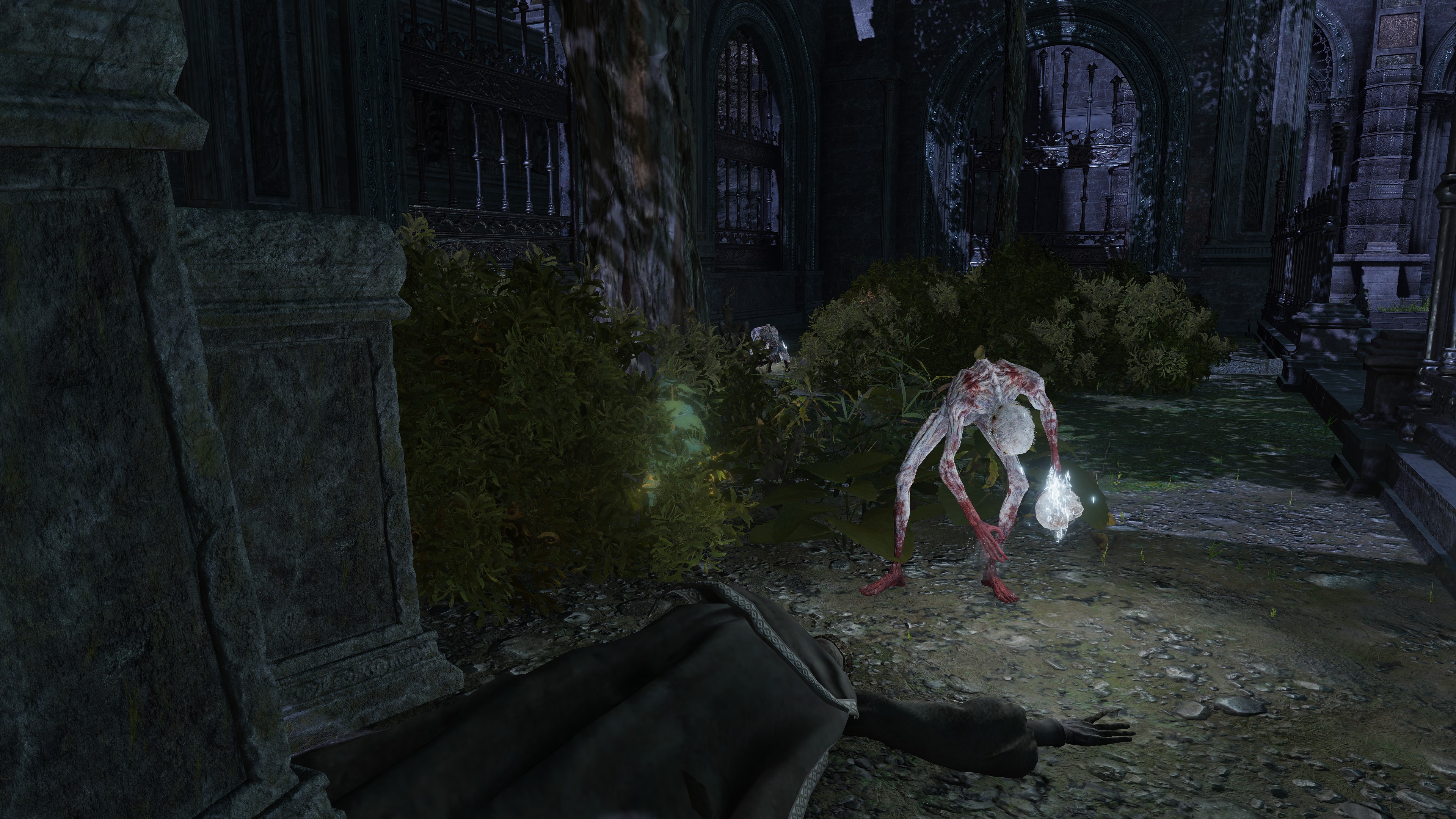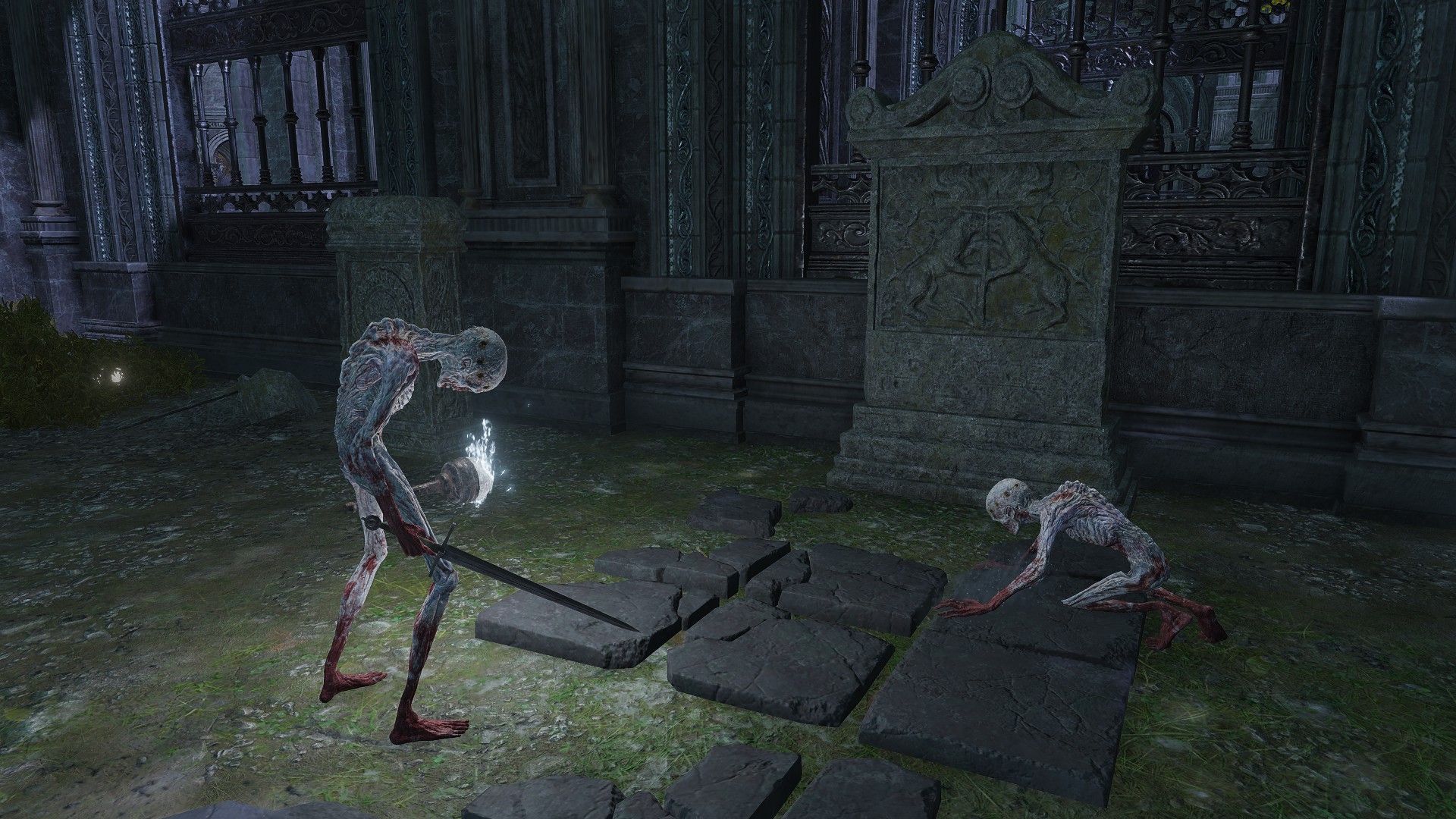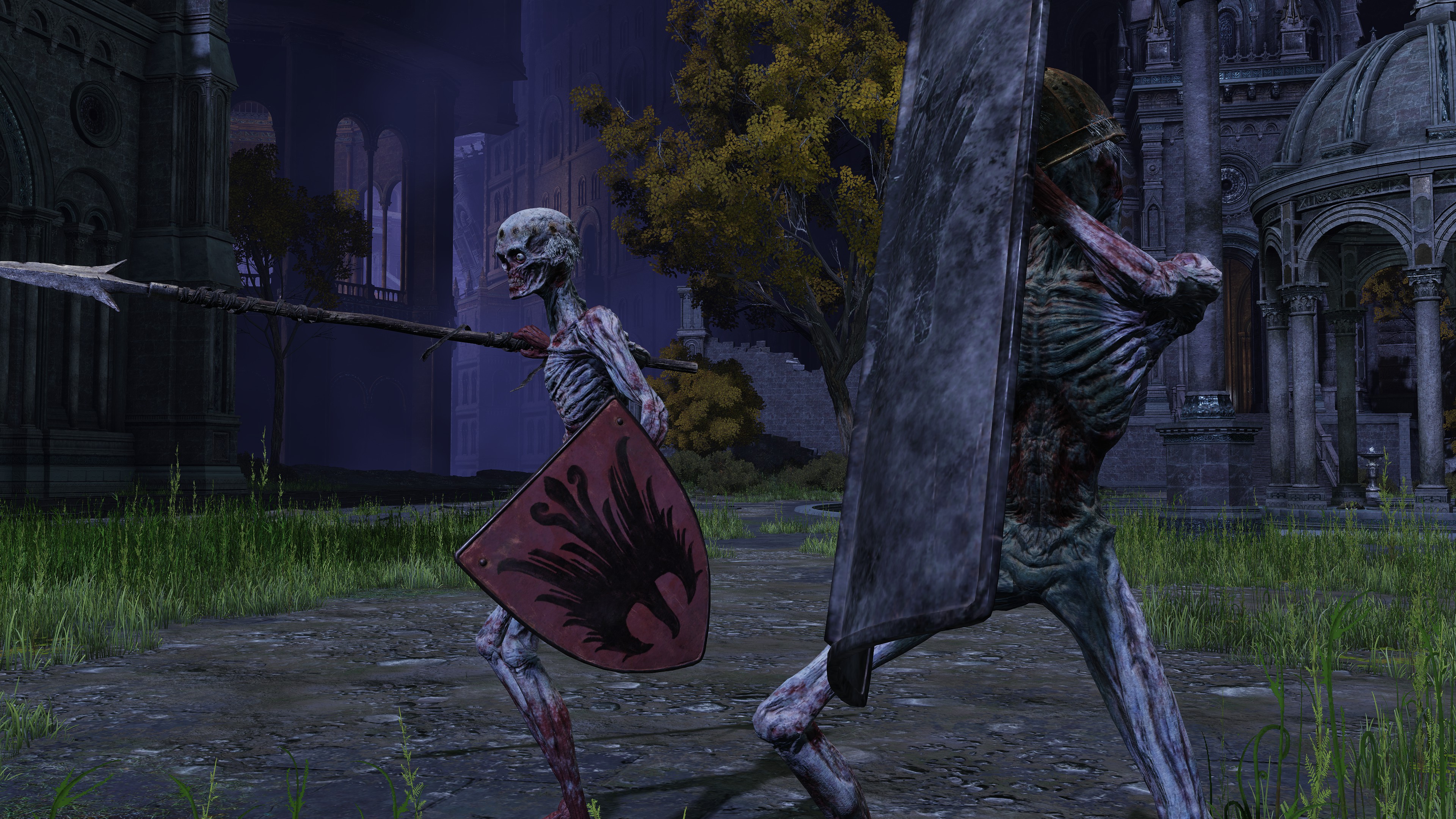 The soldier corps was last ordered to explore the Eternal Cities. Besides Nokron, where we can witness the Fallen Hawk soldiers in person, (the same for Noklateo in Elden Ring: Nightreign) they have also made their presence known in Nokstella. Just as the former has a corpse carrying the greatshield soldier ashes, the latter has their archer ashes. Both Nokron and Nokstella too have mimic tears take the form of the Fallen Hawks’ naked form and unique shields, implying personal experience — more so than with trolls, which get mimicked the once. There are also bizarre signs of destruction in the two cities. The destruction in Nokron already exists before the meteor falls on Mistwood, so we can exclude it as a cause. Visitors’ lanterns likewise lay around the rubble, leaving no doubt that outsiders swept through this destruction, which has even collapsed infrastructure connecting Night’s Sacred Ground to the rest of the capital. And there, searching the rubble, collecting dewkissed herba among other things, are the Fallen Hawks. The Nox have come into conflict with these underground explorers, suffering serious damage as a result.