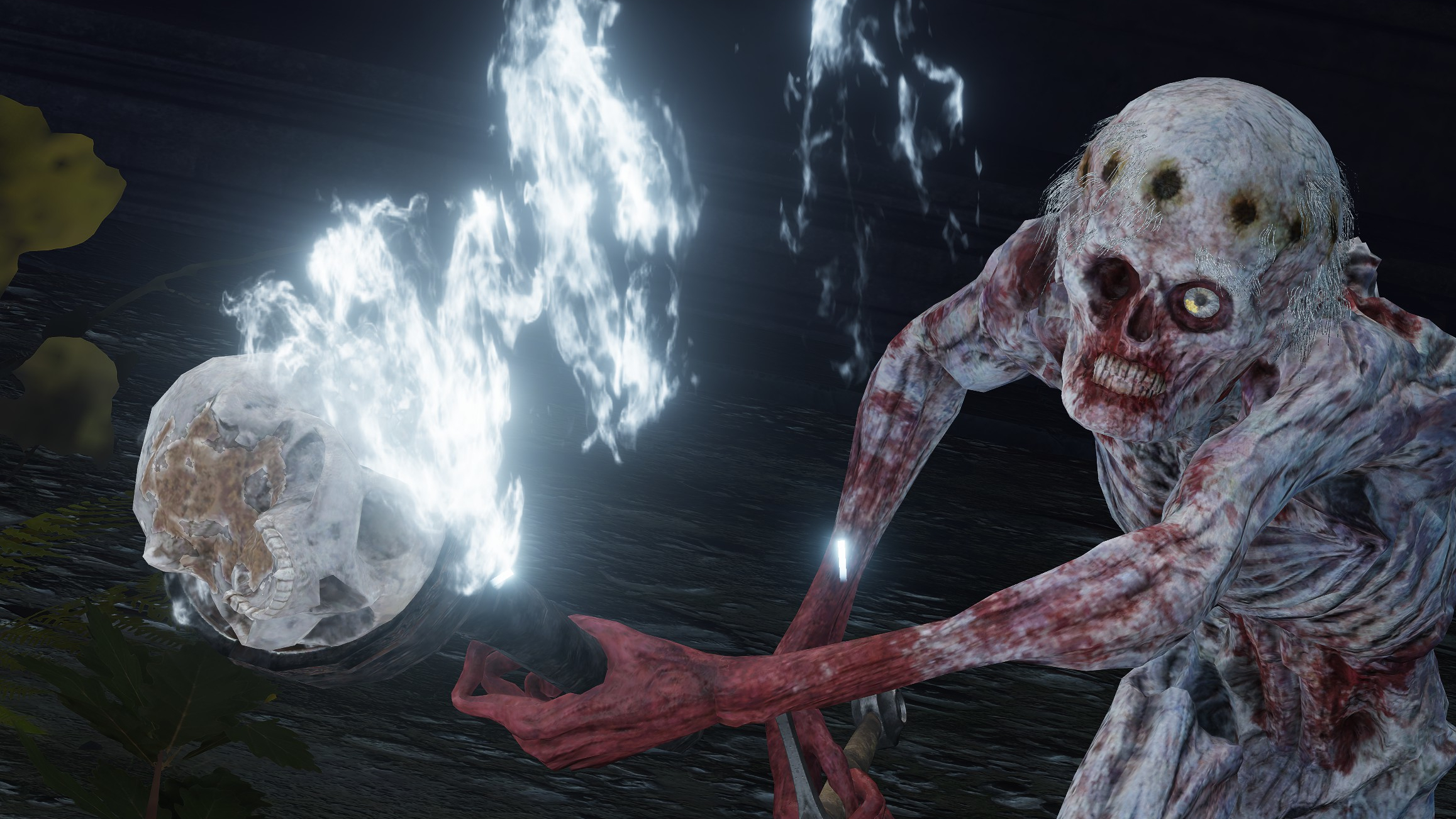 To the Fallen Hawks’ credit, they have persisted despite years of setbacks. The enemy model appears pale and zombified, with an eye missing from its bloody socket. Clearly, they have become Hollows, the curse of life the only thing keeping them going after suffering against the Nox for so long. Perhaps it is a lack of clarity that keeps them single-mindedly focused on their mission at this point, forgoing retreat. Indeed, the blood on their hands, feet, and even mouths tells of the grisly decisions the slaves have made to survive down there. After running out of not just food but even fuel for their metal torches, the cannibals took the bones leftover from their comrades for kindling. Now they have ghostflame for torchlight, not to mention throwing pots and arrows, so they can remain underground searching and fighting forever. Nokstella has wiped one party out, but Nokron is still dealing with theirs. (Noklateo has its number all beheaded as “slaves” to the wandering mausoleum army instead) Condemned to endless conflict for a broken Order, it is truly a miserable downfall for the hawk.