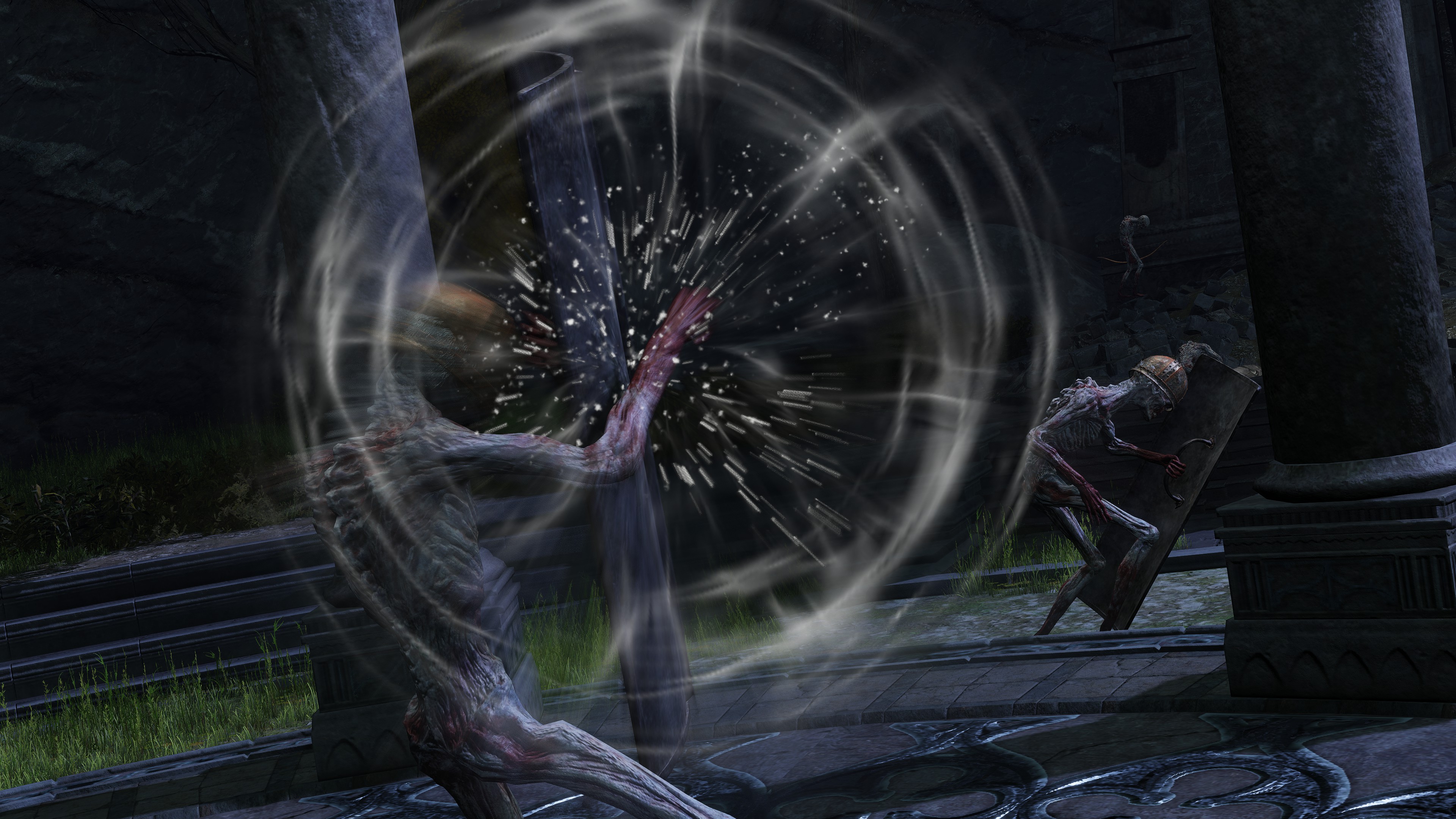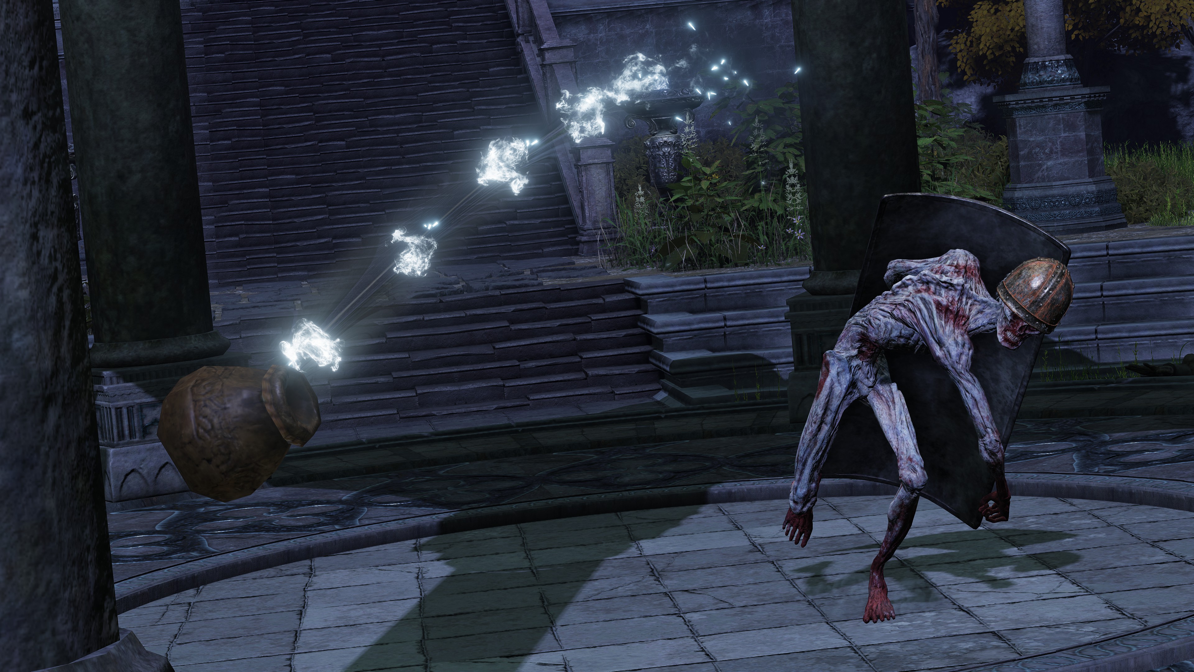 Compared to any other band of warriors, the Company of the Fallen Hawk stand out as peculiar. Dressed in not even the meagerest of protection, save maybe a helmet, you would hardly expect them to make for much of an army. True enough, descriptions of their ashes deem the naked soldiers as “immature” with how they wildly goad enemies with their war cries or shield bashes and attack with reckless abandon. Still, they make full use of group tactics, the spirits in those ashes coordinating with each other to set up a wall of greatshields or unleash a barrage of arrows. They no doubt have some training as a professional army, even if afforded barely the metal to slice and guard with. And yet, this military unit is comprised of slaves, no different from misbegotten. Training and arming bondsmen has its risks, though these soldiers look to have been conditioned like gladiators — the uniform gashes on their head suggesting torture with a head crusher or similar device. That might explain why they look to receive the bare minimum, but it doesn’t clarify why they haunt the underground of all places.
