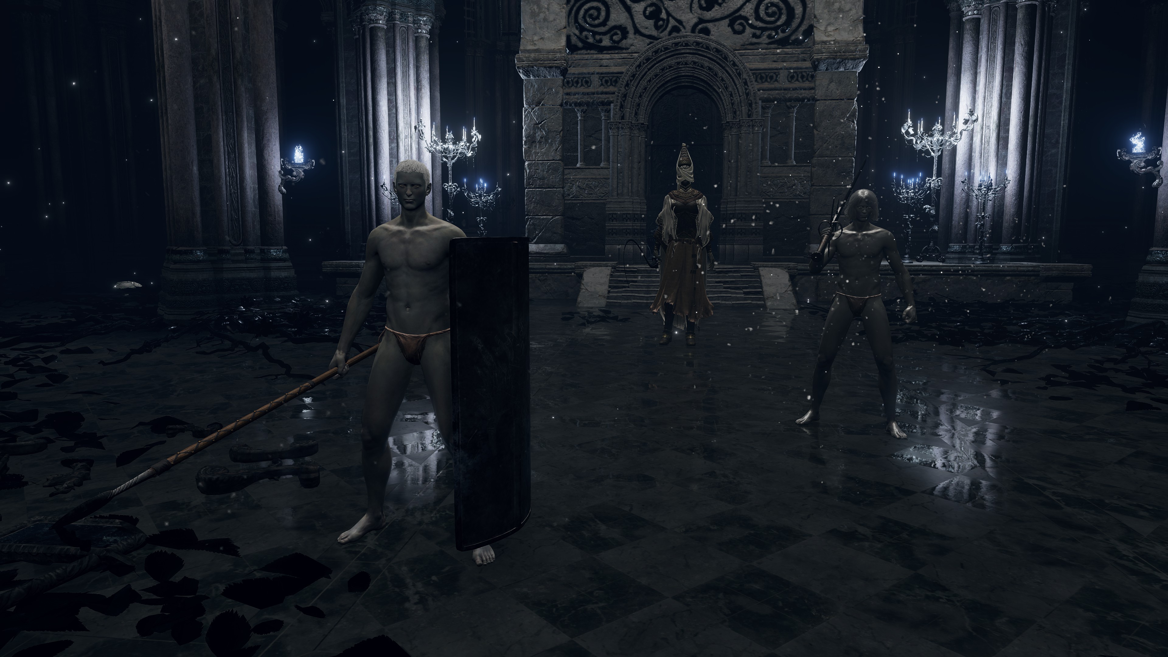 The reason for Morgott to support their search effort is obvious. Leyndell is the heart of Golden Order Fundamentalism, and core to it lies the Erdtree priesthood. No matter his obsession with defending the royal capital, the Omen needs to maintain his base of support among the priests, especially when having them serve in the ongoing cold war as his commanders. The issues of Godwyn and the spawn of his Deathroot are a major concern for the most zealous faction of that base, so the king can’t ignore them when direct access to the Eternal City is cut off. But who to send as the fundamentalists’ protection while they search for a path? By this point, Morgott already committed his trusty Stormveil forces to the assault on Volcano Manor, and he couldn’t have the Leyndell army leave their posts. That left the slave corps, his most disposable troops. They were assuredly still in Leyndell at the time, given how Patches managed to pick up their greatshield. Worst case scenario, they die failing orders, no major loss to his war effort. The priesthood can’t say that he didn’t try, and Morgott can focus on his chief concerns.